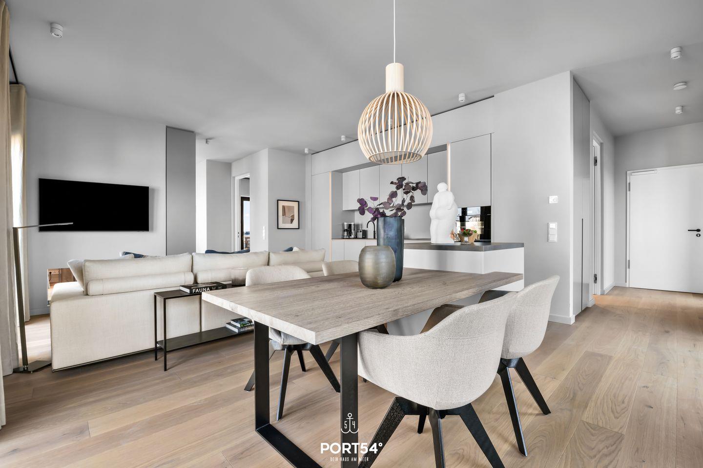 Viele Möbel der hochwertigen Einrichtung stammen aus dem Hause der Bornhold Manufaktur in Hamburg und wurden nach Maß angefertigt. Marken wie Schramm, ASCO, Jacaranda, Christine Knöcke und VIPP stehen für den Anspruch und die Qualität in dieser Ferienwohnung.