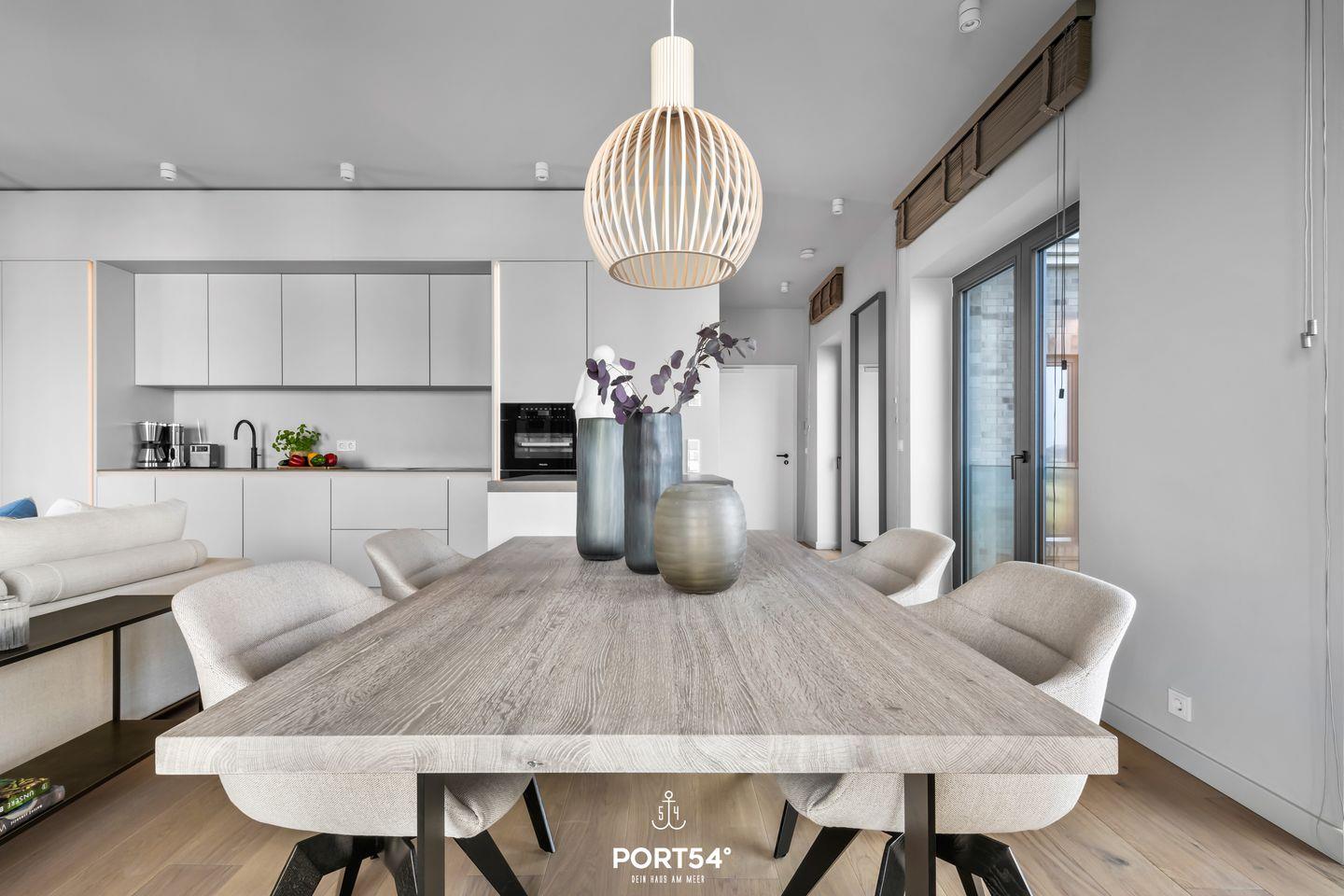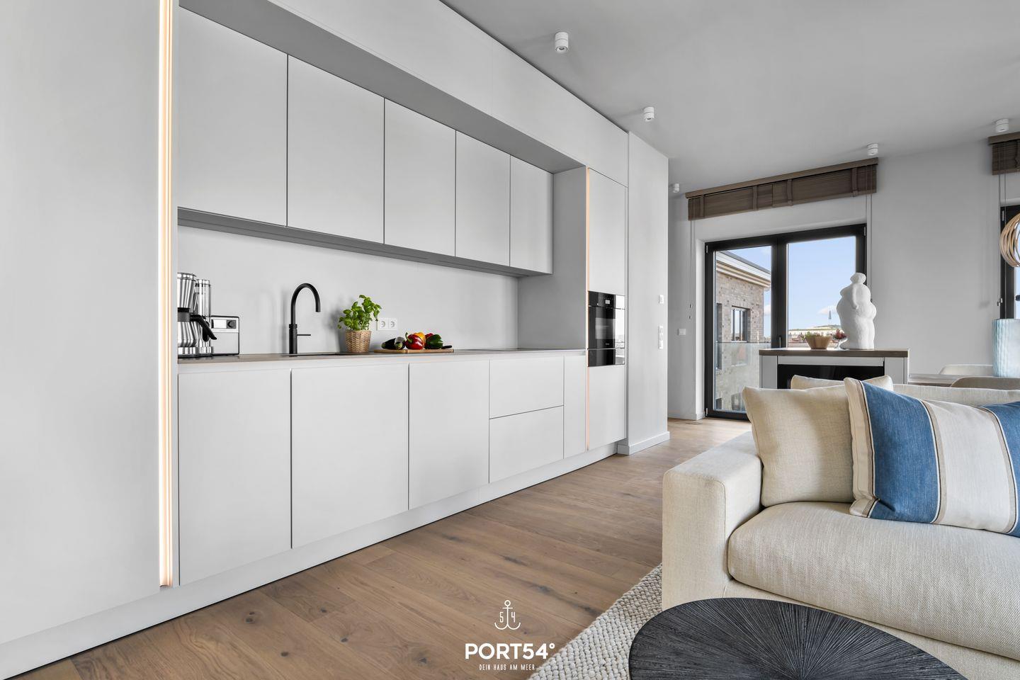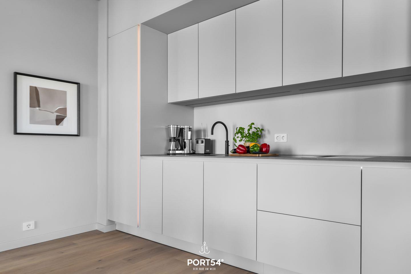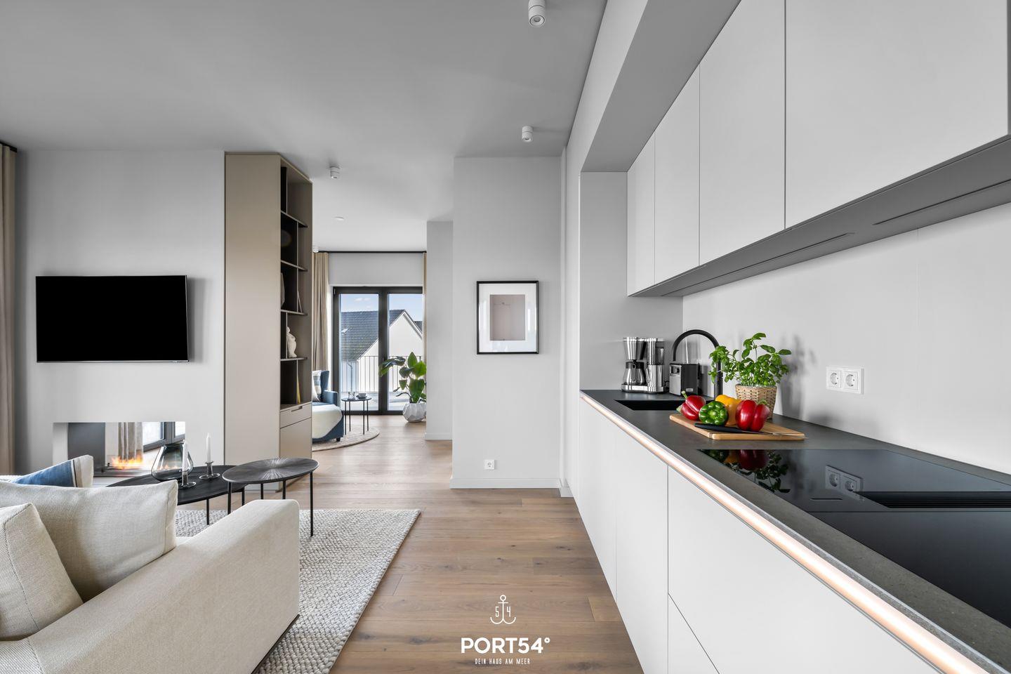 Die elegante Ferienwohnung verfügt über ein stilvolles Schlafzimmer mit einem 180x200 cm großen Doppelbett sowie ein luxuriöses Badezimmer mit bodengleicher Dusche, die für unbeschwerte Wohlfühlmomente sorgt. Die Dusche ist mit einer Infrarotsauna ausgestattet – perfekt, um nach einem ausgiebigen Spaziergang zu entspannen. Der offene Wohnbereich, der Küche und Wohnzimmer harmonisch vereint, lädt dich zu entspannten Kochabenden ein. Die moderne Küche von SieMatic ist mit einem Induktionsherd, Backofen, Wärmeschublade und einem Geschirrspüler voll ausgestattet. Außerdem findest du in der Küche einen Quooker – damit lässt sich problemlos heißes Wasser sowie Sprudelwasser erzeugen. Das Wohnzimmer ist der perfekte Ort zur Entspannung – hier kannst du die Wohnlichkeit des Ethanol-Kamins und den Komfort des Sofas erleben.
