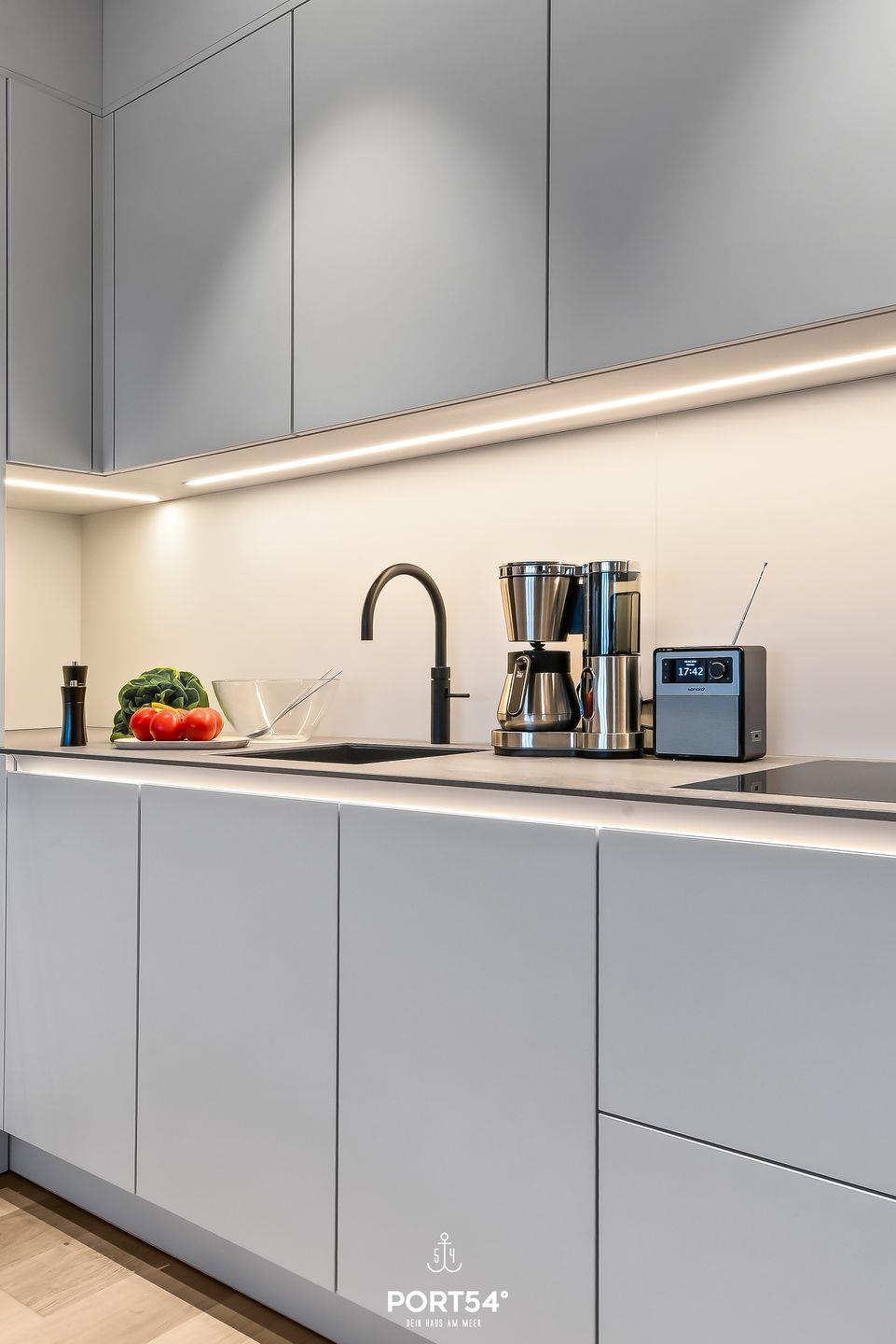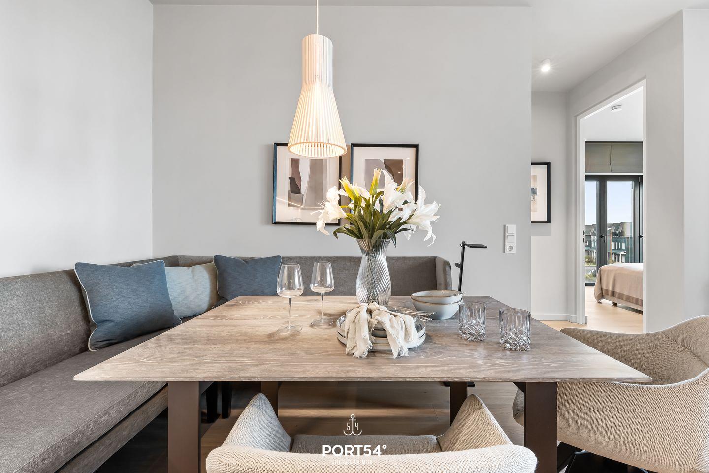 Viele Möbel der hochwertigen Einrichtung stammen aus dem Hause der Bornhold Manufaktur und Hamburg und wurden nach Maß angefertigt. Marken wie Schramm, ASCO, Jacaranda, Christine Knöcke und VIPP stehen für den Anspruch und die Qualität in dieser Ferienwohnung.