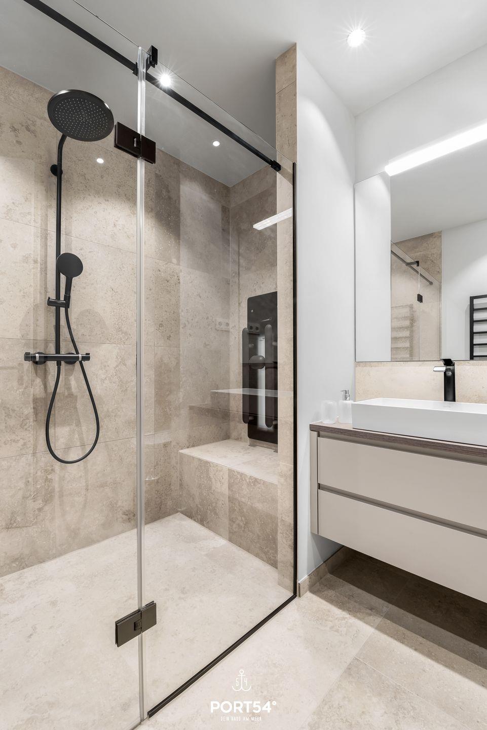 Die Unterkunft verfügt über zwei hell und freundlich gestaltete Schlafzimmer mit je einem Doppelboxspringbett der Marke Schramm (180x200cm), die zum Entspannen und Wohlfühlen einladen. Jedes Zimmer ist liebevoll eingerichtet und bietet den nötigen Komfort für erholsame Nächte. Die großen Fenster erlauben dir einen wunderbaren Blick auf die Umgebung, während gleichzeitig ausreichend Tageslicht in die Räume strömt. Zudem stehen dir zwei moderne Badezimmer zur Verfügung, die mit bodengleichen Duschen ausgestattet sind und höchsten Ansprüchen genügen. Eine Dusche verfügt über eine Infrarotdusche.