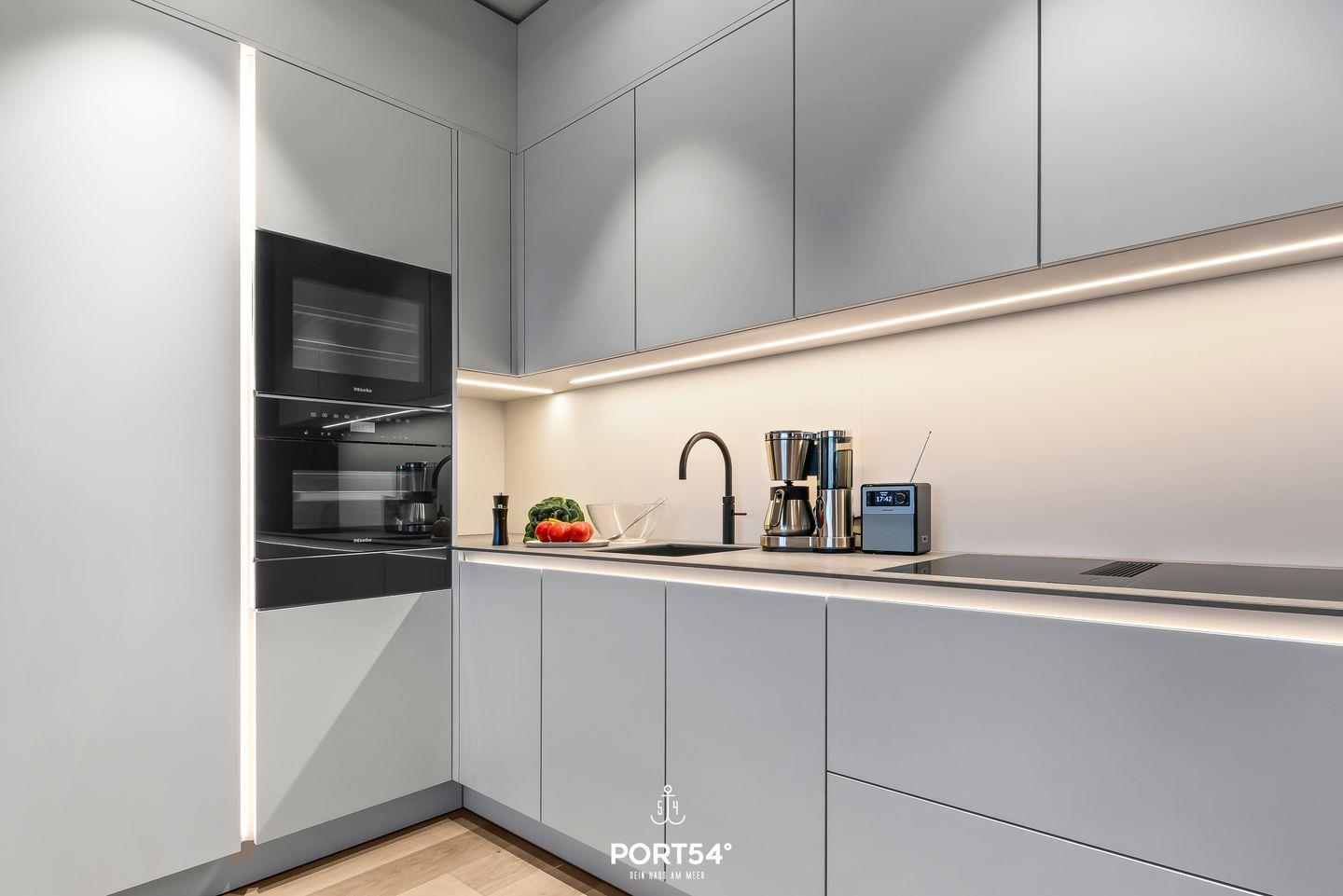 Das Herzstück der Wohnung ist der offene Wohnbereich, der mit einer hochwertigen SieMatic Küche und einem stilvollen Essbereich ausgestattet ist. Hier kannst du kulinarische Köstlichkeiten zubereiten und gemeinsam am Esstisch genießen. Der gemütliche Wohnbereich mit Sofa und Smart TV lädt dazu ein, entspannte Abende zu verbringen.