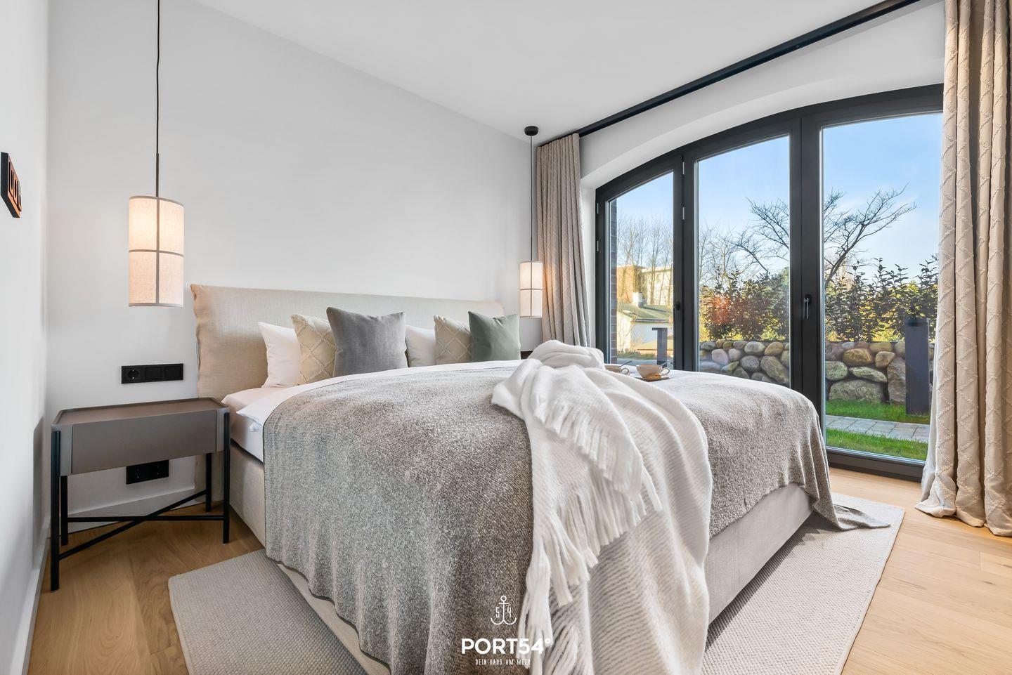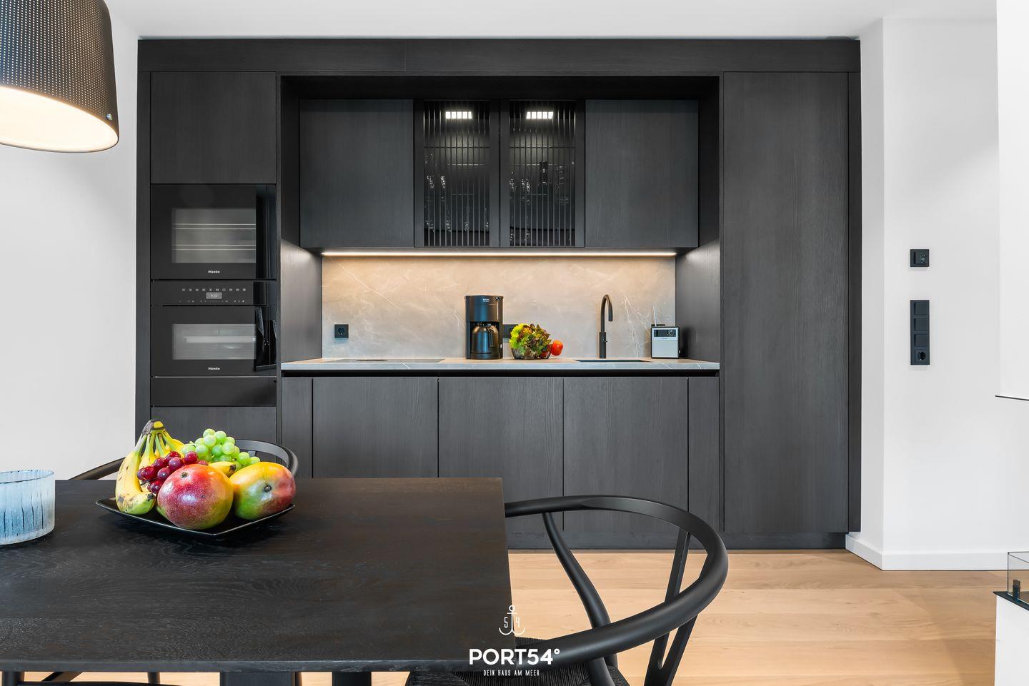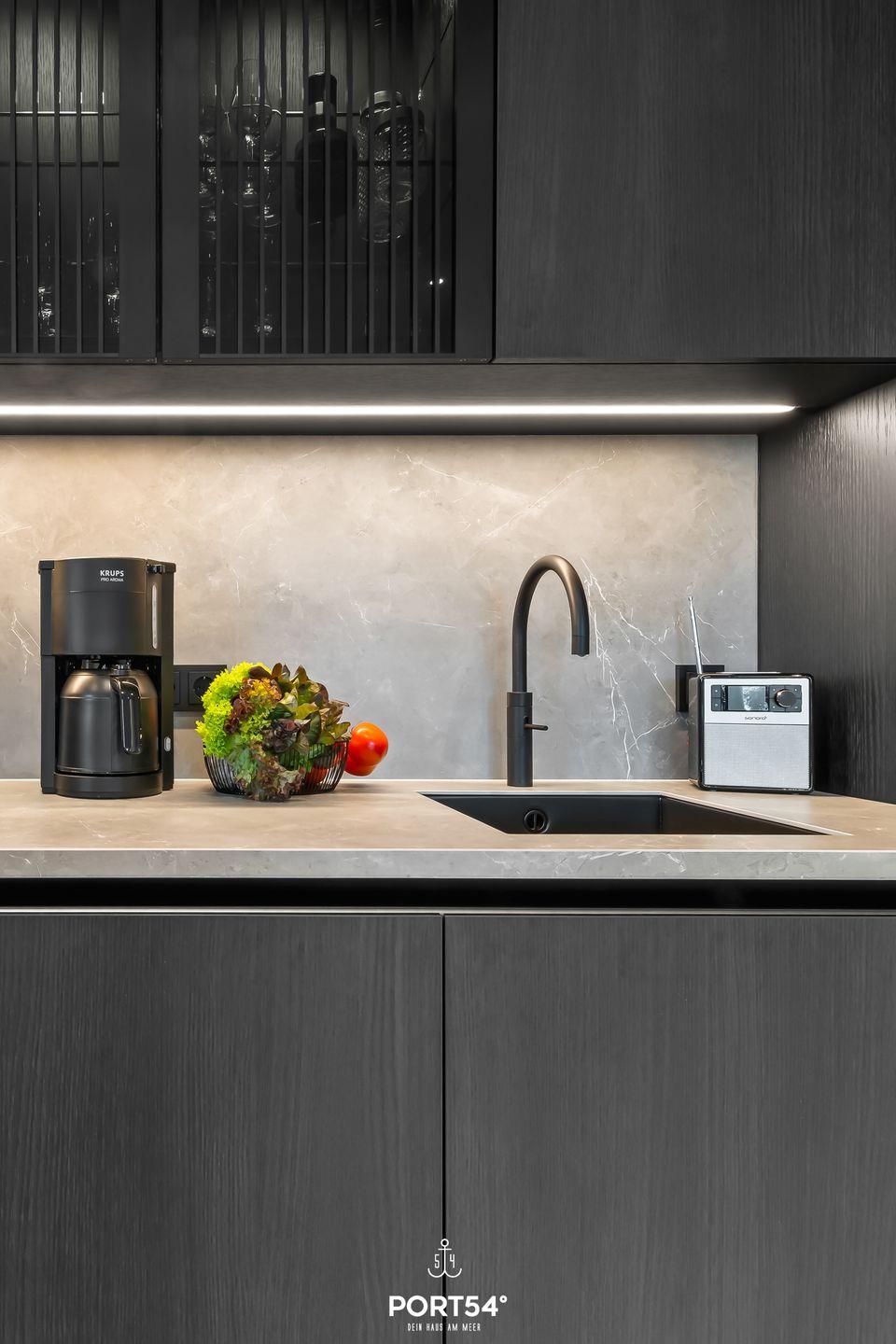Die modern gestaltete Wohnung verfügt über ein geräumiges Schlafzimmer mit einem 180x200 cm großen Doppelbett sowie ein stilvolles Badezimmer mit bodengleicher Dusche, damit du nach einem erlebnisreichen Tag an der Küste entspannen kannst. Der offene Wohnbereich mit einer voll ausgestatteten Küche lässt keine Wünsche offen: Induktionsherd, Backofen, Spülmaschine und zahlreiche Küchenutensilien sind vorhanden, sodass du deinen kulinarischen Ideen freien Lauf lassen kannst. Genieße deine Mahlzeiten am Esstisch oder auf dem gemütlichen Sofa. Die Küche von SieMatic ist außerdem mit einem Quooker ausgestattet, damit lässt sich problemlos heißes Wasser sowie Sprudelwasser erzeugen.
