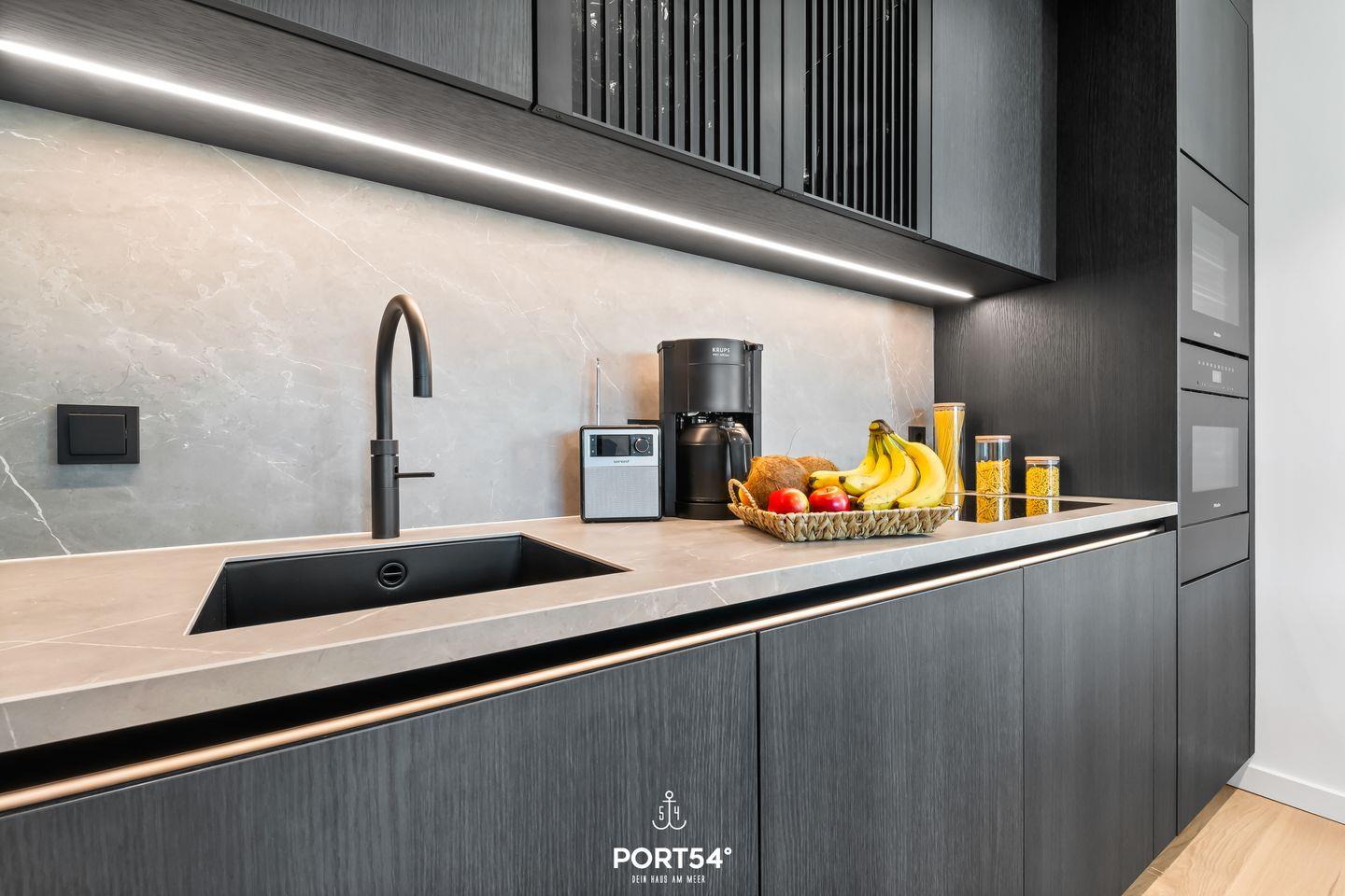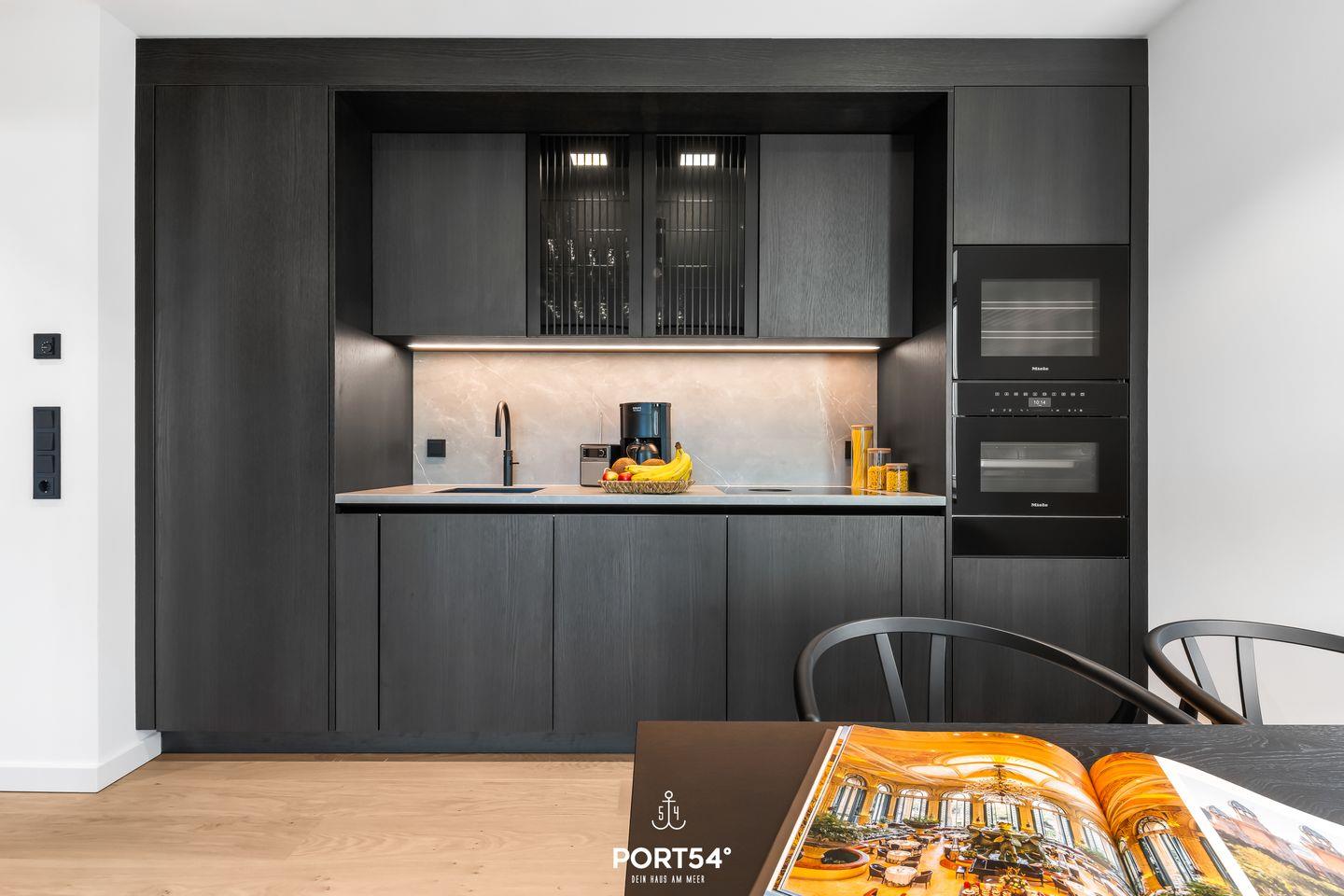 Die modern gestaltete Wohnung verfügt über ein geräumiges Schlafzimmer, das 180x200 cm große Bett sorgt für optimalen Schlafkomfort. Ein stilvolles Badezimmer mit bodengleicher Dusche lädt dazu ein, nach einem erlebnisreichen Tag an der Küste zu entspannen. Der offene Wohnbereich mit einer voll ausgestatteten Küche lässt keine Wünsche offen: Induktionsherd, Backofen, Spülmaschine und zahlreiche Küchenutensilien sind vorhanden, sodass du deinen kulinarischen Ideen freien Lauf lassen kannst. Genieße deine Mahlzeiten am Esstisch oder auf dem gemütlichen Sofa. Die SieMatic-Küche ist außerdem mit einem Quooker ausgestattet, sodass du problemlos heißes Wasser und Sprudelwasser erzeugen kannst.