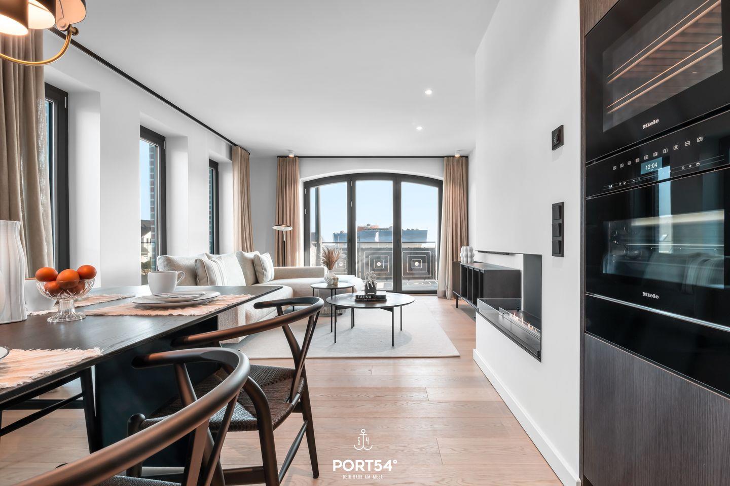 Die Wohnung ist außerdem luxuriös und modern gestaltet, mit einem offenen Wohnbereich, der durch einen Ethanol-Kamin für Gemütlichkeit sorgt. Die Fußbodenheizung und zentrale Heizungsanlage garantieren, dass es dir auch an kühleren Tagen richtig warm und behaglich bleibt. Für die Unterhaltung sorgt ein Smart TV, und das kostenlose WLAN ermöglicht es dir, auch während deines Urlaubs mit Freunden in Kontakt zu bleiben oder deine Erlebnisse in den sozialen Medien zu teilen.