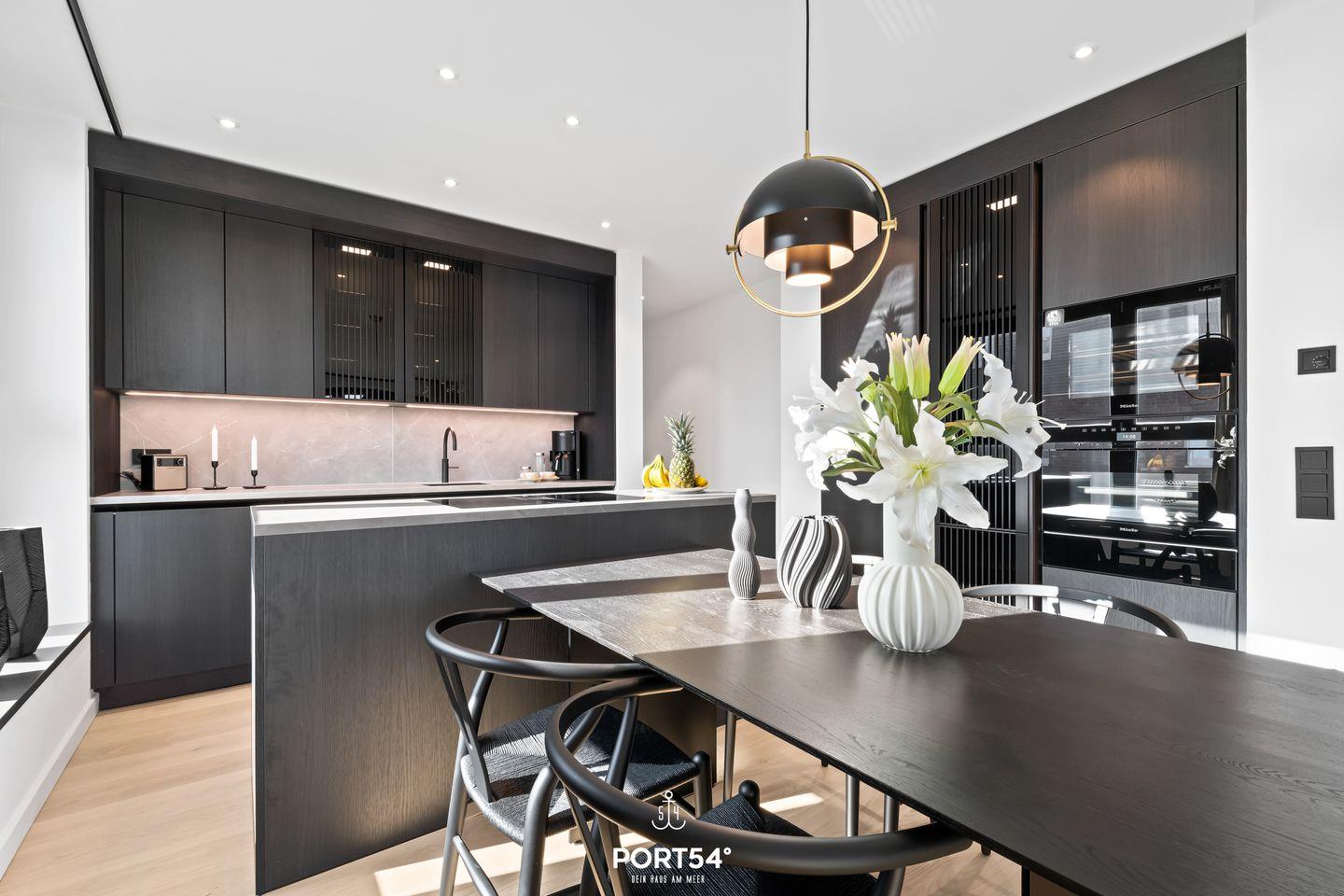 Viele Möbel der hochwertigen Einrichtung stammen aus dem Hause der Bornhold Manufaktur in Hamburg und wurden nach Maß angefertigt. Marken wie Schramm, ASCO, Jacaranda, Christine Knöcke und VIPP stehen für den Anspruch und die Qualität in dieser Ferienwohnung.