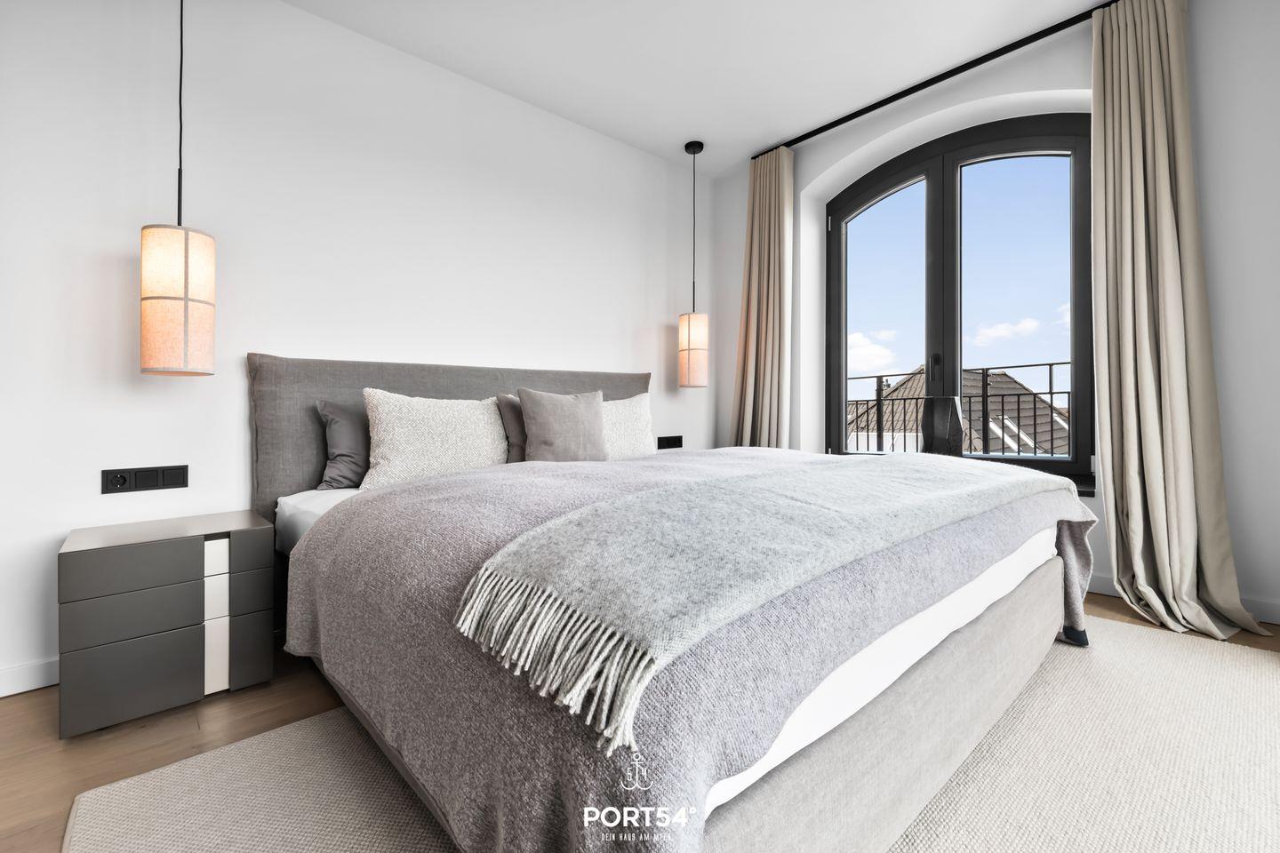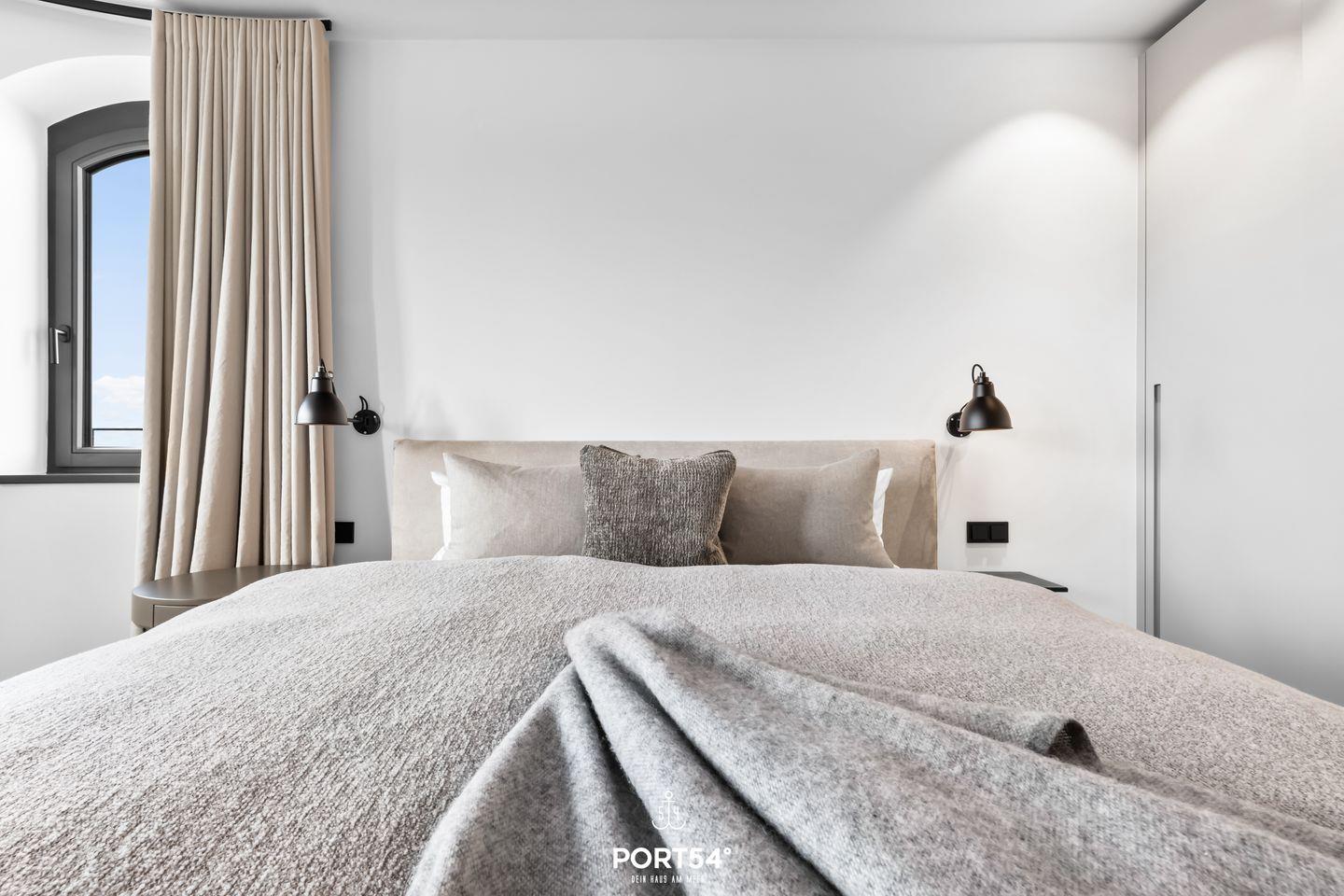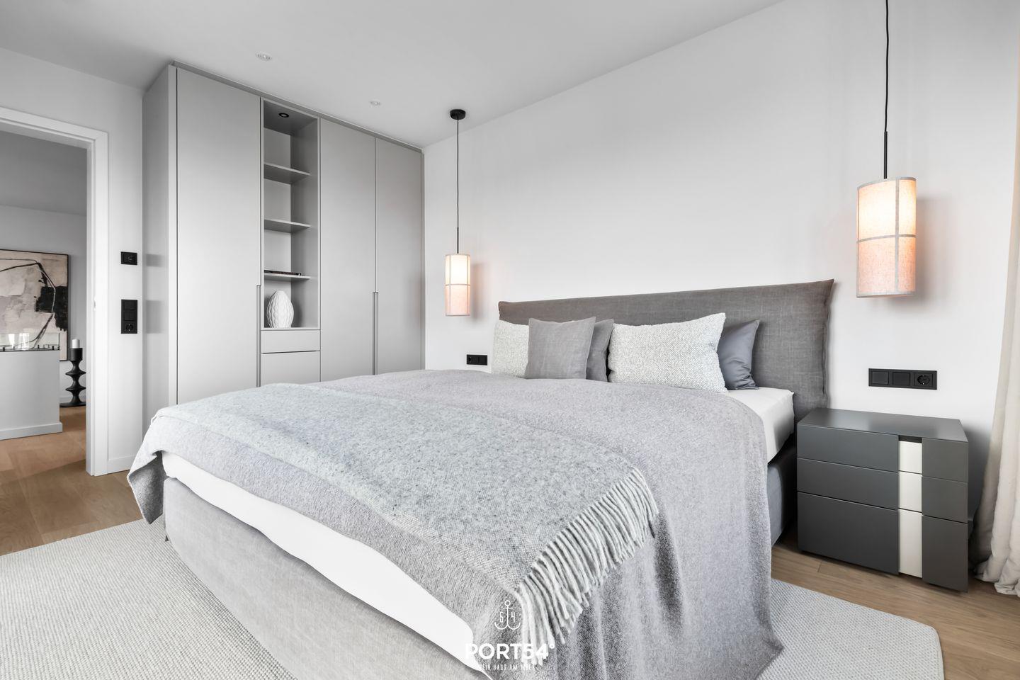 Das Penthouse im zweiten und dritten Stock verfügt über zwei gemütliche Schlafzimmer, die mit hohen Decken und modernen Möbeln ausgestattet sind. Hier findest du den perfekten Ort für erholsamen Schlaf. Neben einem geschmackvoll eingerichteten Wohnzimmer, das zum Verweilen einlädt, erwartet dich auch ein offener Essbereich, der sich ideal für gemeinsame Mahlzeiten eignet. Die große, mit Fußbodenheizung ausgestattete Fläche sorgt für ein angenehmes Raumklima, während der offene Ethanol Kamin nicht nur Wärme spendet, sondern auch eine behagliche Atmosphäre schafft. Von einem Schlafzimmer aus gelangst du über eine Treppe ins zweite OG, dort steht ein Schreibtisch für dich, perfekt für diejenigen, die remote unterwegs sind.
