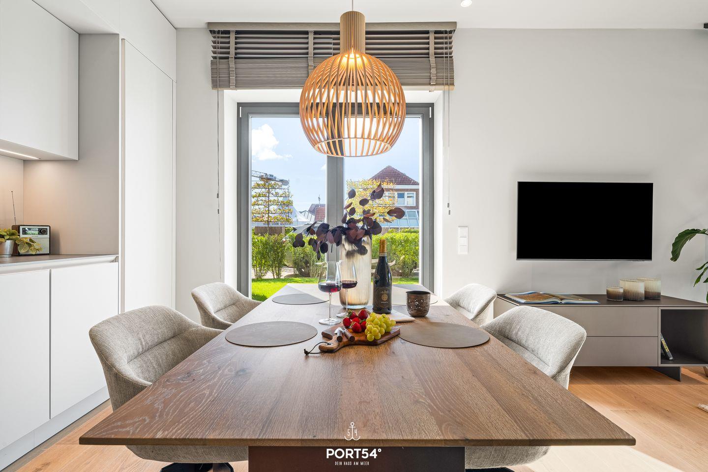 Viele Möbel der hochwertigen Einrichtung stammen aus dem Hause der Bornhold Manufaktur und Hamburg und wurden nach Maß angefertigt. Marken wie Schramm, ASCO, Jacaranda, Christine Knöcke und VIPP stehen für den Anspruch und die Qualität in dieser Ferienwohnung.