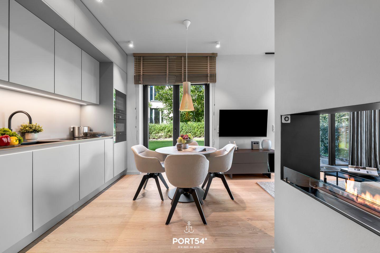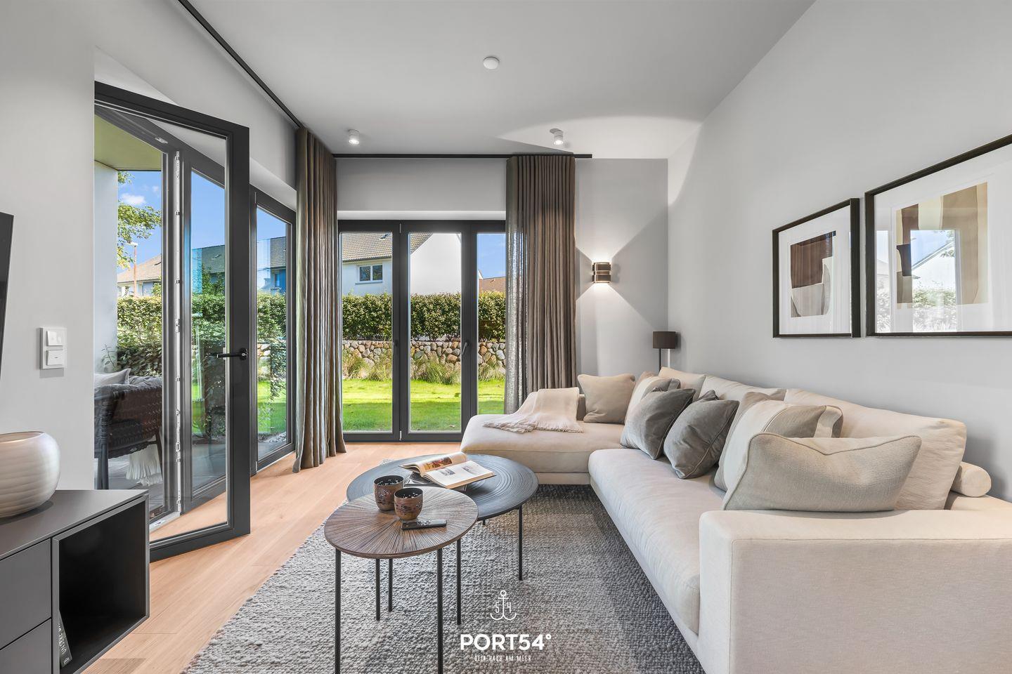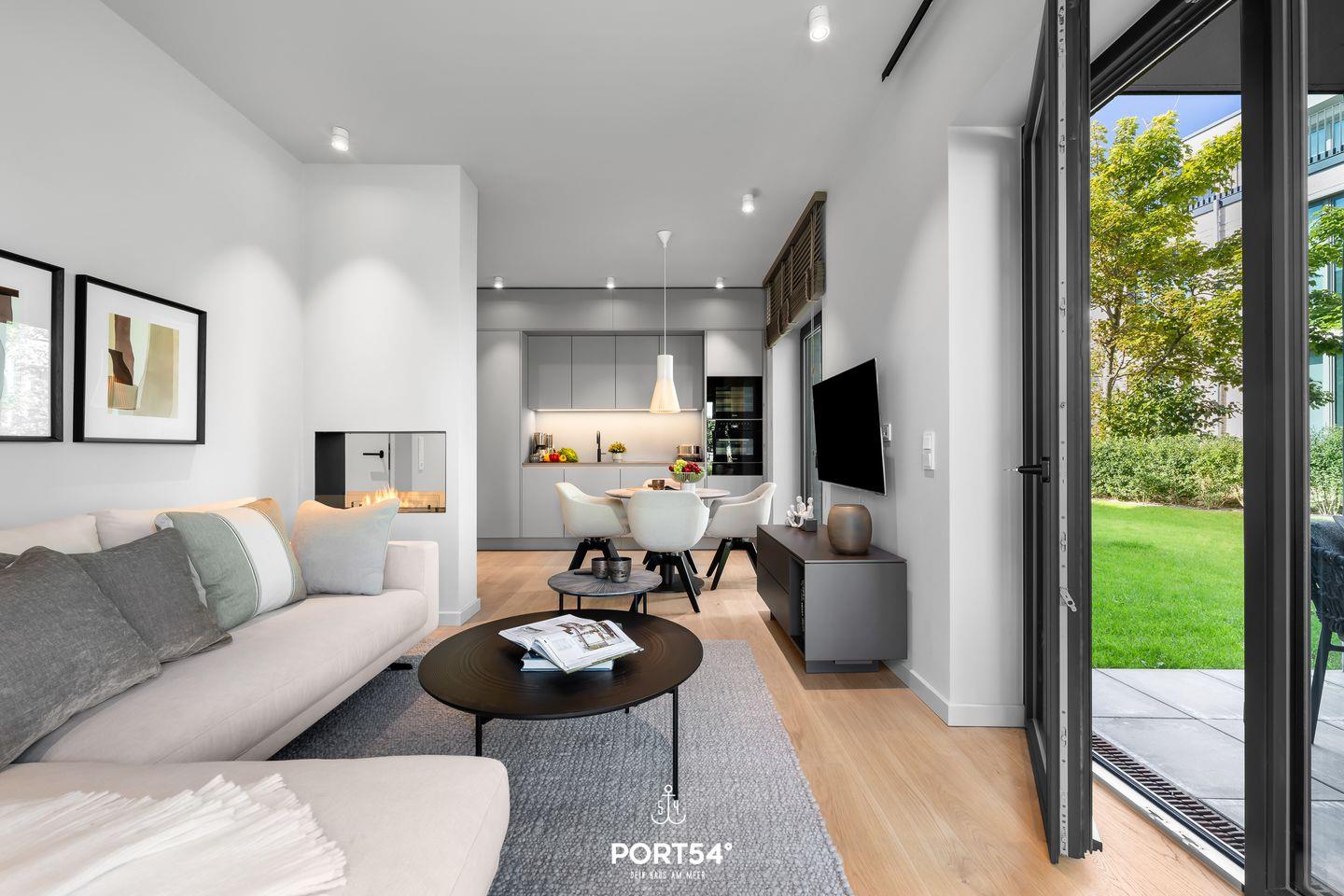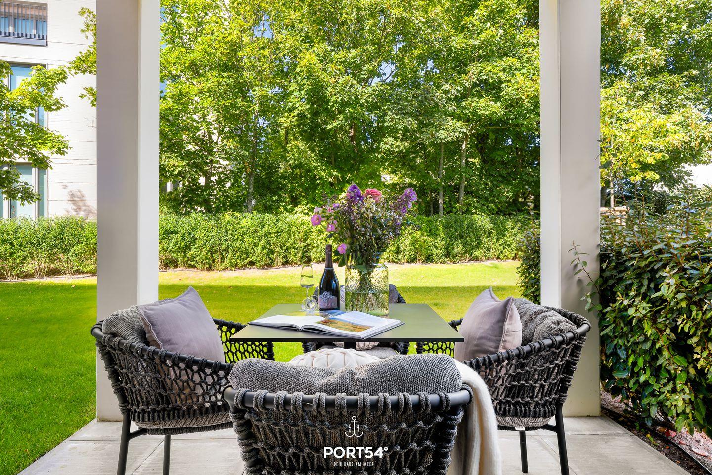 Weitere Highlights der Coastal Suite sind die Fußbodenheizung für wohlige Wärme und der offene Ethanol-Kamin, der an kühleren Abenden für eine behagliche Stimmung sorgt. Die ganze Wohnung verfügt über Sichtschutz an den Fenstern. Ein Aufzug sorgt zudem für bequemen Zugang zur Ferienwohnung, und im Außenbereich erwarten dich Gartenmöbel für entspannende Stunden auf der Terrasse.