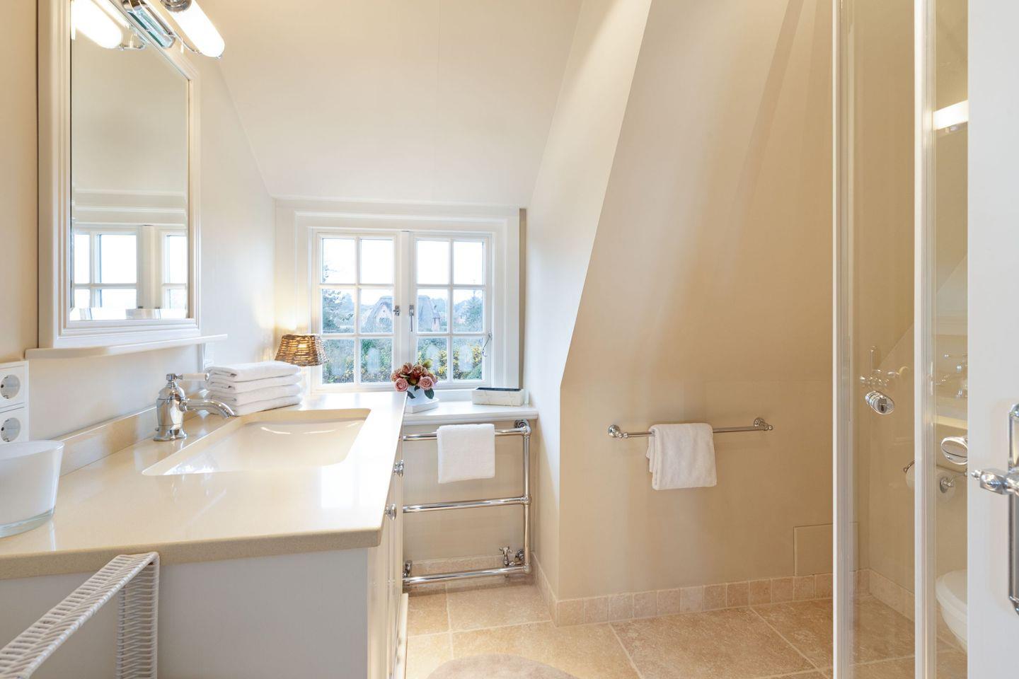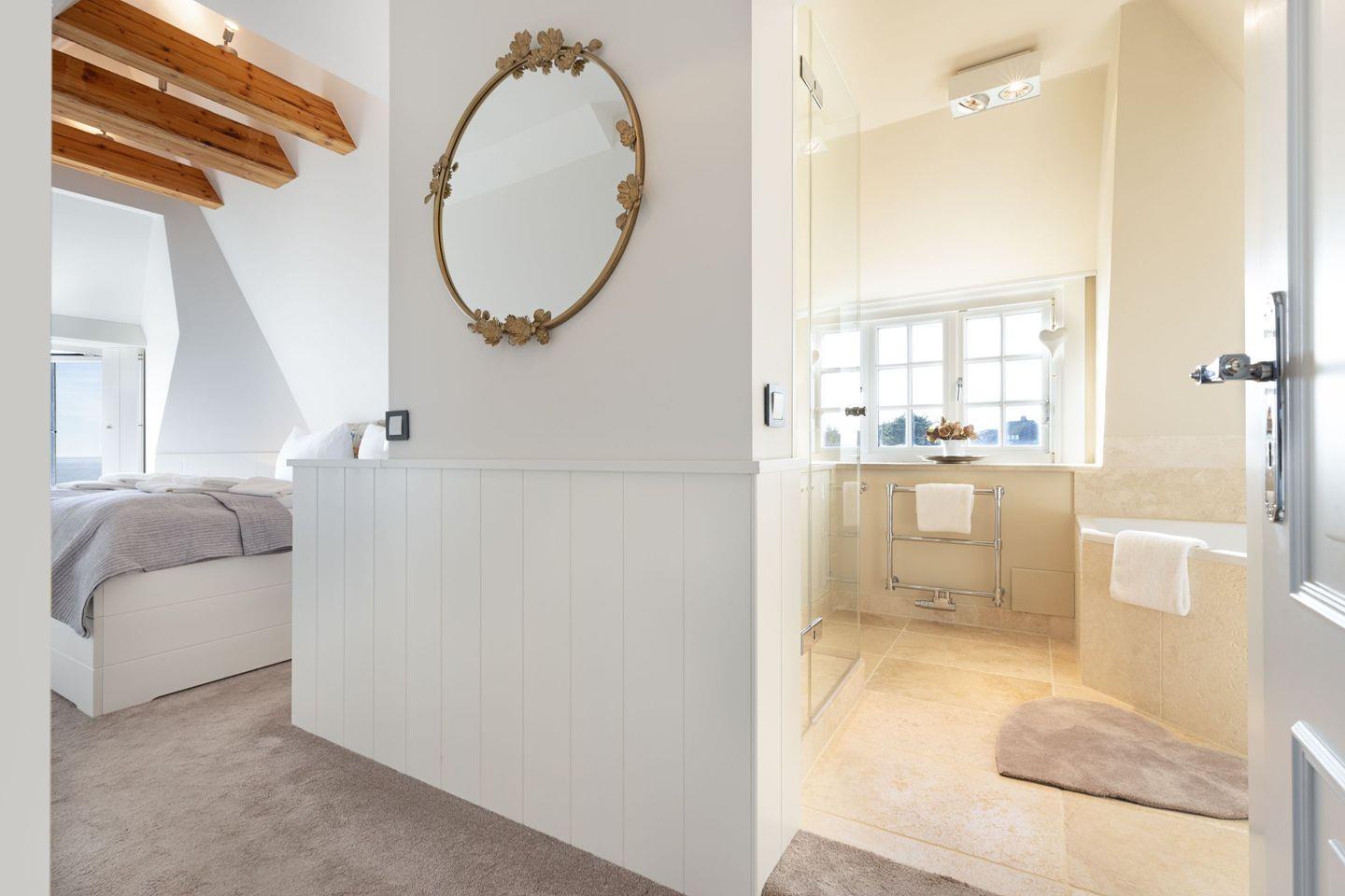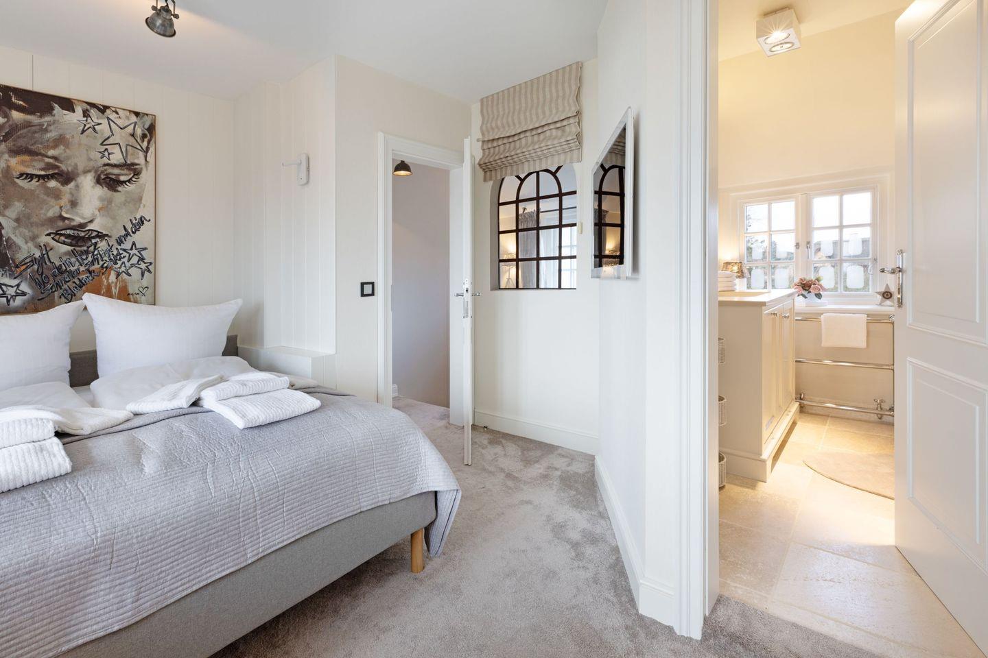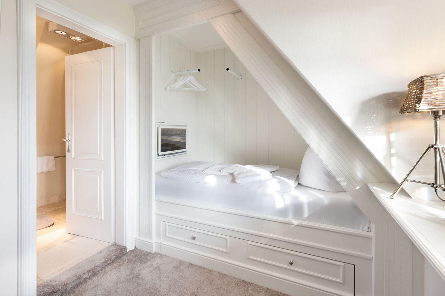 Ihnen stehen drei Schlafzimmer zur Verfügung. Zwei davon befinden sich im 1.OG, mit je einem Doppelbett. Im Master Bedroom findet sich zudem zusätzlich eine Schlafalkove. Bei dem dritten Schlafzimmer handelt es sich um ein Einzelzimmer im Souterrain des Hauses.