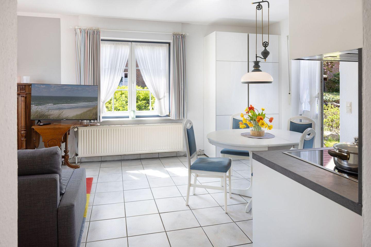 Das 50?m² große Apartment bietet Platz für zwei Personen und überzeugt mit einem offenen Wohnkonzept, moderner Küche, Terrasse mit Gartenblick und komfortabler Ausstattung – inklusive Geschirrspüler, Mikrowelle und Nespresso-Maschine. In Strandnähe gelegen, ideal für Paare, Tierfreunde (1 Haustier erlaubt) und erholsame Auszeiten auf Sylt.