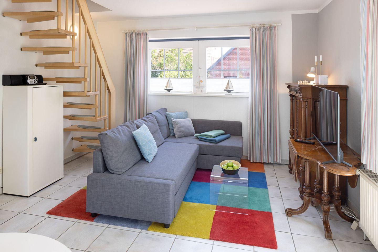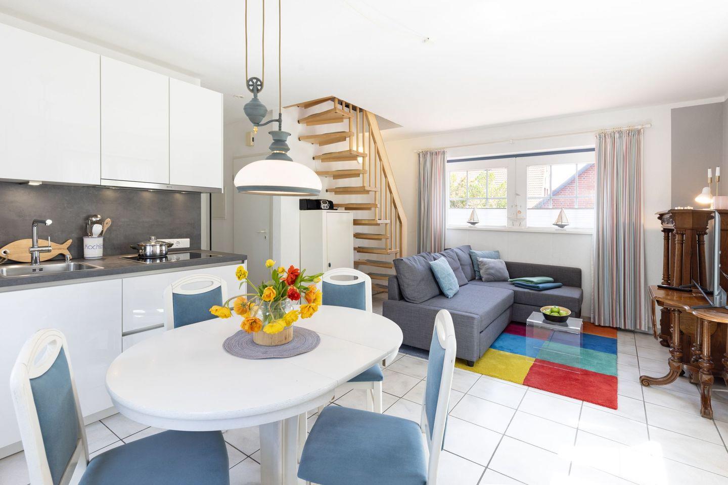 Genießen Sie unvergessliche Urlaubstage im stilvollen Apartment Cap Privat, idyllisch gelegen nahe der Dünen und dem Strand von List. Auf 50?m² erwartet Sie ein offener Wohnbereich mit gemütlicher Sofaecke und moderner Küche, ausgestattet mit Cerankochfeld, Spülmaschine, Mikrowelle und Nespresso-Maschine. Zwei Fernseher sorgen für entspannte Abende.