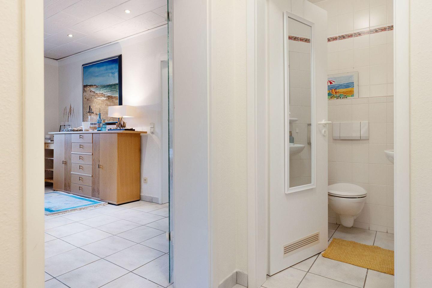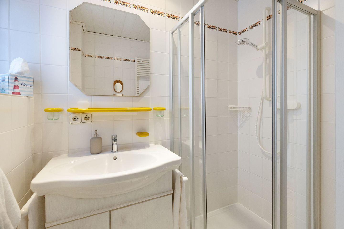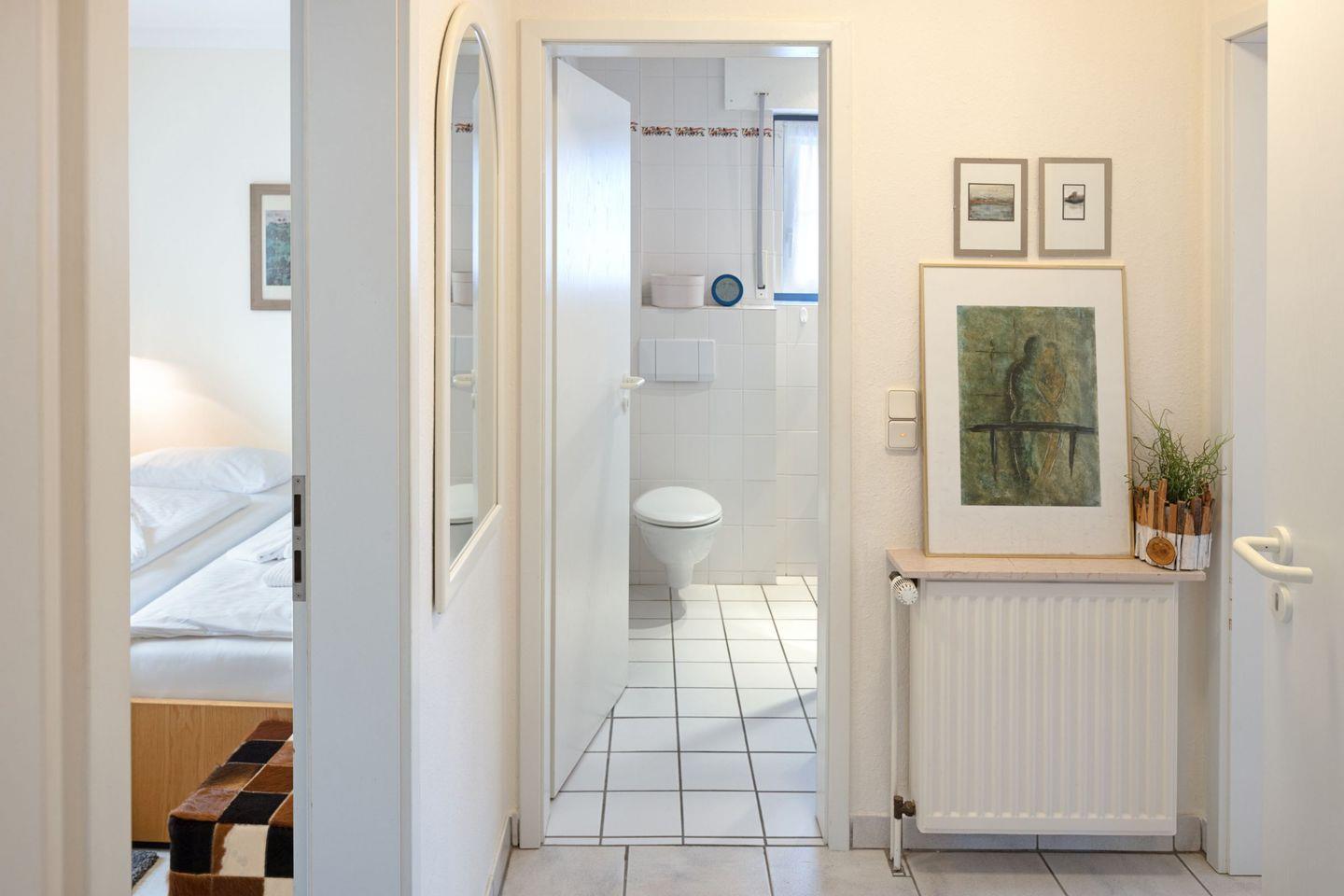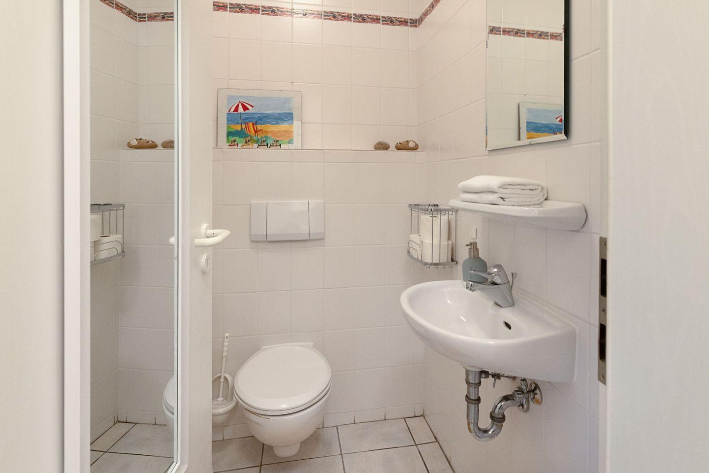 Badezimmer mit Dusche sowie ein separates Gäste-WC sind vorhanden, Bettwäsche und Handtücher inklusive.