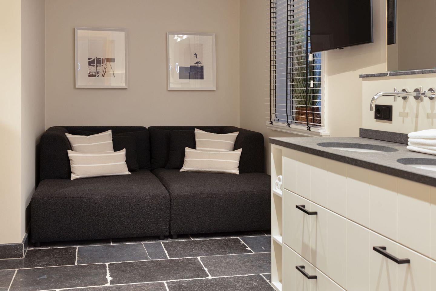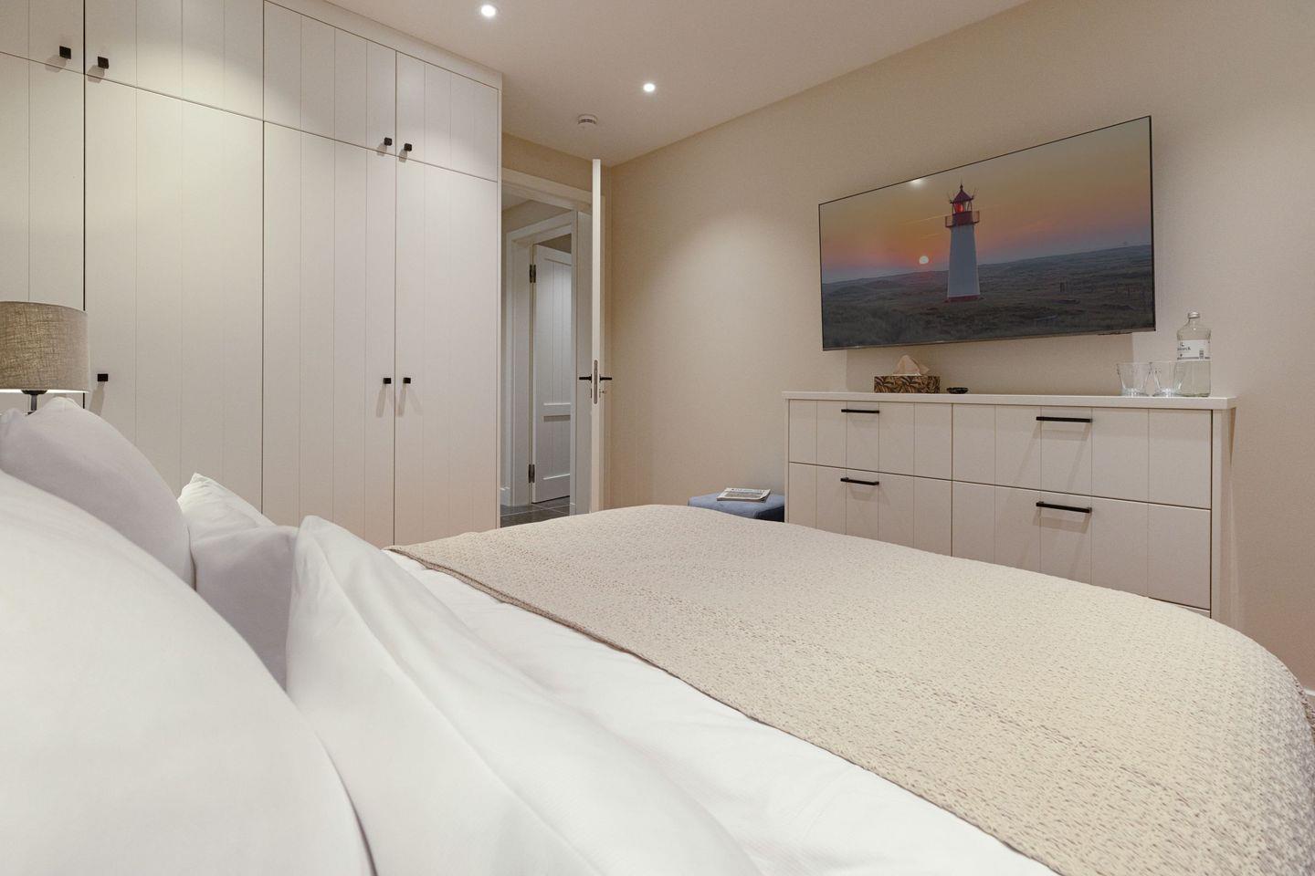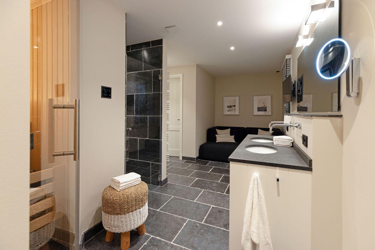 Drei komfortable Schlafzimmer, zwei moderne Badezimmer mit bodengleichen Duschen, ein Gäste-WC sowie ein privater Wellnessbereich mit Sauna und Ruheraum sorgen für höchsten Wohnkomfort.