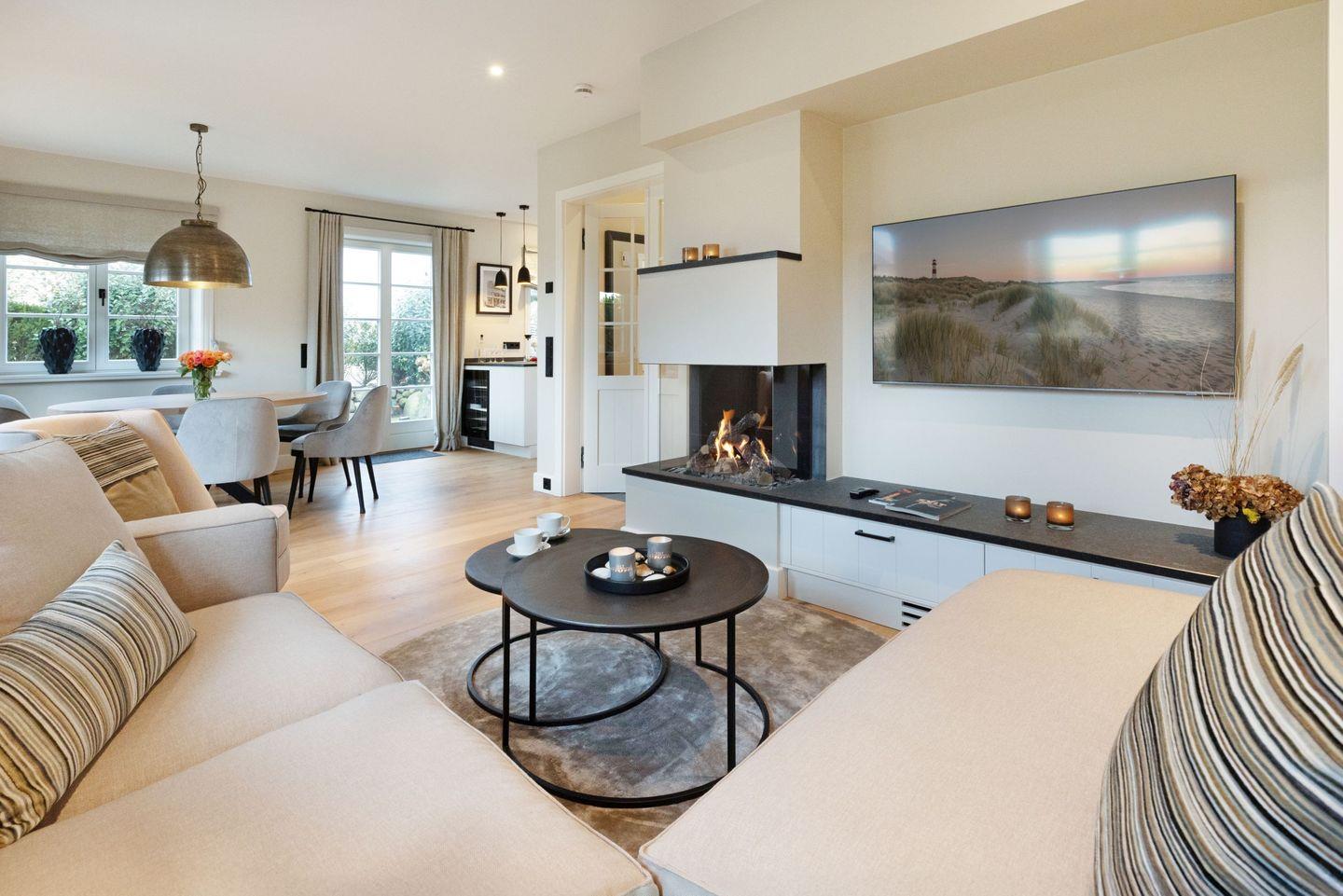 Der offen gestaltete Wohn-, Ess- und Kochbereich mit voll ausgestatteter Küche, großem Esstisch und gemütlichem Wohnbereich mit Gaskamin und Flachbild-TV lädt zum Verweilen ein.