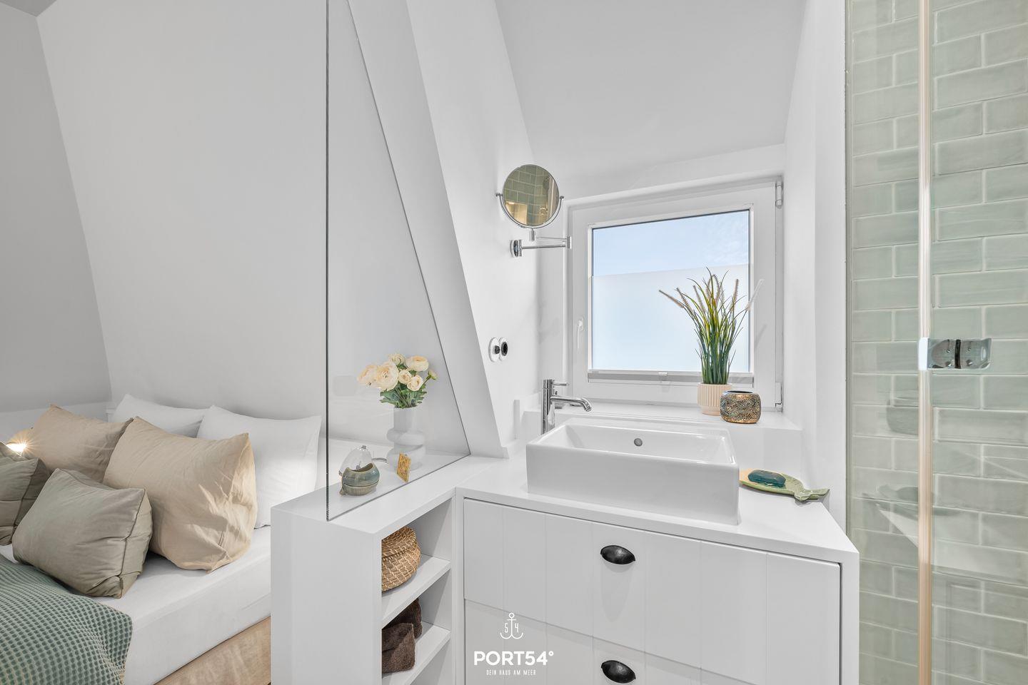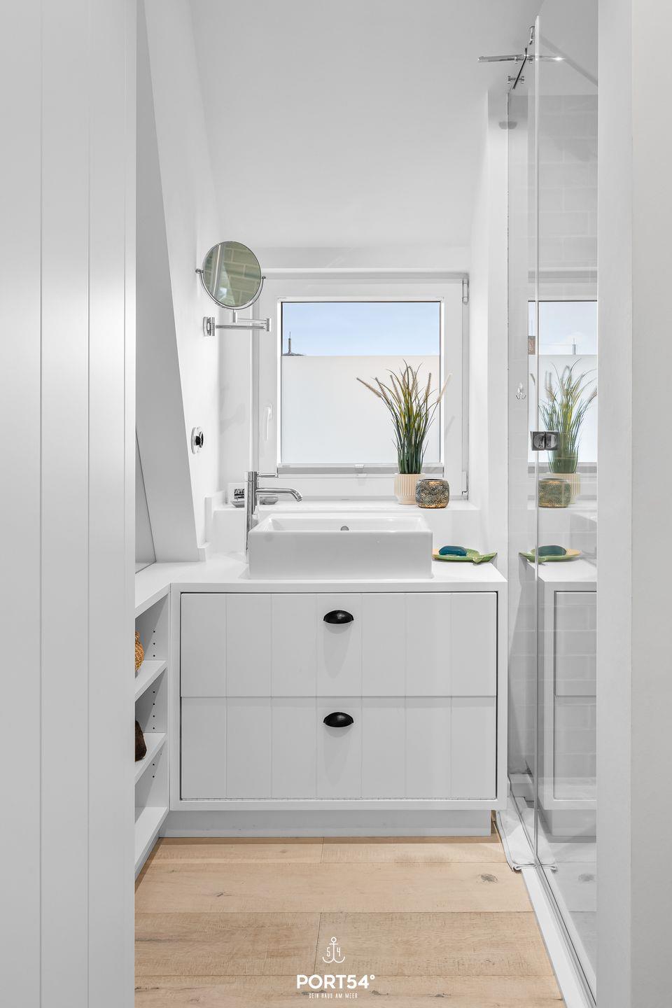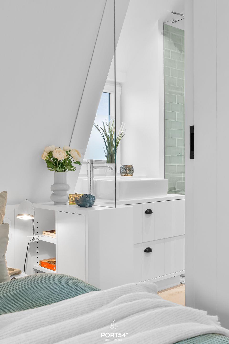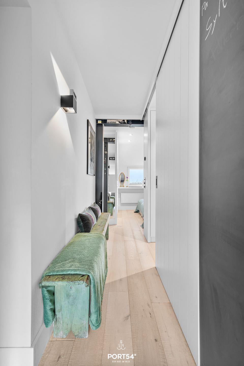 Die im 1. Obergeschoss gelegene Wohnung bietet ideale Voraussetzungen für Paare oder Alleinreisende, die eine entspannte Auszeit am Meer suchen. Hochwertige Materialien, eine harmonische Gestaltung und die ruhige Umgebung schaffen ein Ambiente, das Erholung und Wohlbefinden auf besondere Weise verbindet.