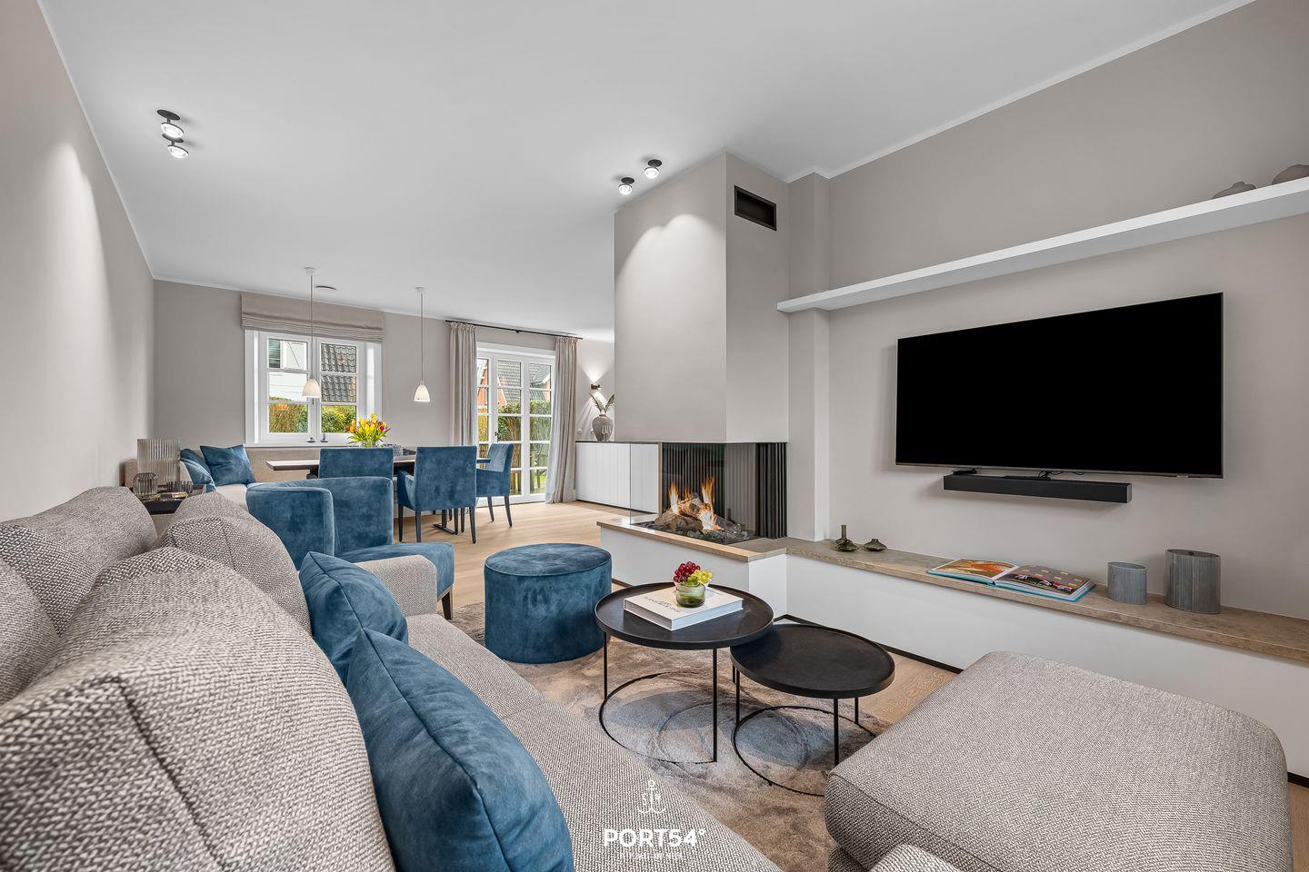 Das Haus erstreckt sich über drei Etagen und verbindet moderne Haustechnik mit einer warmen, wohnlichen Atmosphäre. Herzstück des Hauses ist der offene Wohnbereich, in dem Wohnzimmer, Essbereich und Küche harmonisch ineinander übergehen. Parkettböden in Wohn- und Schlafzimmern sorgen für ein angenehmes Wohngefühl, während Fußbodenheizung und Wärmepumpe ganzjährig für behagliche Temperaturen sorgen. Eine gemütliche Sofaecke lädt zu entspannten Abenden ein, besonders wenn im Kaminofen ein Feuer brennt und eine stimmungsvolle Atmosphäre schafft.