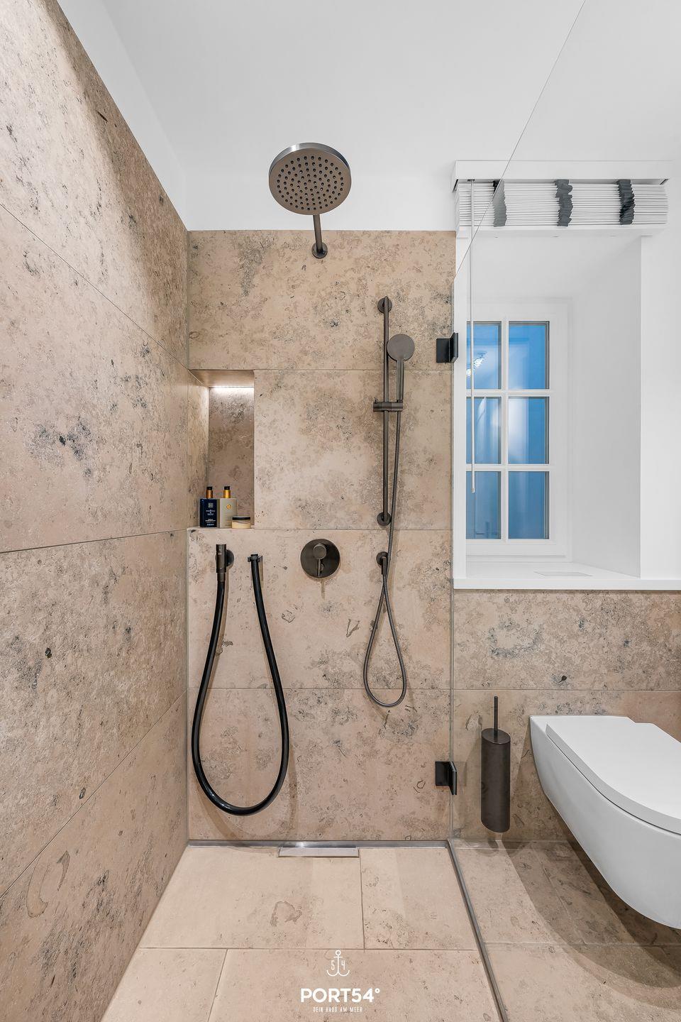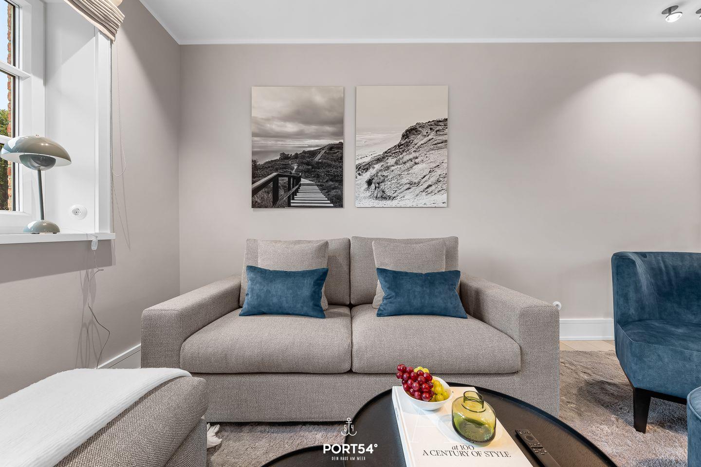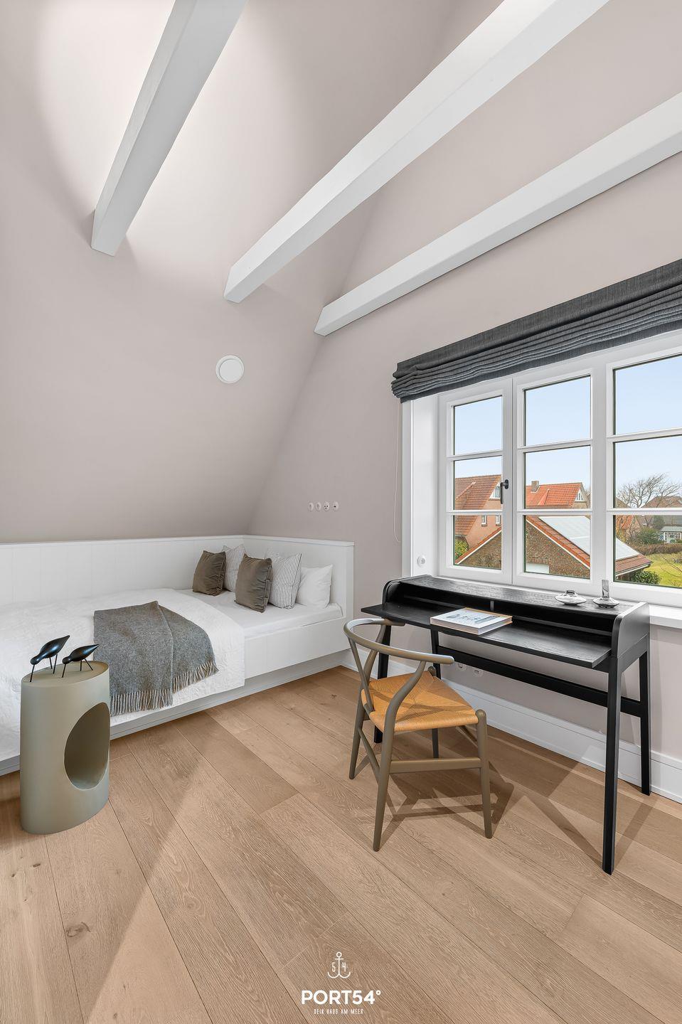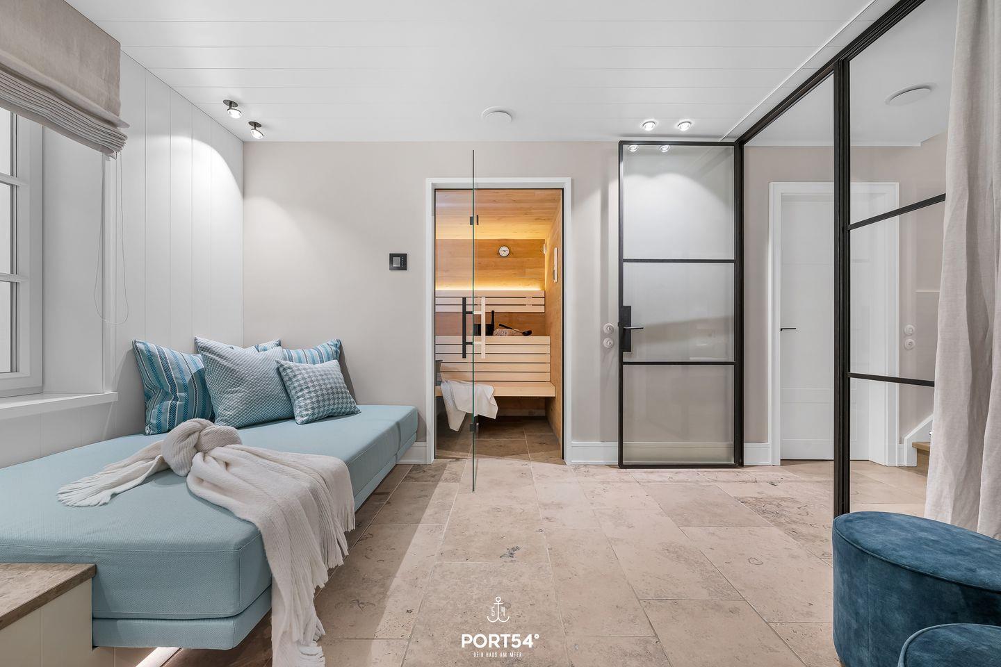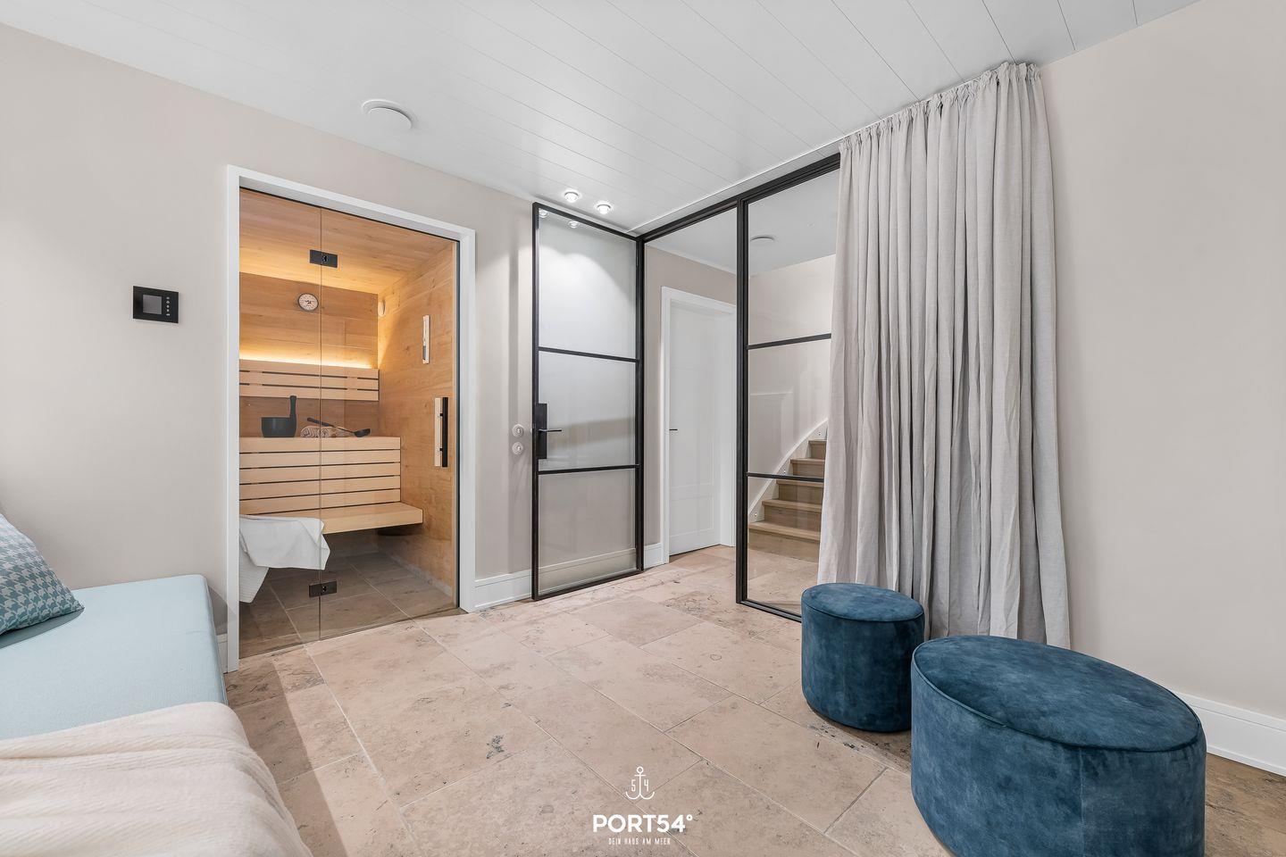 Ein besonderes Highlight des Hauses ist der private Wellnessbereich mit Sauna und Ruheraum. Nach einem langen Spaziergang am Königshafen, einer Fahrradtour über die Insel oder einem Tag am Meer bietet dieser Bereich ideale Entspannung. Die beiden modernen Badezimmer verfügen über großzügige, bodengleiche Duschen und Fenster für angenehmes Tageslicht. Für längere Aufenthalte stehen außerdem Waschmaschine und Trockner zur Verfügung. Bettwäsche, Handtücher und Geschirrhandtücher werden gestellt.