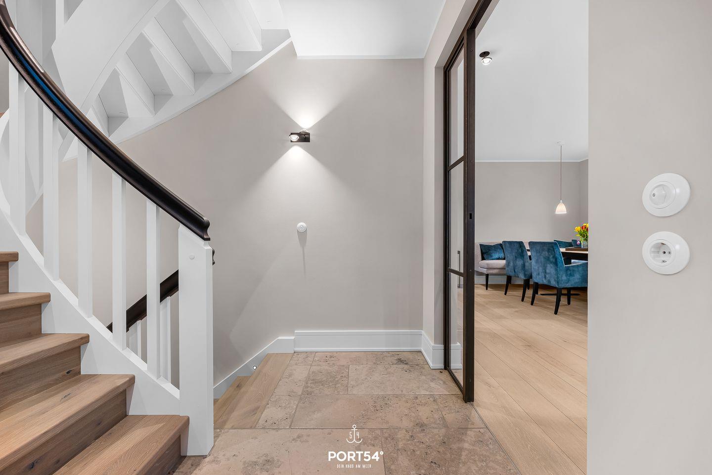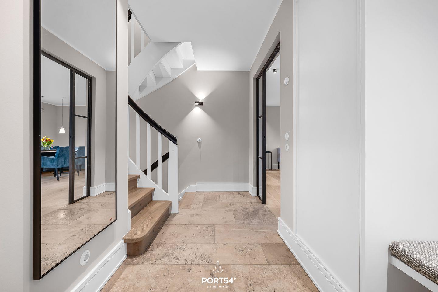 Die Lage des Ferienhauses ist besonders attraktiv: Das Meer liegt nur etwa 300 Meter entfernt, der Strand rund 500 Meter. Restaurants erreichen Sie bereits nach wenigen Schritten, Einkaufsmöglichkeiten sind ebenfalls schnell erreichbar. Auch der öffentliche Nahverkehr sowie die Fähre nach Dänemark befinden sich in der Nähe. Für Gäste mit Auto steht ein kostenloser Privatparkplatz direkt am Haus zur Verfügung.