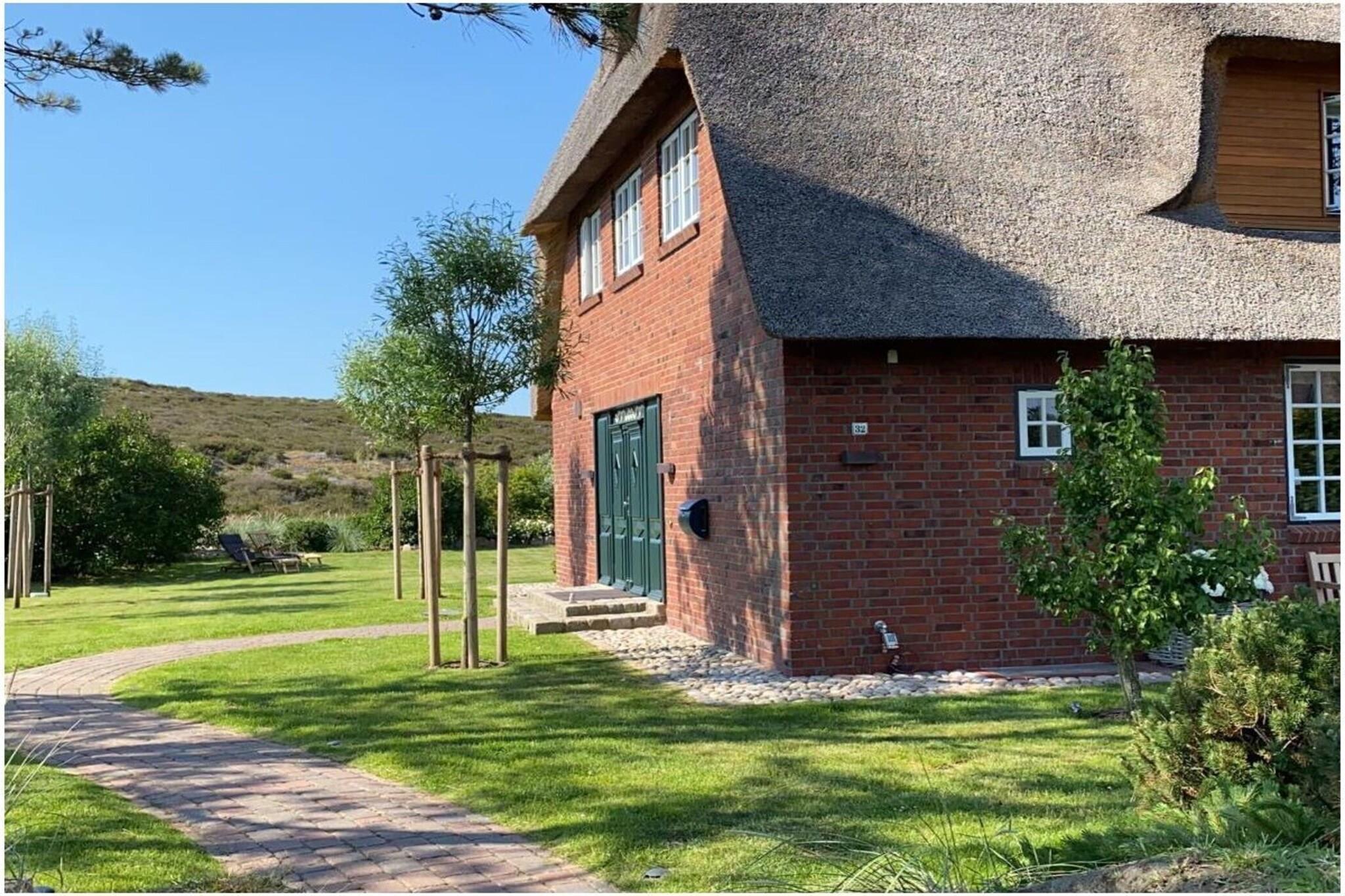 A retreat to fall in love with – a thatched-roof house on the edge of the Sylt dunes Nestled gently in the unique dune and heath landscape on the southern edge of List lies this idyllic semi-detached thatched-roof house – a place that exudes tranquility and touches the soul. From here, your gaze sweeps unimpeded across the vast natural landscape, while the wind softly rustles through the grass and the North Sea is ever-present. The house has been lovingly and meticulously restored inside and out – exclusive materials, natural wood floors, and a cozy tiled stove lend warmth and character to every room. The spacious eat-in kitchen invites you to spend long evenings with family and friends. Outside, a 1,300 m² garden awaits, perfectly integrated into the landscape – with three sunny terraces, a private beach chair, and loungers for relaxing hours under the open sky. Whether you prefer the gentle mudflats or the rugged North Sea, the island's most beautiful stretches of coastline are just a short walk away. Your personal retreat on Sylt – for moments that will last.