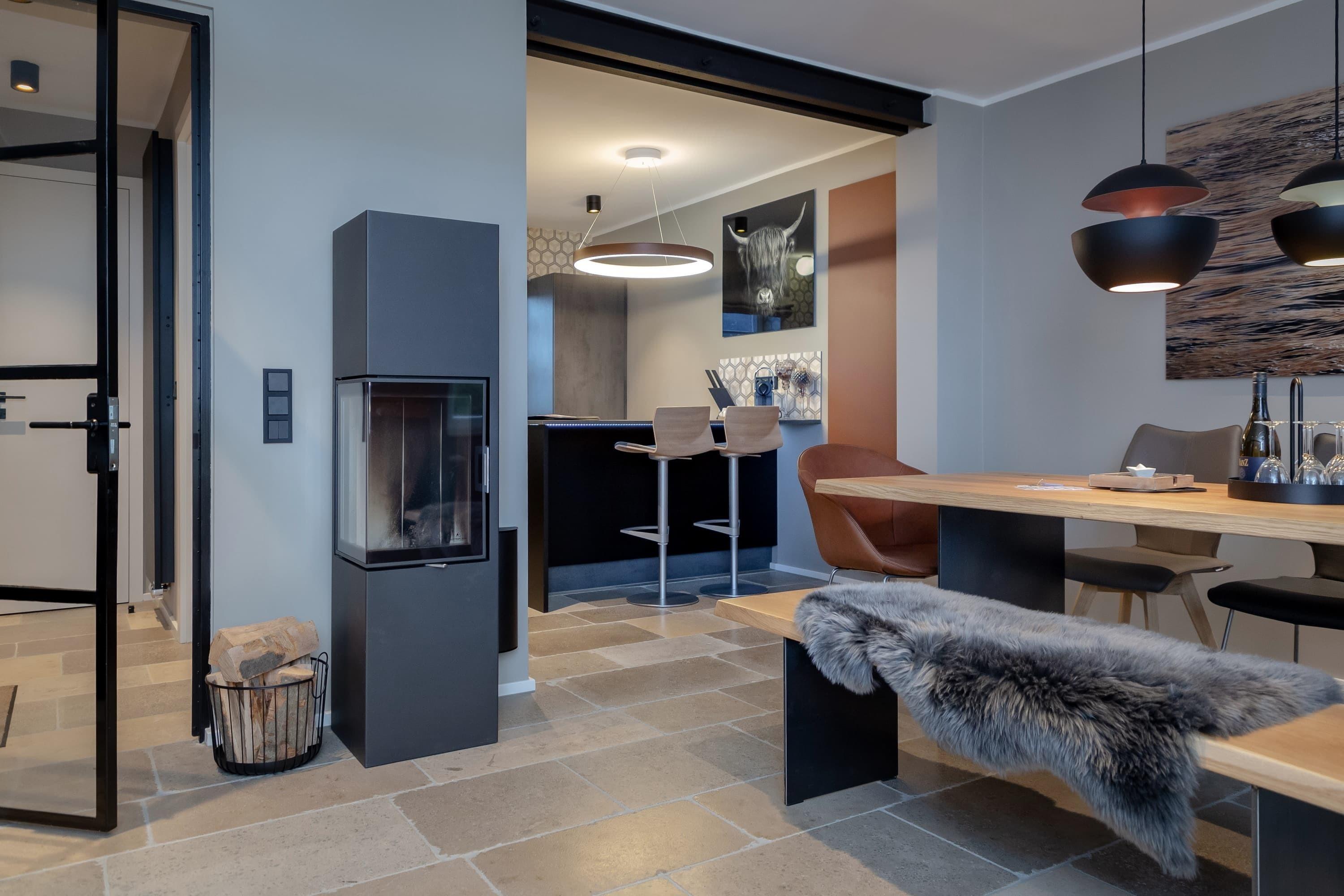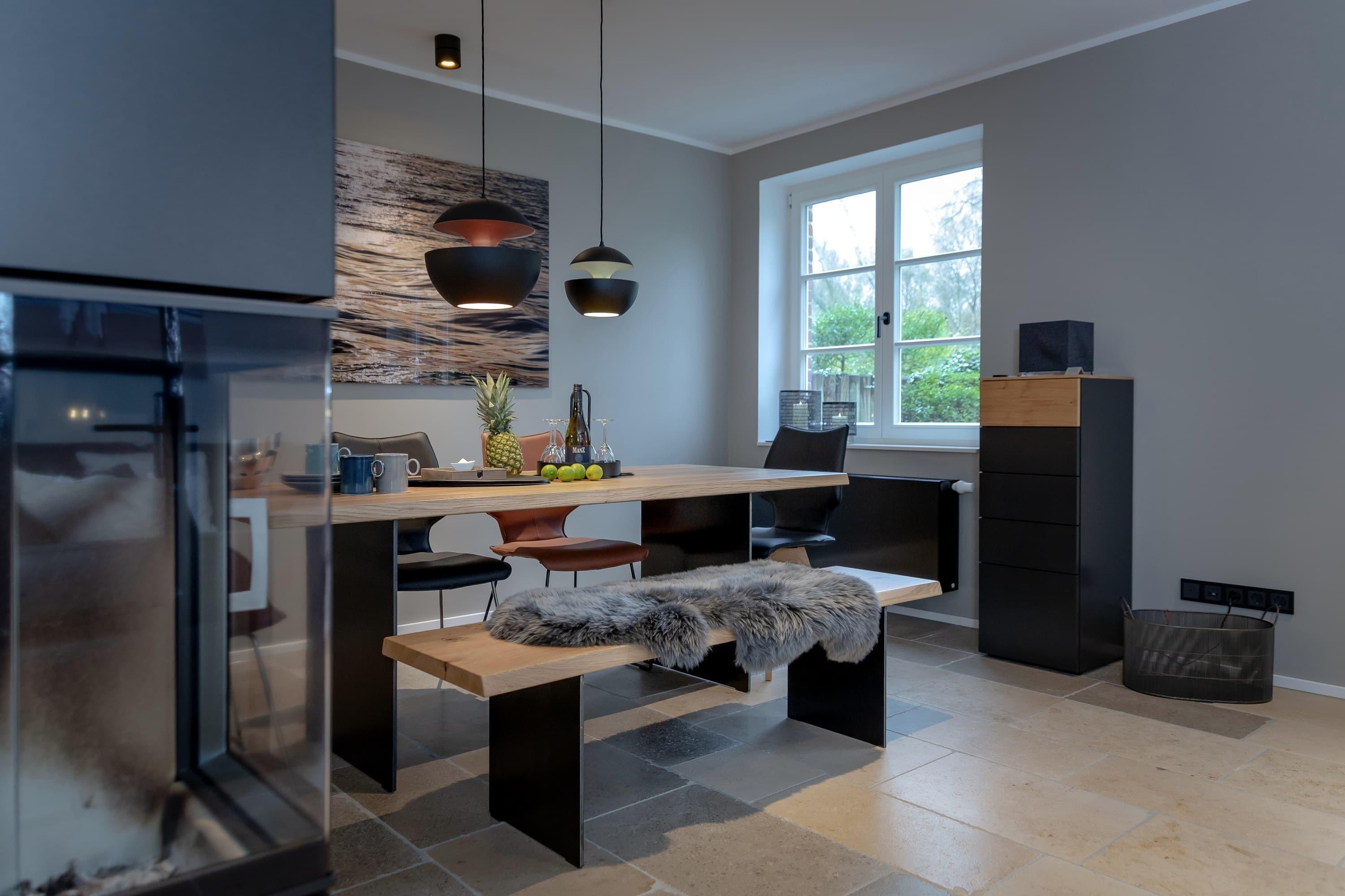Das Haus am Buttgraben ist für bis zu 6 Personen geeignet und befindet sich in ruhiger Lage nahe dem Lister Ellenbogen, dennoch gelangt man sehr schnell fußläufig ins Zentrum von List sowie an den Lister Hafen. Ein rundum modernes Haus zum Wohlfühlen. Der großzügige Garten mit Terrasse lädt zum entspannten verweilen ein. Der großzügige Wohnraum mit Kamin und seiner modernen Küche gehören zu den vielen Qualitäten dieser modernen Doppelhaushälfte. Die offene Küche mit Weinkühlschrank ist mit allen technischen Geräten ausgestattet und lässt keine Wünsche offen. Insgesamt verfügt das Haus über ein Schlafzimmer mit Doppelbett mit Bad en Suite. Die anderen beiden Schlafzimmer verfügen über getrennt stehende Einzelbetten. Ein weiteres Duschbad mit WC und eine Gästetoilette sind im Erdgeschoss vorhanden.