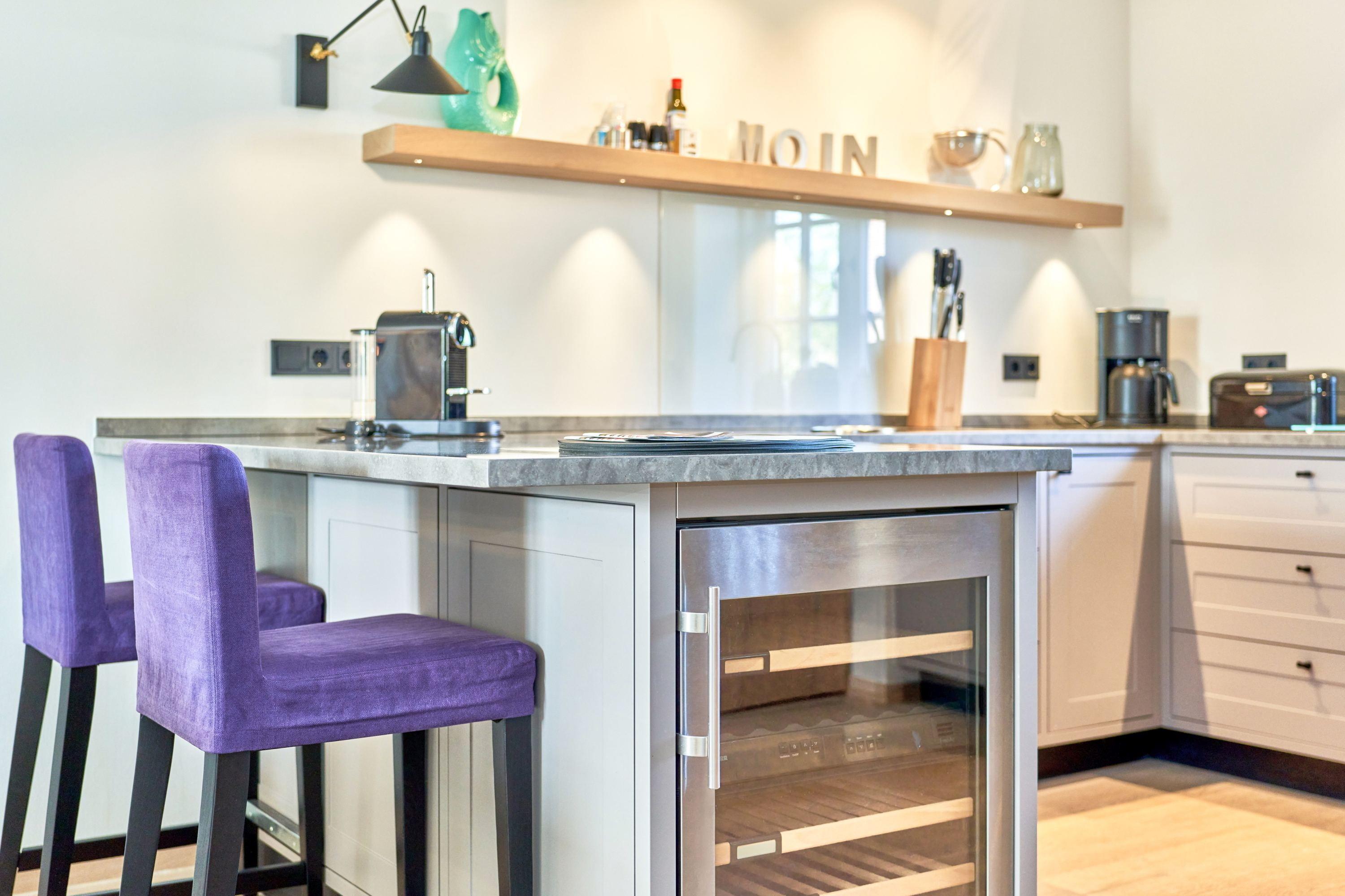 Es erwartet Sie ein außergewöhnlich großes und luxuriöses Ferienhaus unter Reet, alles kernsaniert, modern designt, individuell und ausgesprochen hochwertig ausgestattet mit jeweils 3 Doppelschlafzimmern und 3 Bädern, Der große Wohn-Essbereich mit Kamin und offener Küche lässt keinerlei Wünsche an Raumaufteilung und Ausstattung offen. Das Haus verfügt über einen Fitnessraum mit Crosstrainer, Fahrrad, Rudergerät und Yogamatte sowie einen separatem Duschbad mit WC. Der geschmackvolle Garten verfügt über zwei Terrassen eine mit Gartenmöbel und Tisch sowie die Süd - Terrasse mit Strandkorb. Stellplatz steht am Haus kostenlos zur Verfügung. Das Haus verfügt ab dem 01.01.2024 über eine E- Auto- Ladestation am dazugehörigen Parkplatz am Haus.