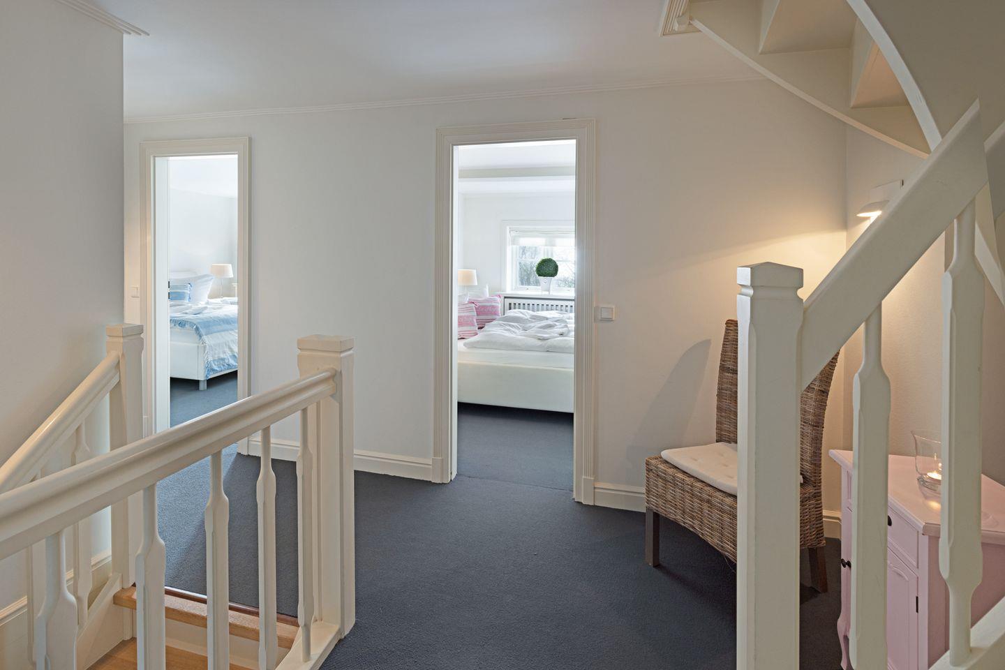 Ihr Haus "Wattläufer" verfügt auf 160 m² über drei Duschen und im 1. und 2. Stock über drei Schlafzimmer mit Doppelbetten.