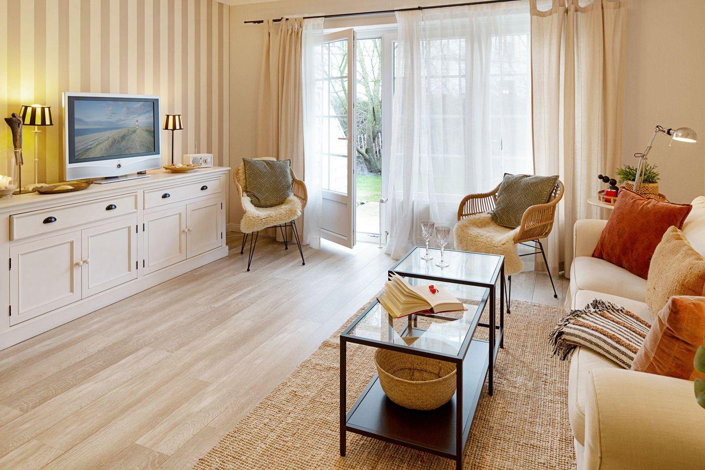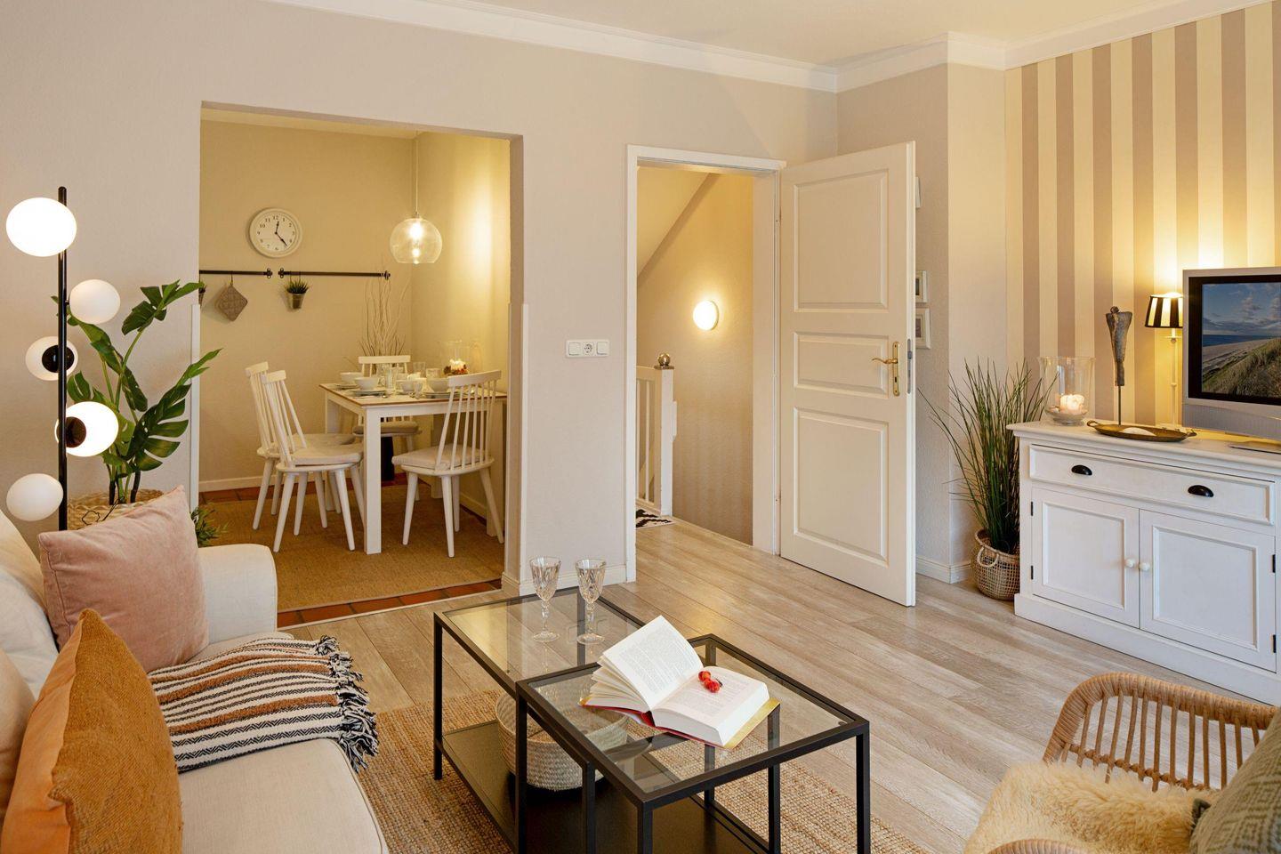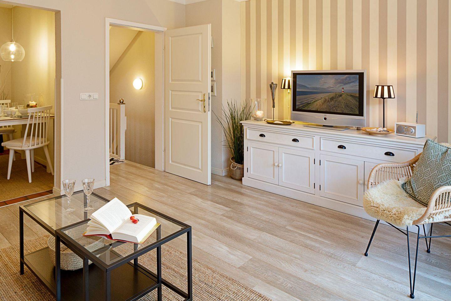 Die "Borlis Perle" befindet sich im Erdgeschoss und verfügt über drei stilvoll eingerichtete Schlafzimmer, die zum Entspannen und Wohlfühlen einladen. Der gemütliche Wohnbereich ist mit einer modernen Sofaecke ausgestattet, in der Sie nach einem erlebnisreichen Tag entspannen können. Die Ferienwohnung ist mit einem Fernseher ausgestattet, sodass für Unterhaltung gesorgt ist. Ein idealer Ort, um gemeinsame Abende mit Ihren Liebsten zu verbringen!