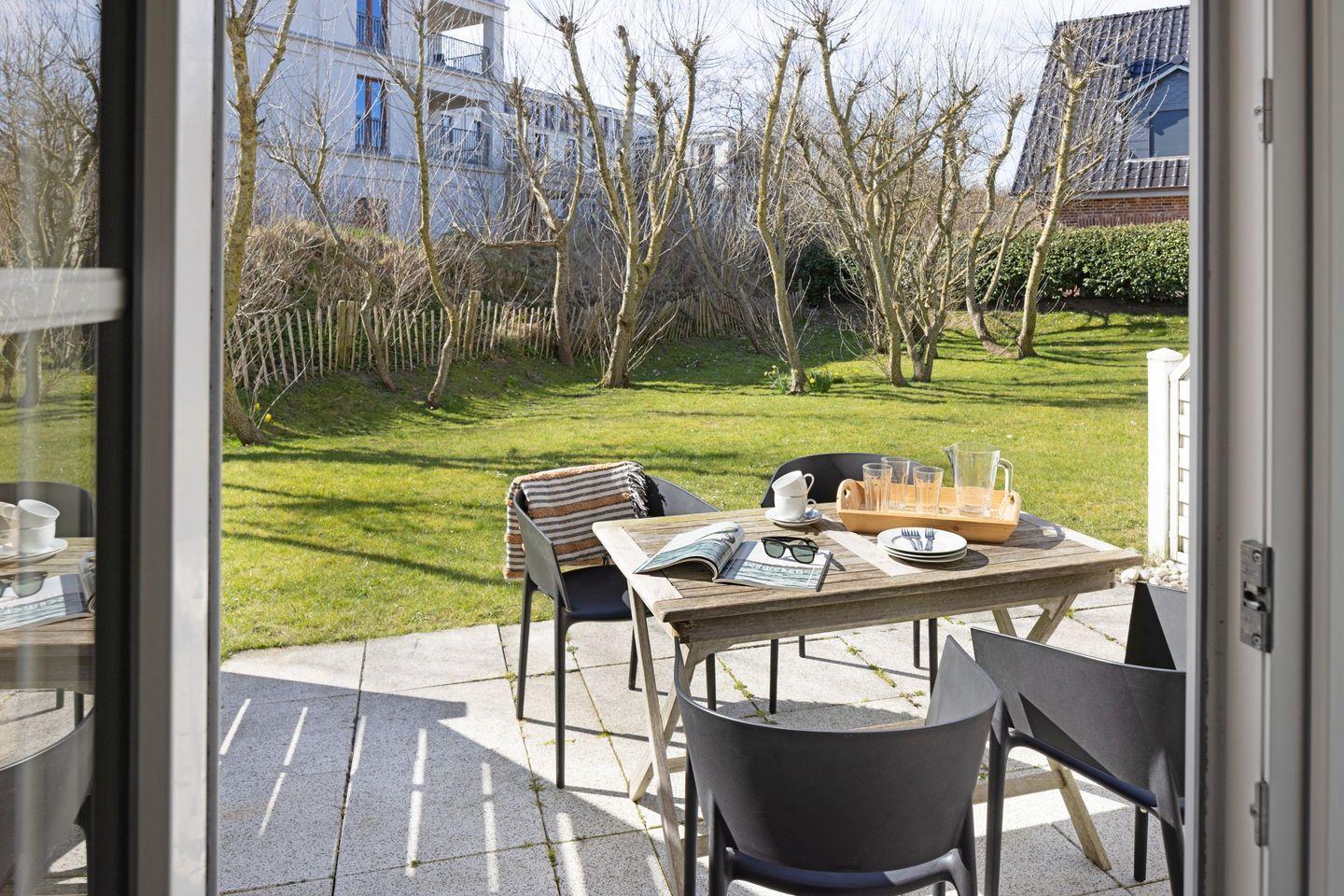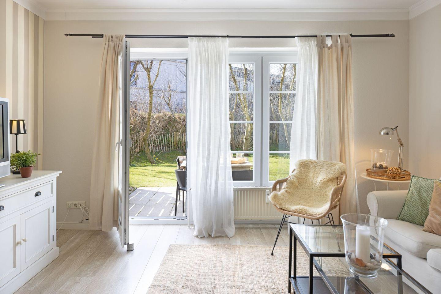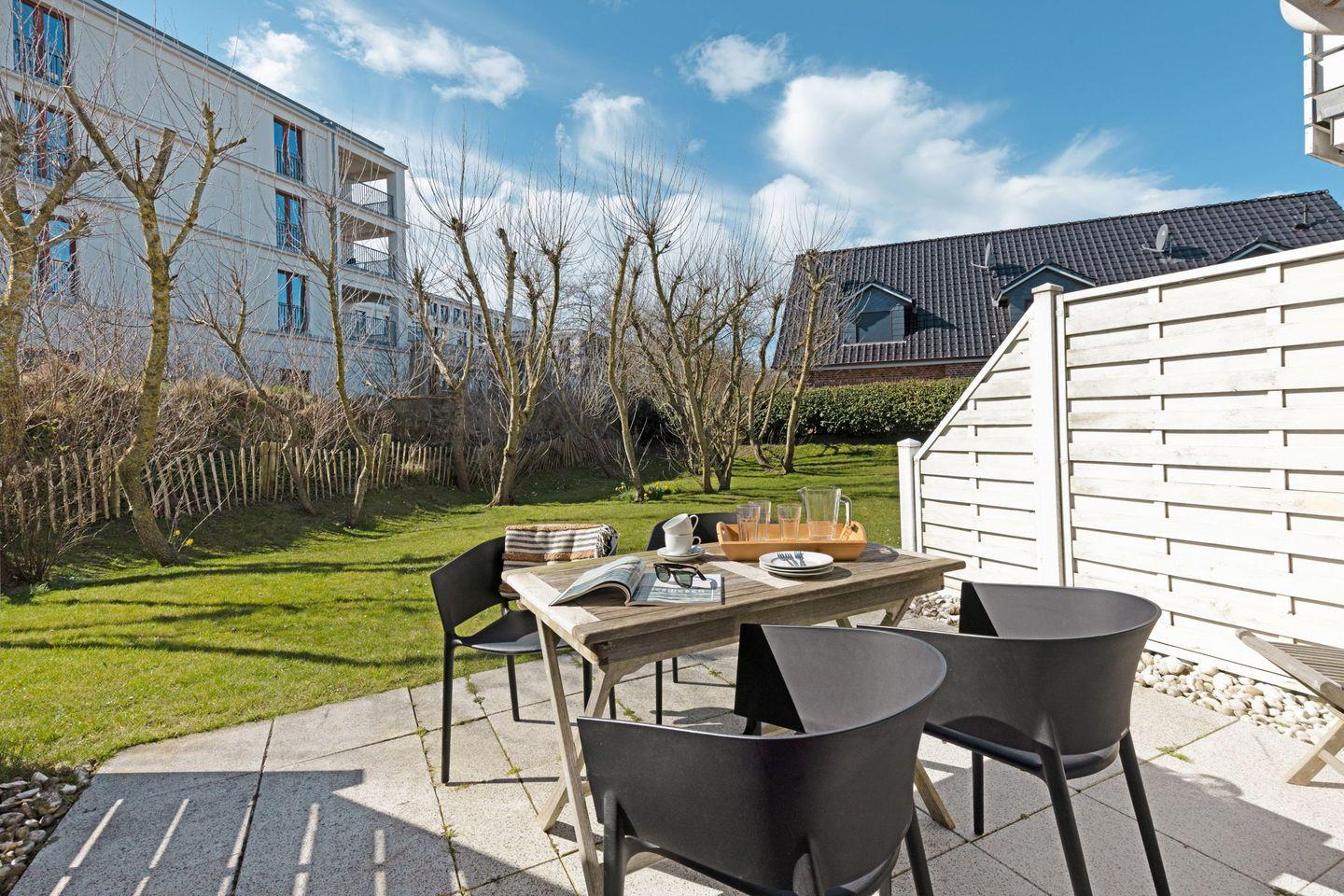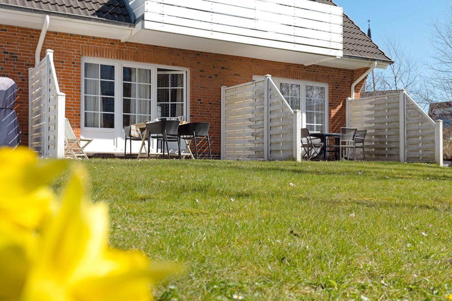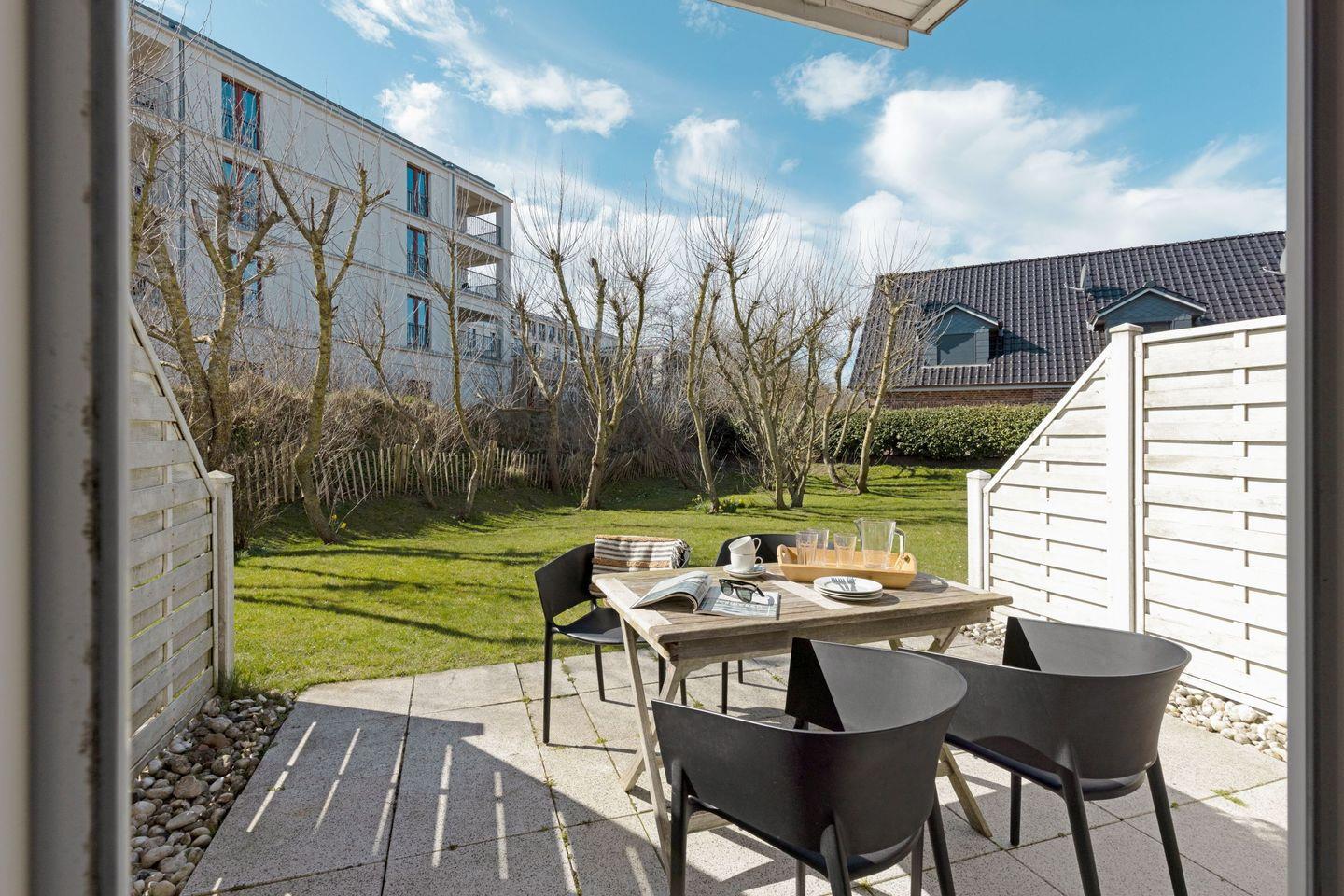 Ein weiteres Highlight der "Borlis Perle" ist die große Terrasse, die mit Gartenmöbeln und Strandkorb ausgestattet ist. Hier können Sie in der Sonne entspannen, den Blick auf die Umgebung genießen und sich mit einer guten Tasse Kaffee zurücklehnen.