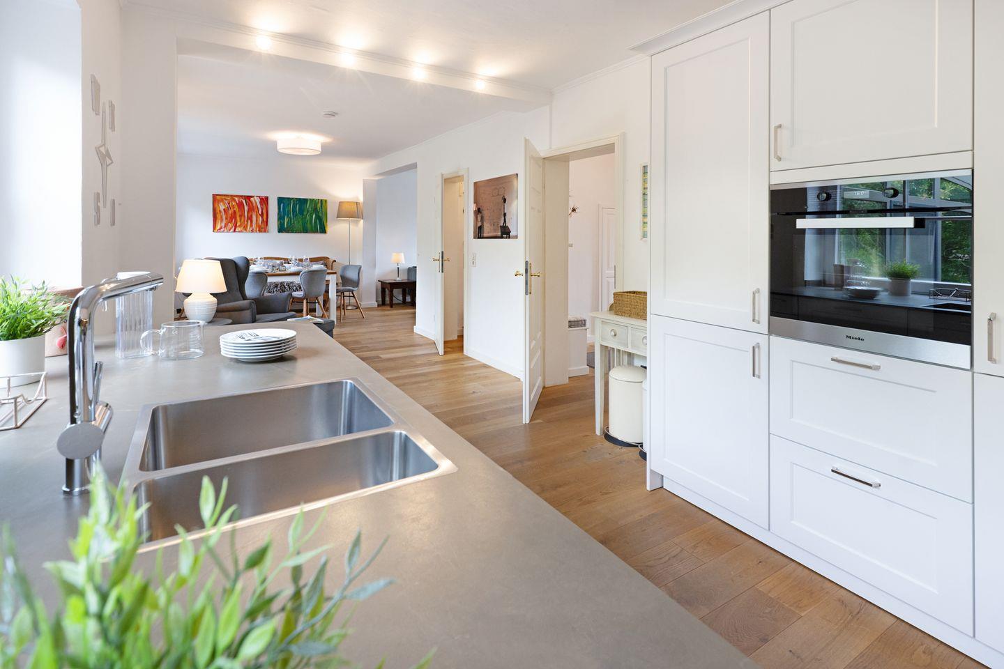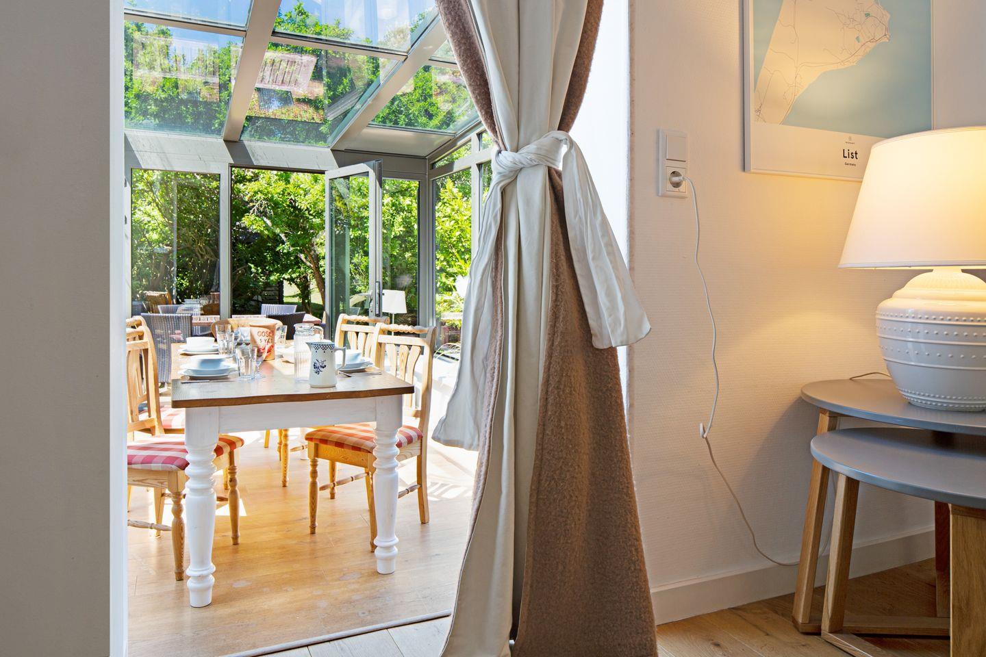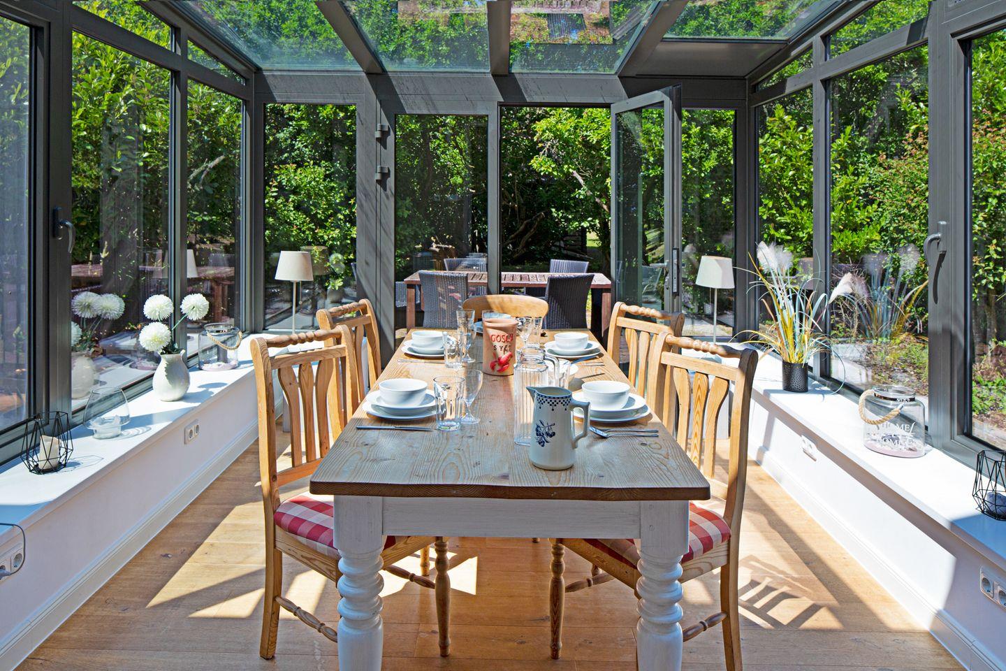 Von der offenen Küche aus erreichen Sie den lichtdurchfluteten Wintergarten.