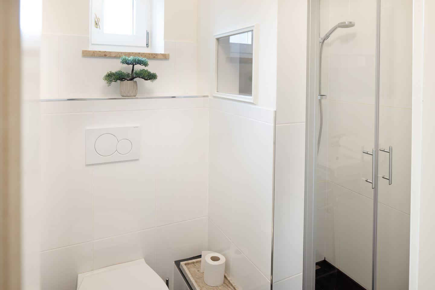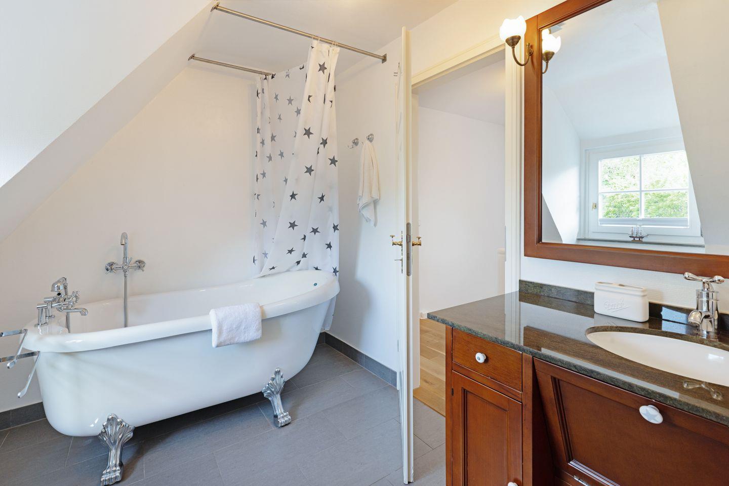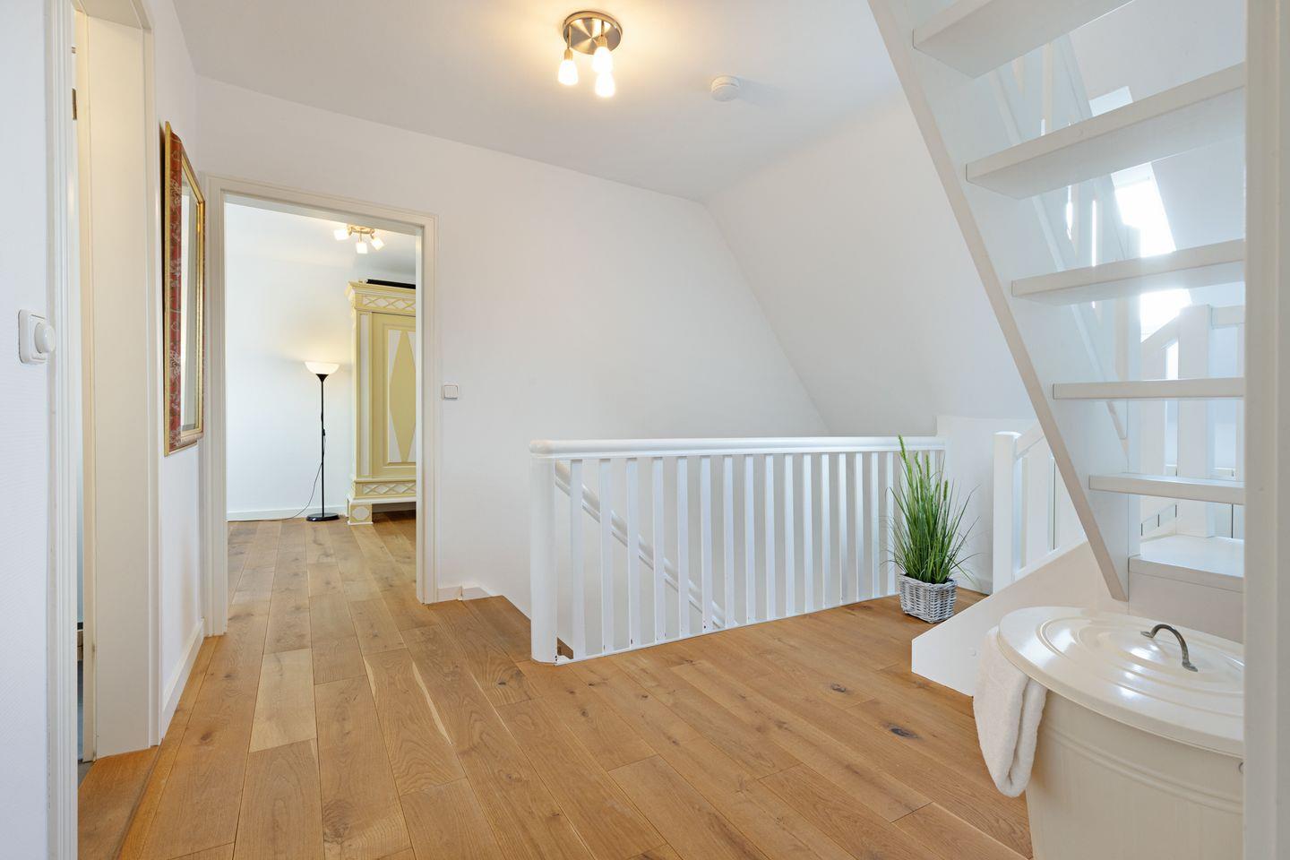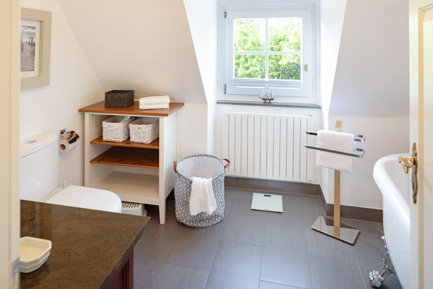 Es verfügt im 1. Stock über zwei Schlafzimmer mit Doppelbetten und Bad mit Wanne und im EG ein Schlafzimmer mit Etagenbett