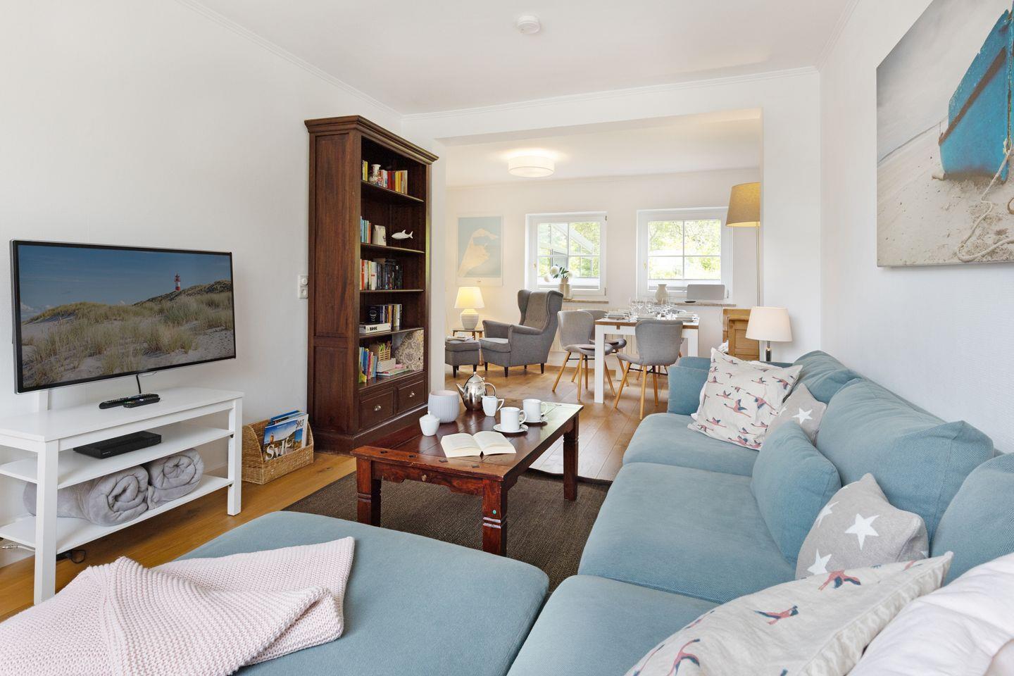 Zentral gelegenes familienfreundliches Ferienmittelhaus für bis zu sechs Personen mit Wintergarten und Garten mit Strandkorb.