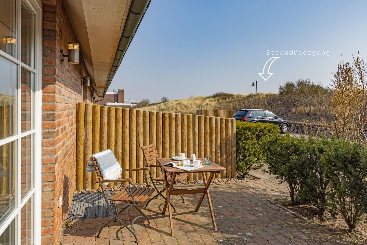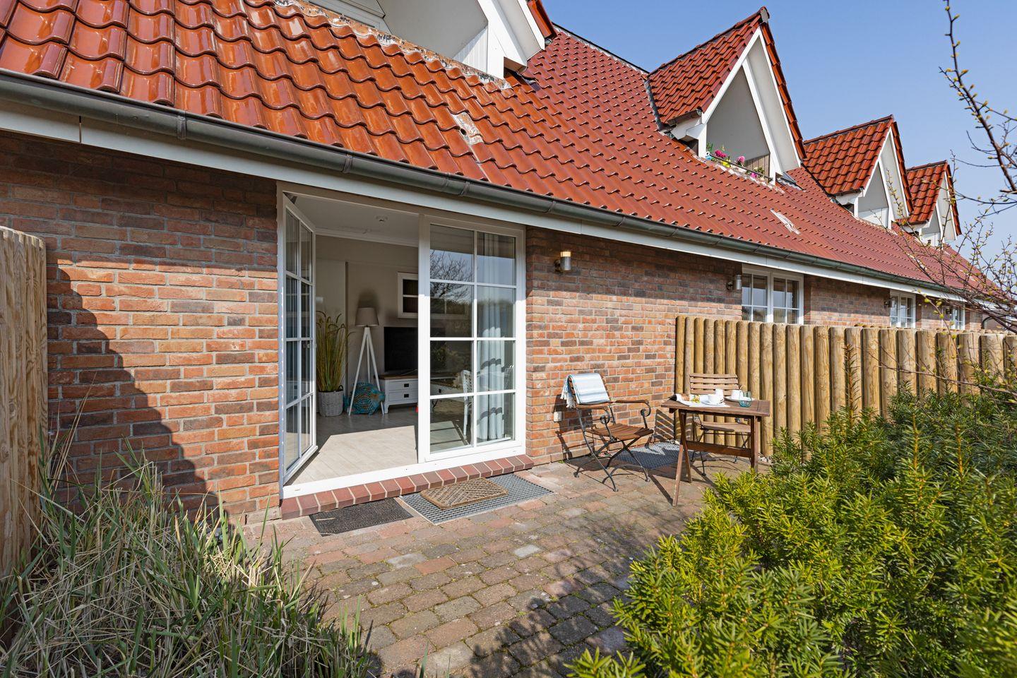 Gemütliches Appartement im Erdgeschoss für 2 Personen mit Terrasse und Strandkorb.