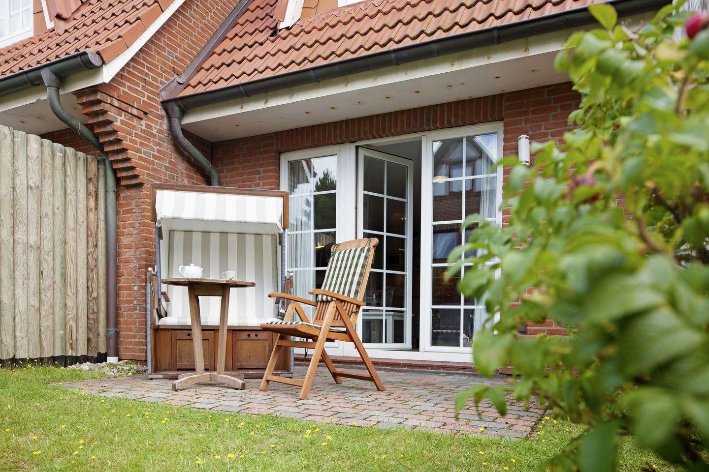 Schönes Einzimmer-Appartement für den Urlaub zu Zweit mit Terrasse und Strandkorb.