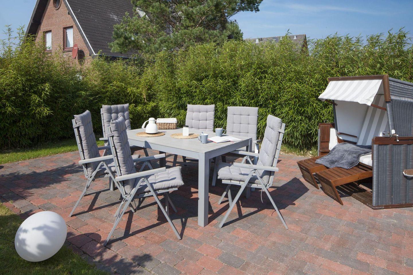 Es steht Ihnen eine Gemeinschafts-Terrasse (saisonal) mit Strandkorb und Gartenmöbel im Garten zur Verfügung.