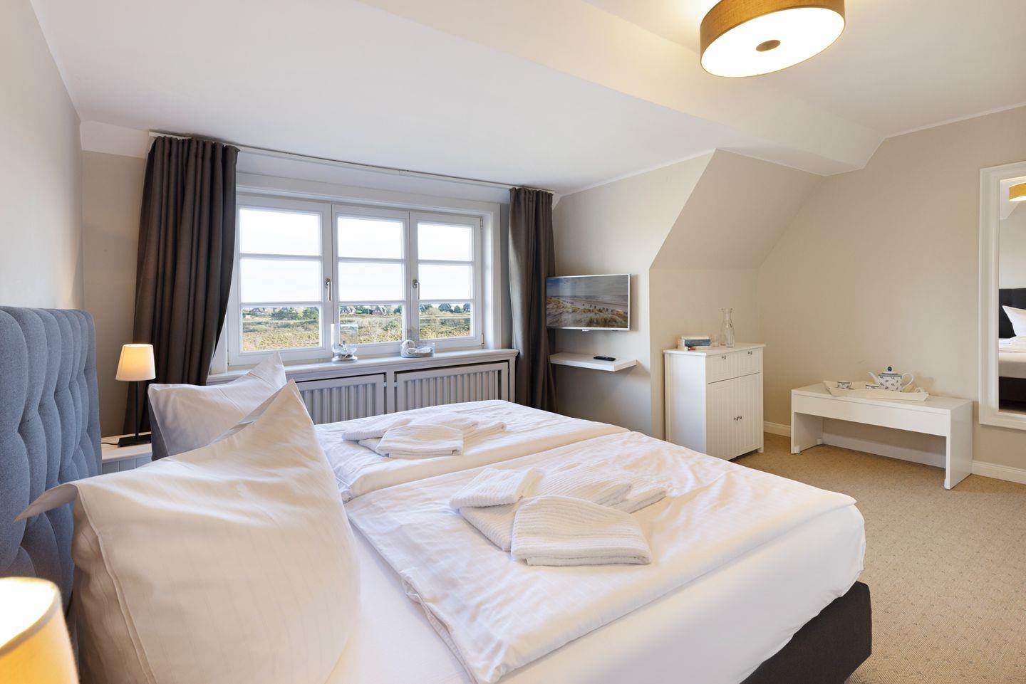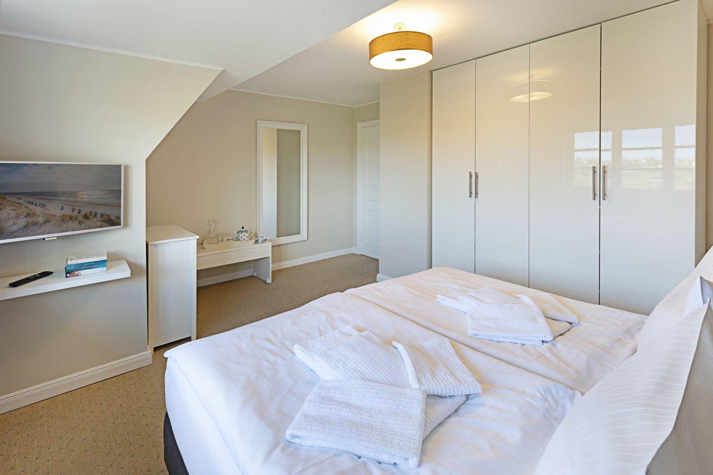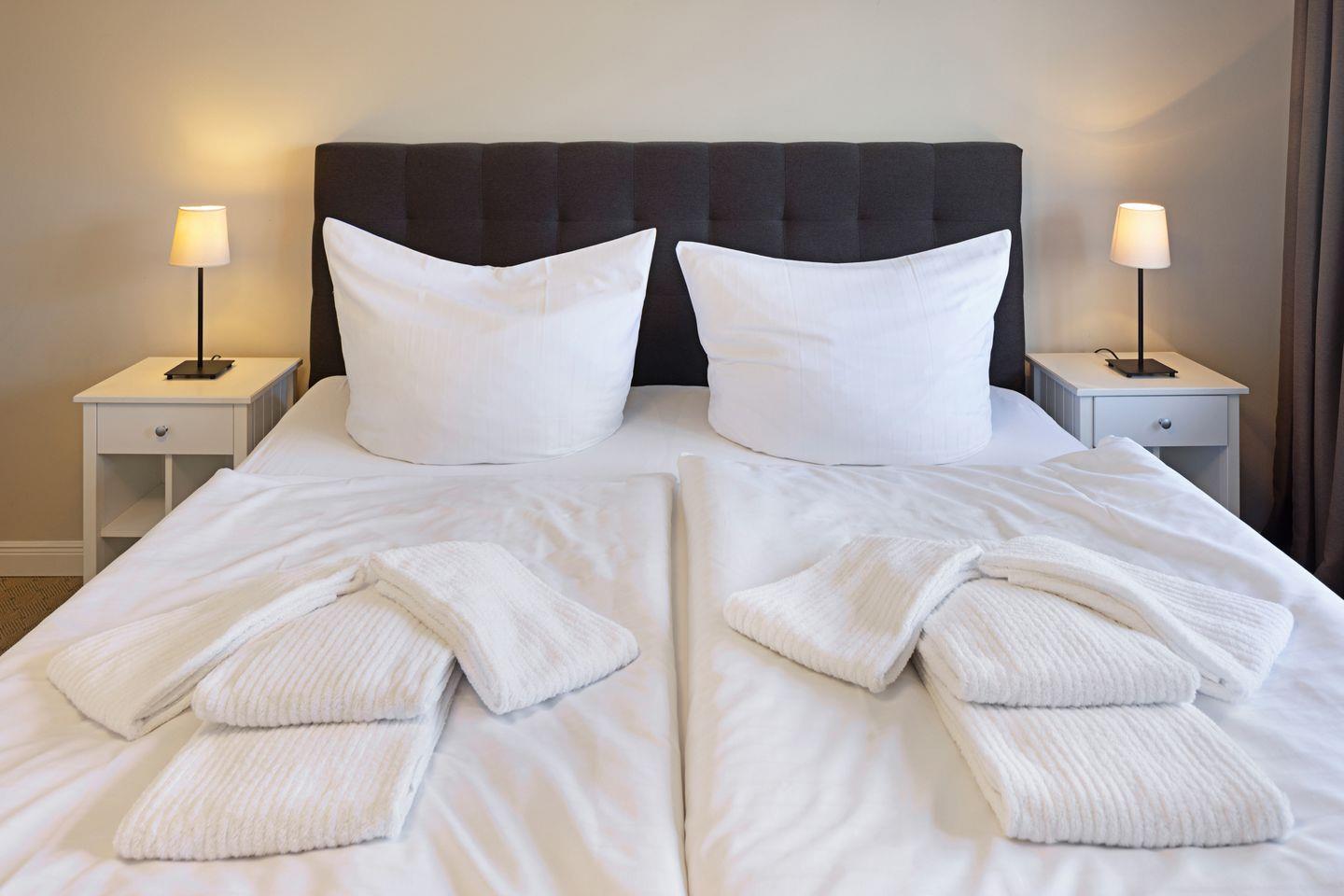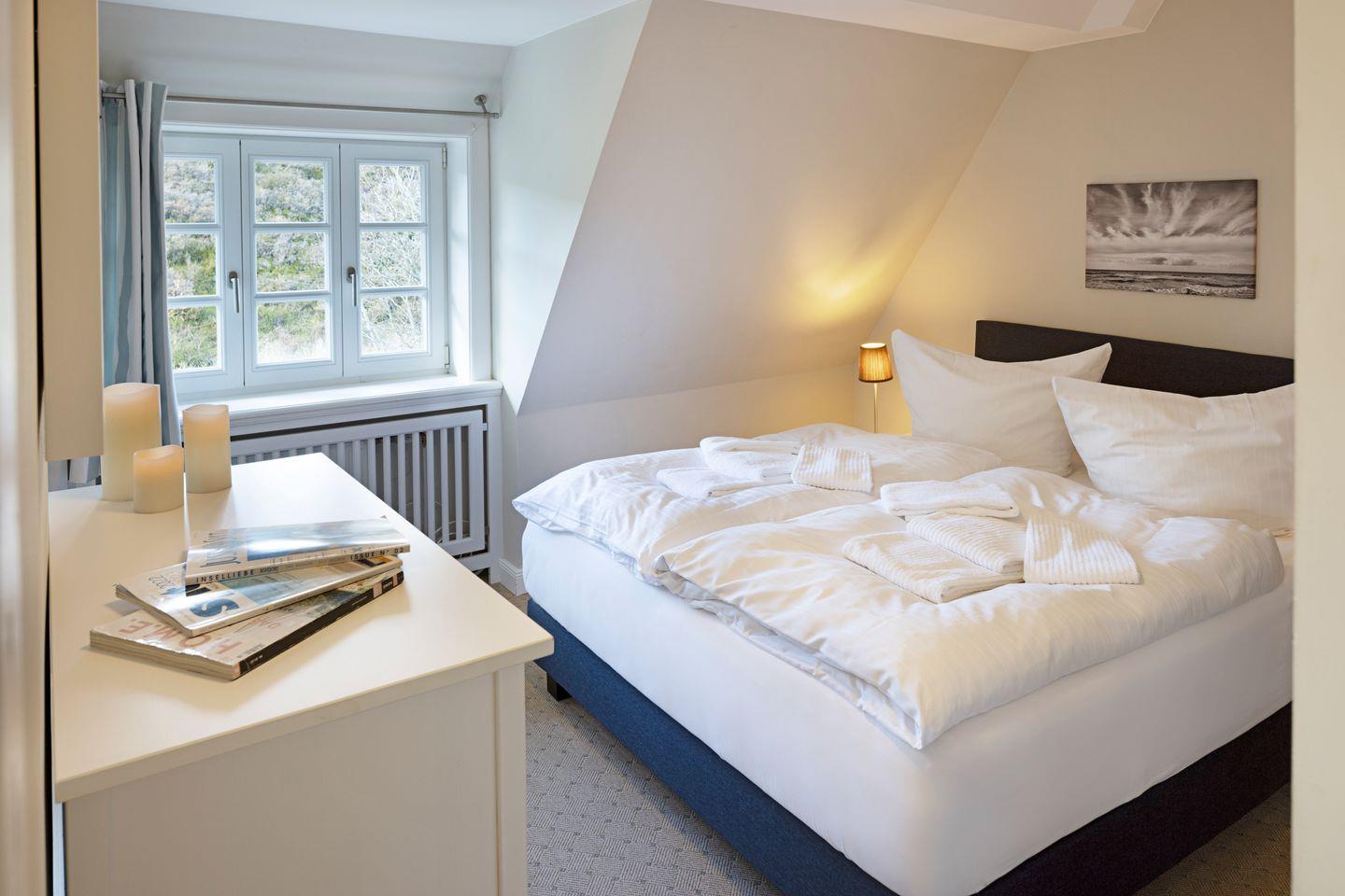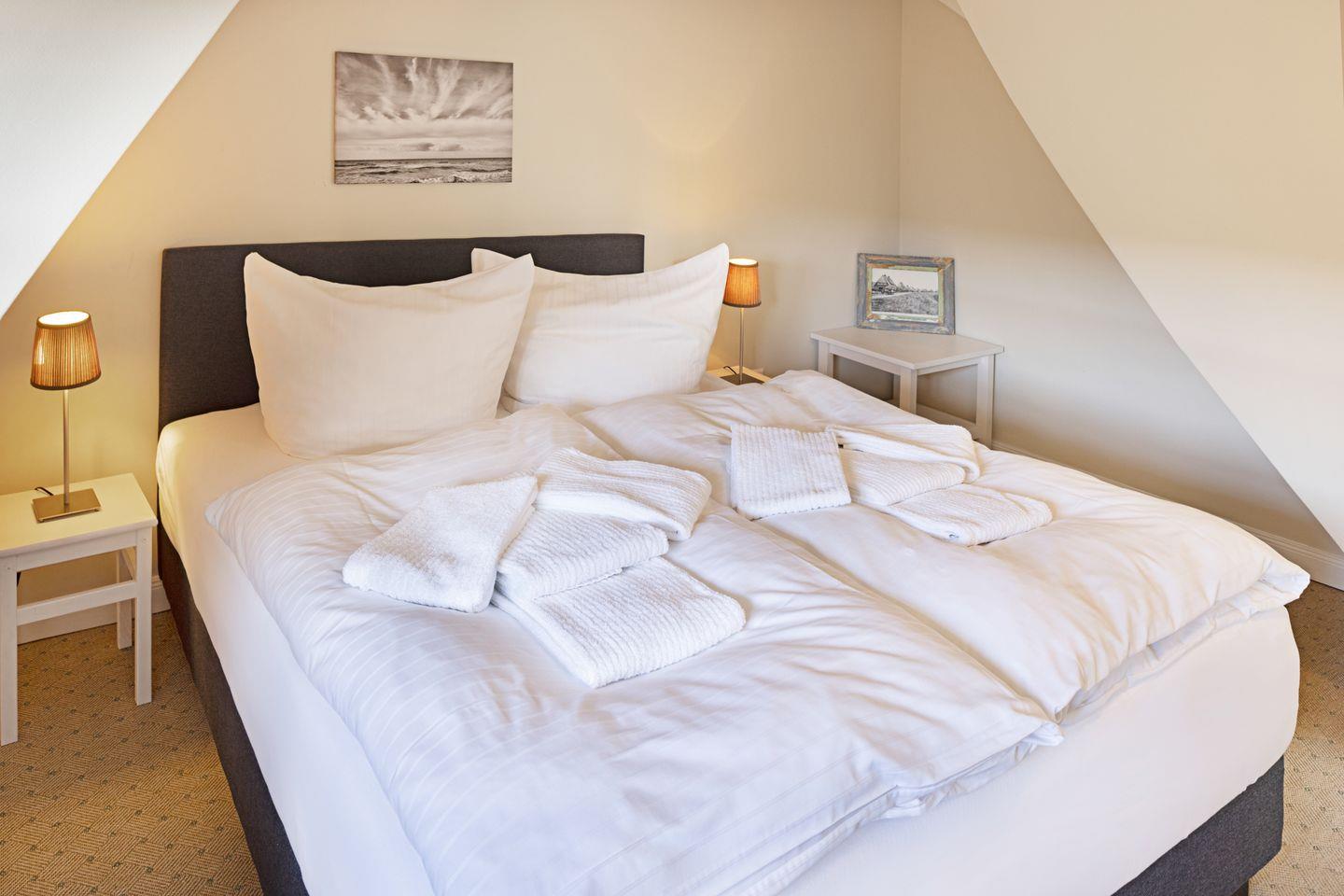 Das dritte neu renovierte Schlafzimmer mit Doppelbett und das zweite Badezimmer finden Sie im Souterrain.