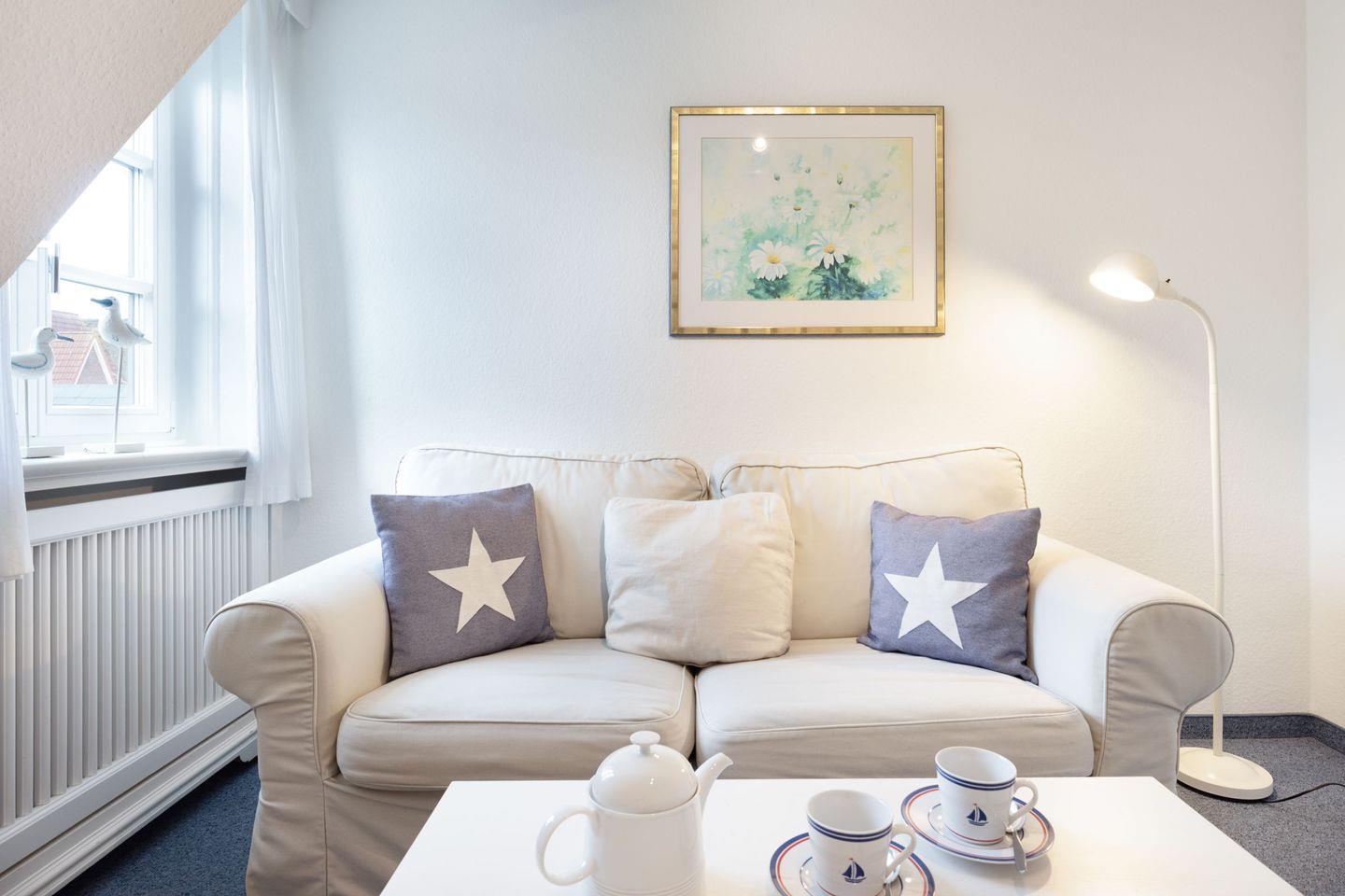 Entdecken Sie die charmante Ferienwohnung „Muschelsucher“ in List die einen perfekten Rückzugsort für Paare oder Alleinreisende bietet. Diese helle und einladende Unterkunft im 1. Stock erstreckt sich über 42 Quadratmeter und ist ideal für bis zu zwei Gäste. Hier werden Sie sich sofort wohlfühlen, umgeben von einem stilvollen und gemütlichen Ambiente.