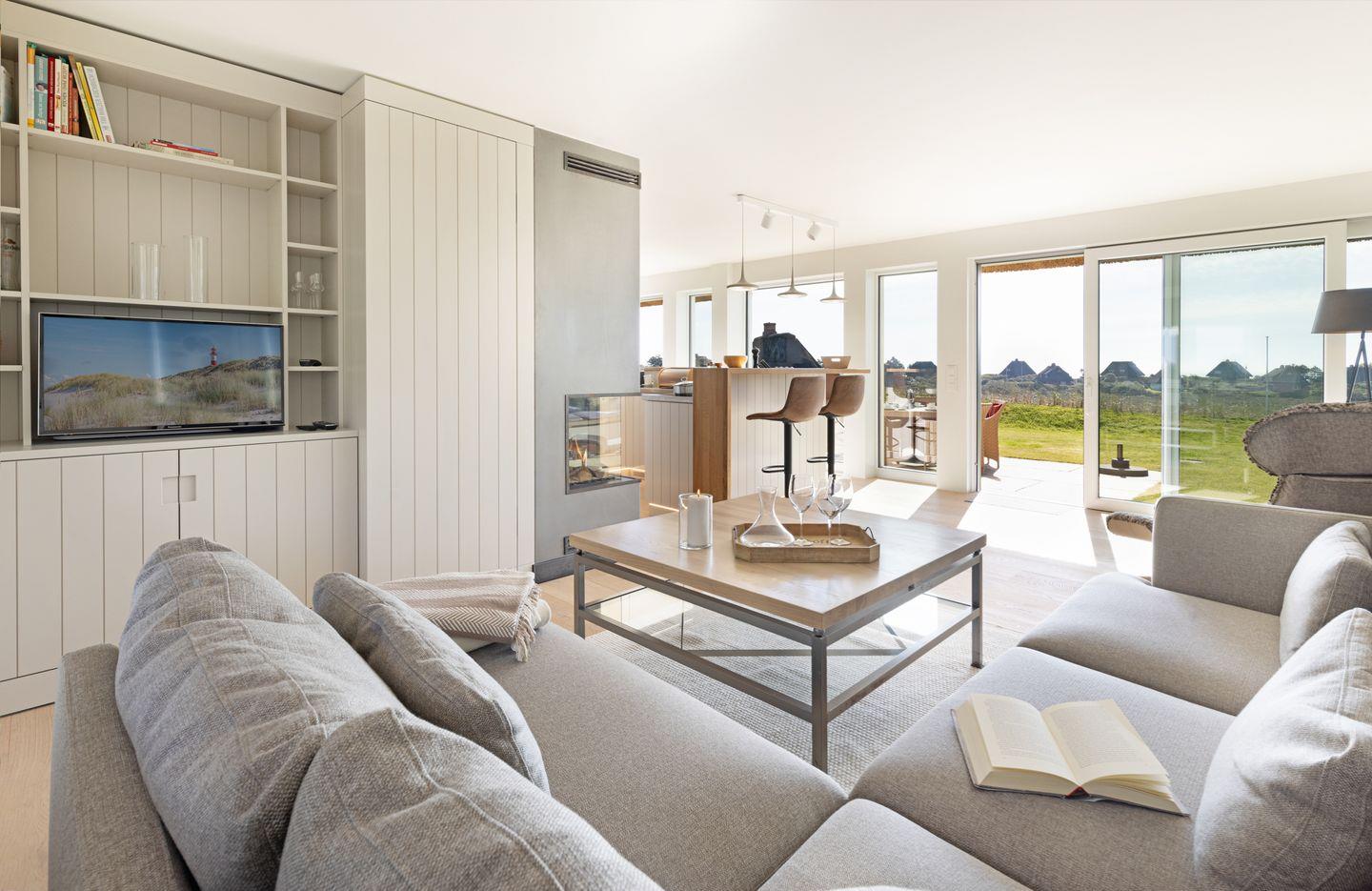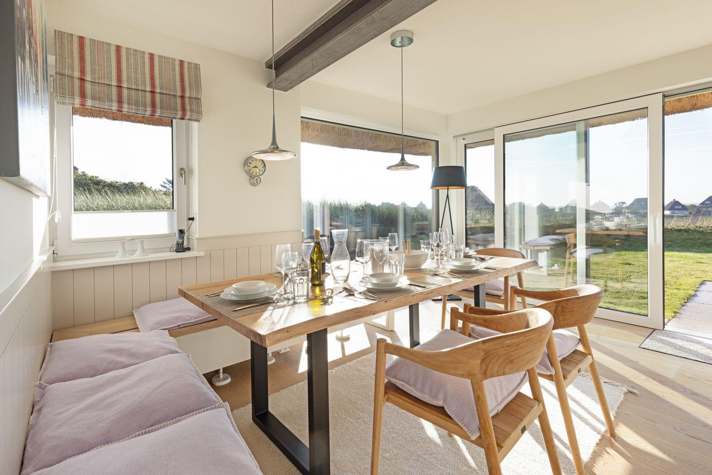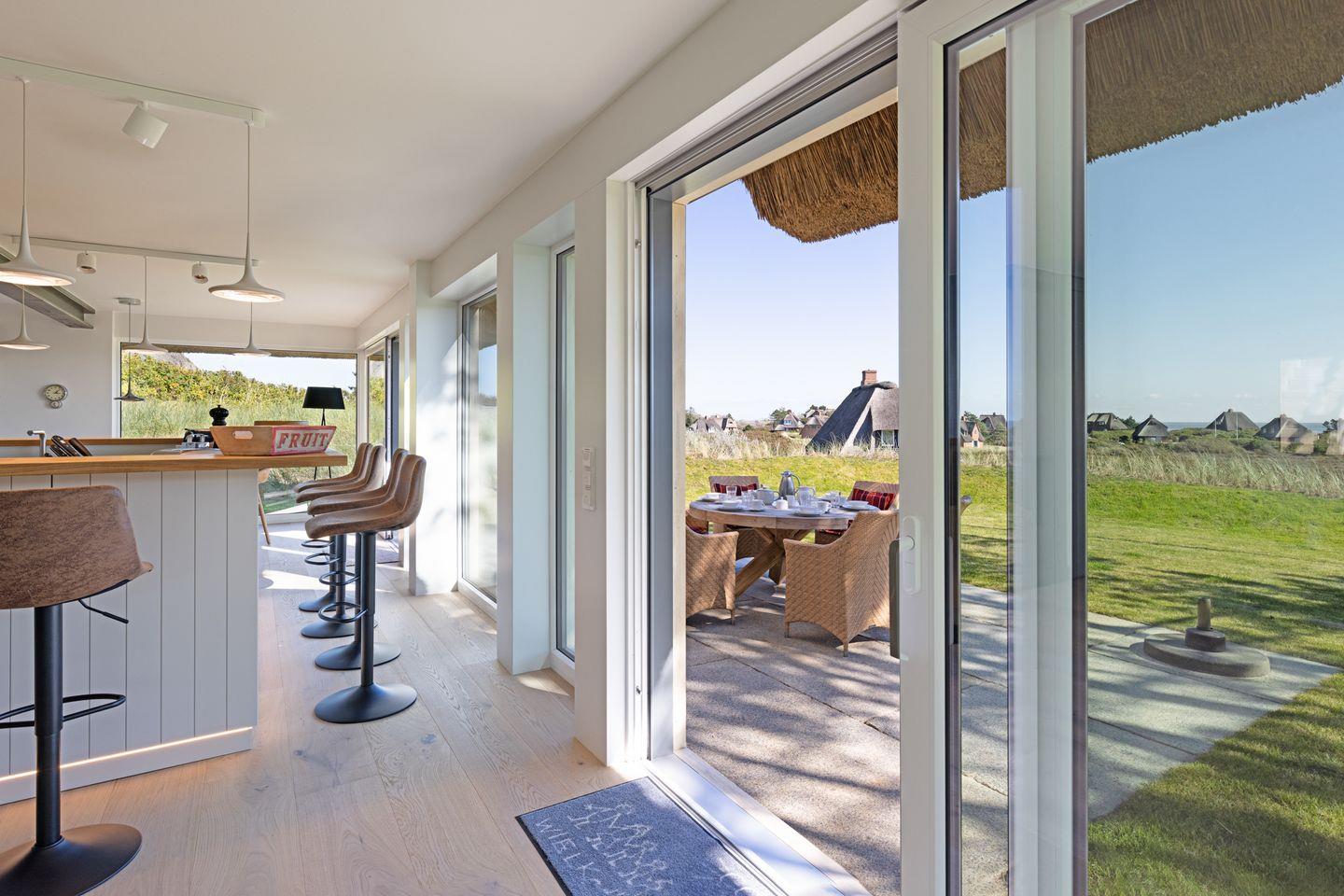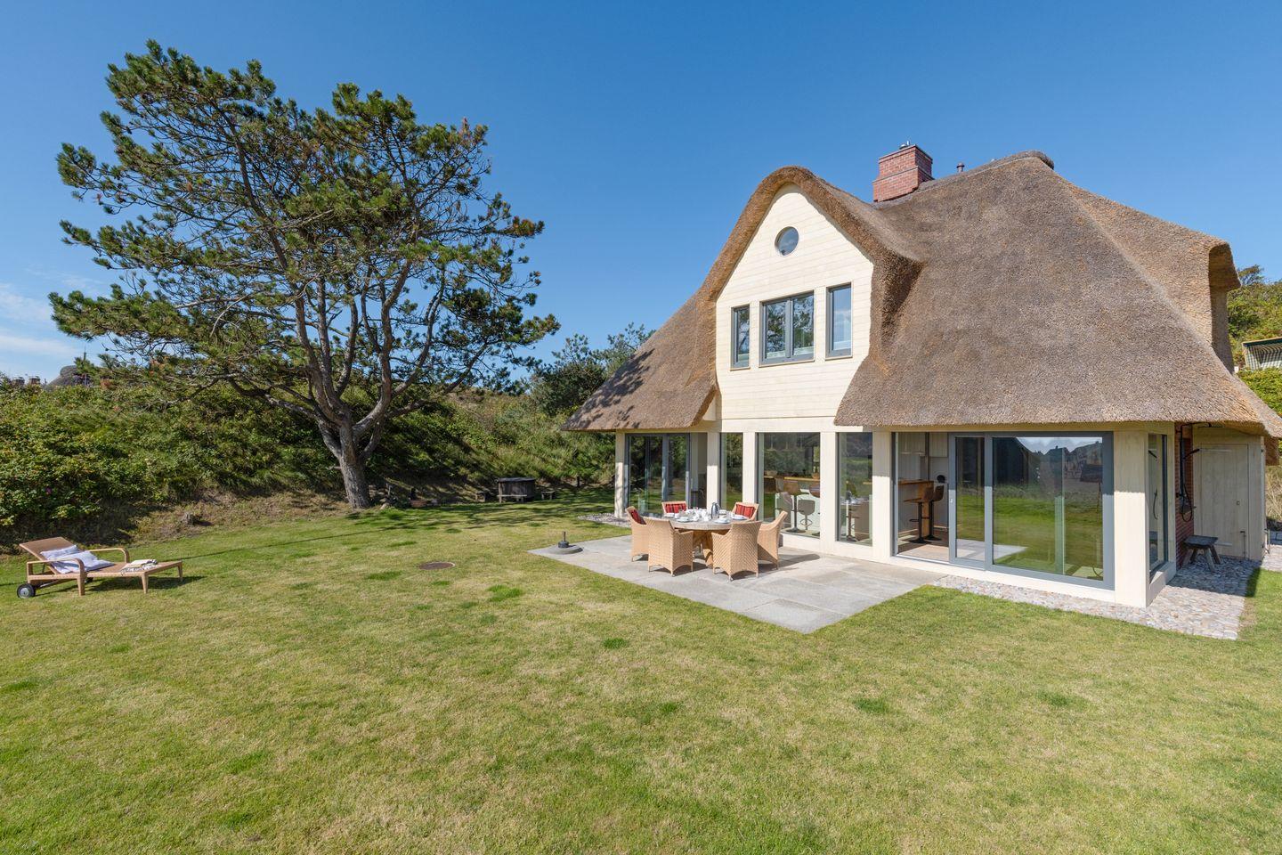 Modernes Ferienhaus unter Reet für bis zu vier Personen mit Sonnenterrasse und Weitblick über das Wattenmeer.