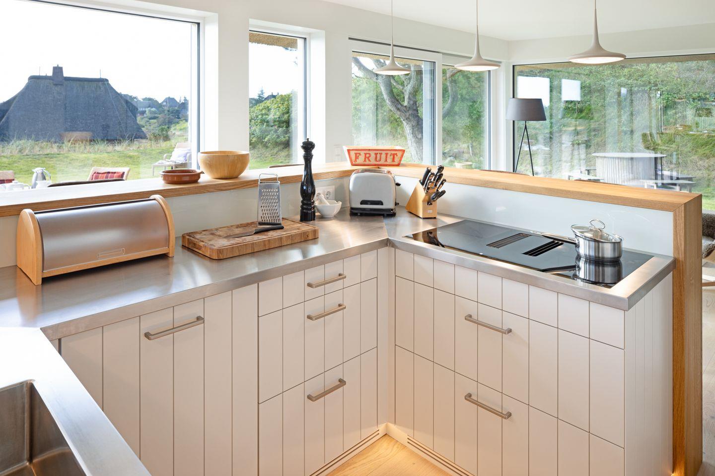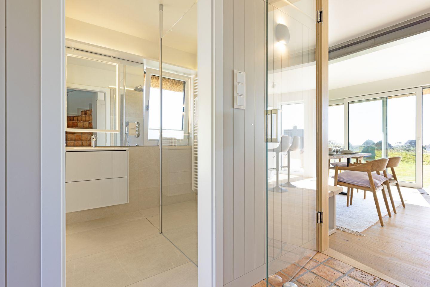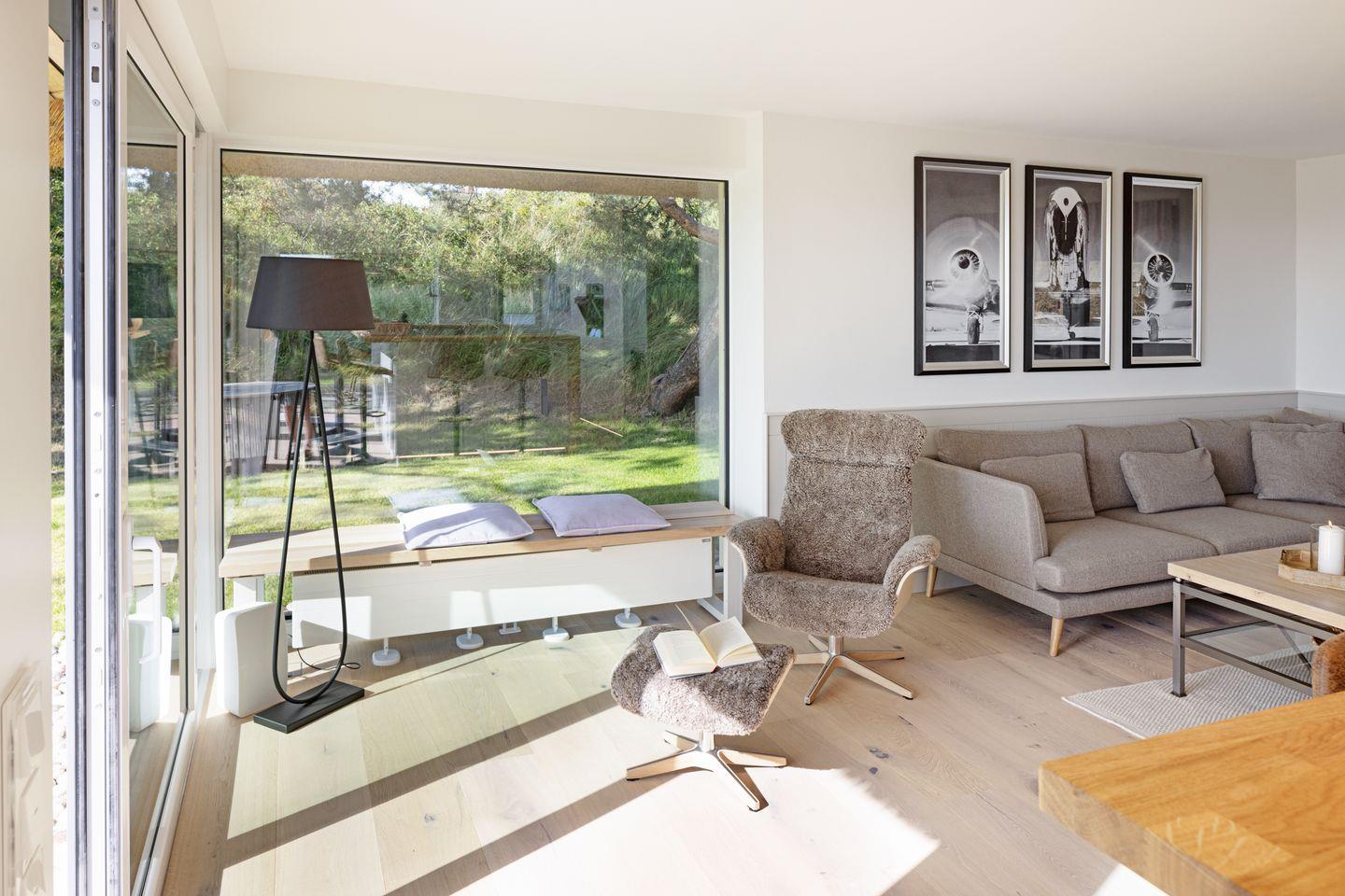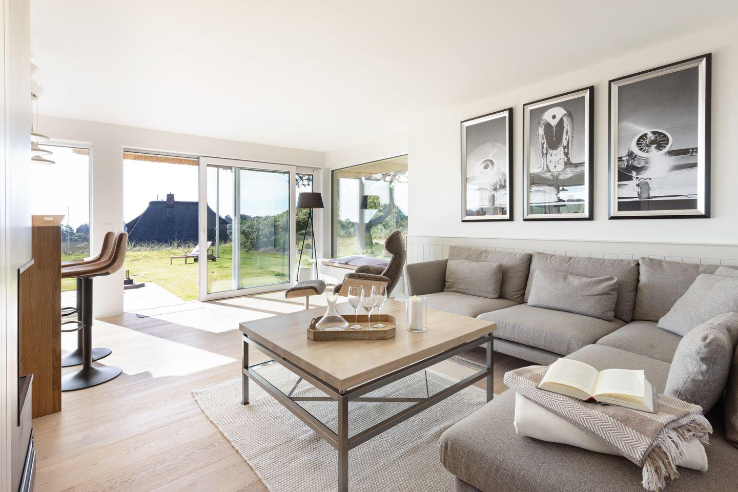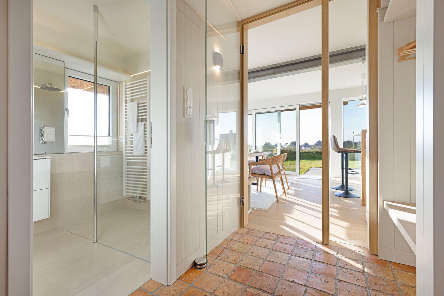 Modernes Ferienhaus unter Reet für bis zu vier Personen mit Sonnenterrasse und Weitblick über das Wattenmeer.