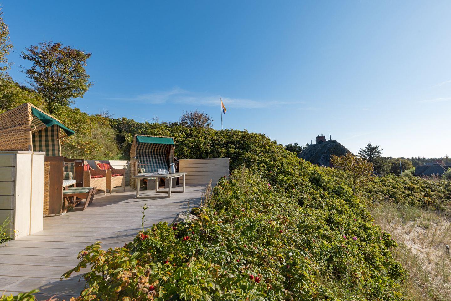 Die schöne Natur und die Nähe zum Strand laden zum verweilen ein. Die Sonnenterrasse auf noch einer höheren Position, gibt Ihnen einen Weitblick über das Wattenmeer.