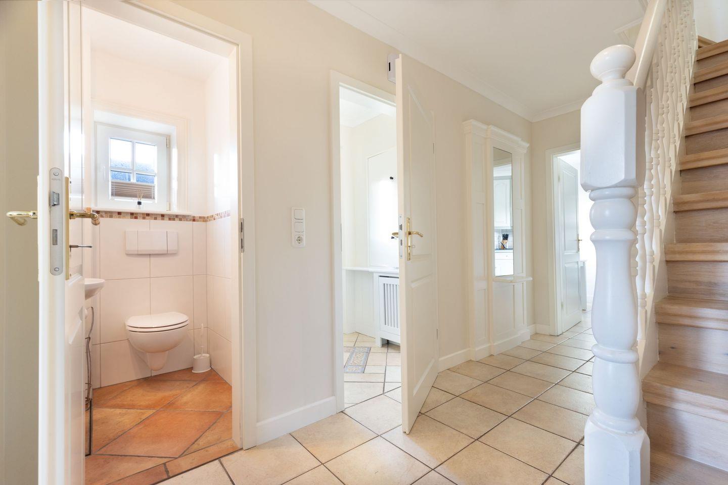 Im Parterre befindet sich die Küche, eine Gäste-Toilette, ein Esszimmer und ein Wohnzimmer mit Terrassenausgang. Zusätzlich ein kleines ein Zimmer-Appartement mit Auszieh-Couch für zwei Personen von außen zugänglich, mit separater Küchen-Pantry und WC mit Dusche. Im 1.OG befindet sich ein großes Schlafzimmer mit begehbarem Kleiderschrank, sowie ein weiteres Schlafzimmer mit Doppelbett und mit Baden-Suite. Zusätzlich haben sie noch ein zweites Duschbad auf gleicher Ebene. Unter dem Dach befindet sich ein weiteres Doppelbett-Schlafzimmer und ein Wannenbad mit WC. Die Außenanlage der Bachstelze ist sehr großzügig und lädt zum Verweilen ein.