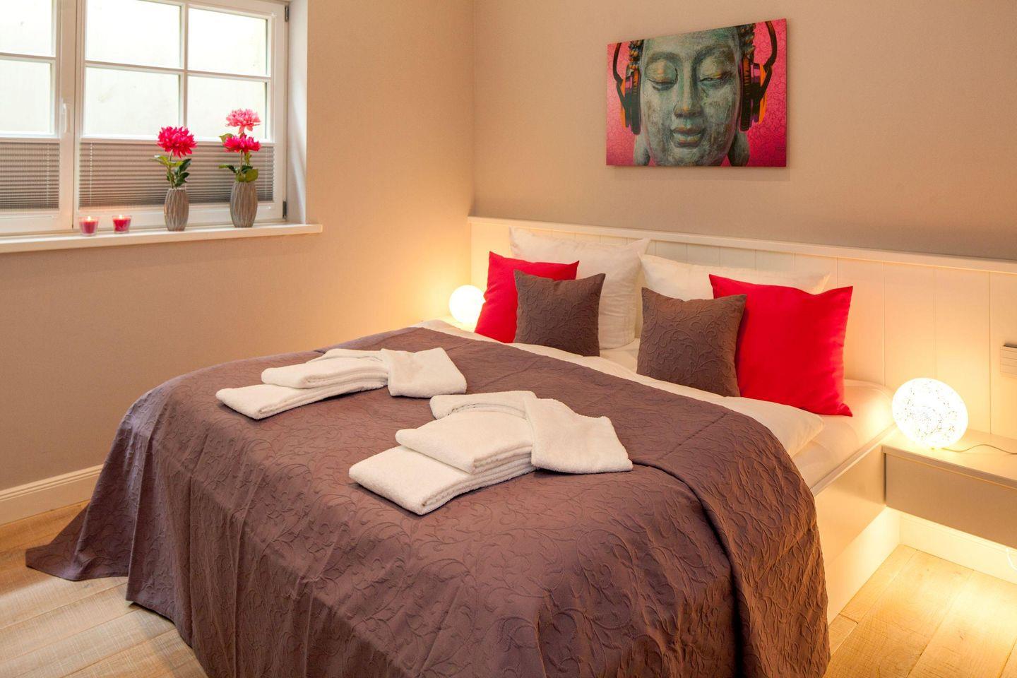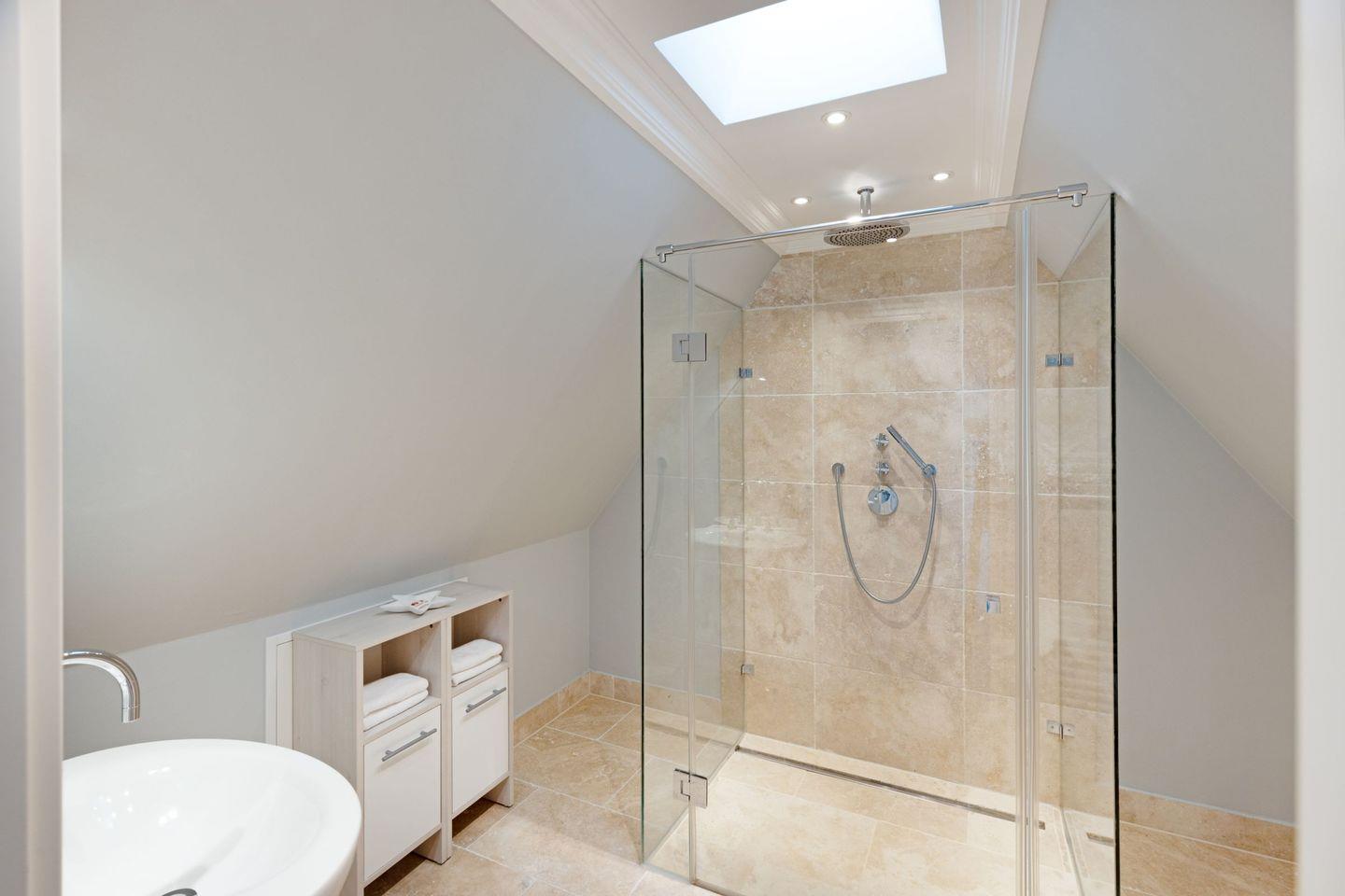 Die Syltresidenz ist mit vier gemütlichen Schlafzimmern ausgestattet, die Ihnen höchster Schlafkomfort bieten. Jedes Zimmer ist liebevoll eingerichtet und sorgt für eine entspannte Atmosphäre. Mit drei modernen Badezimmern und einem Gäste-WC müssen Sie sich nie um lange Wartezeiten kümmern – ideal für einen erholsamen Urlaub mit mehreren Personen. Das offene Wohnzimmer ist das Herzstück der Wohnung, ausgestattet mit einer komfortablen Sofaecke, einem modernen Kaminofen und einem Entertainment-Bereich mit insgesamt sechs Fernsehern und einer HiFi-Anlage, die für gemütliche Abende sorgen.