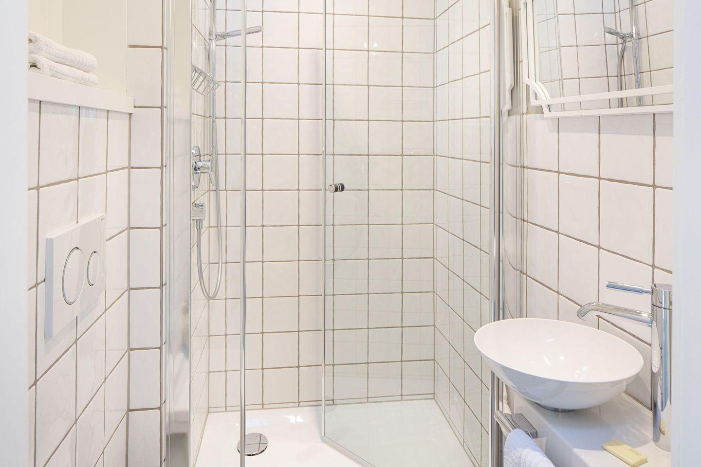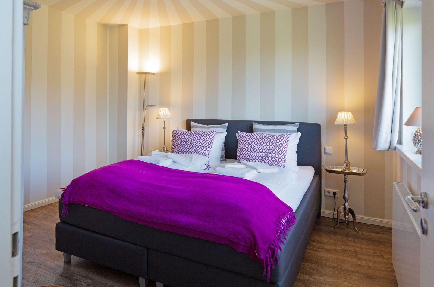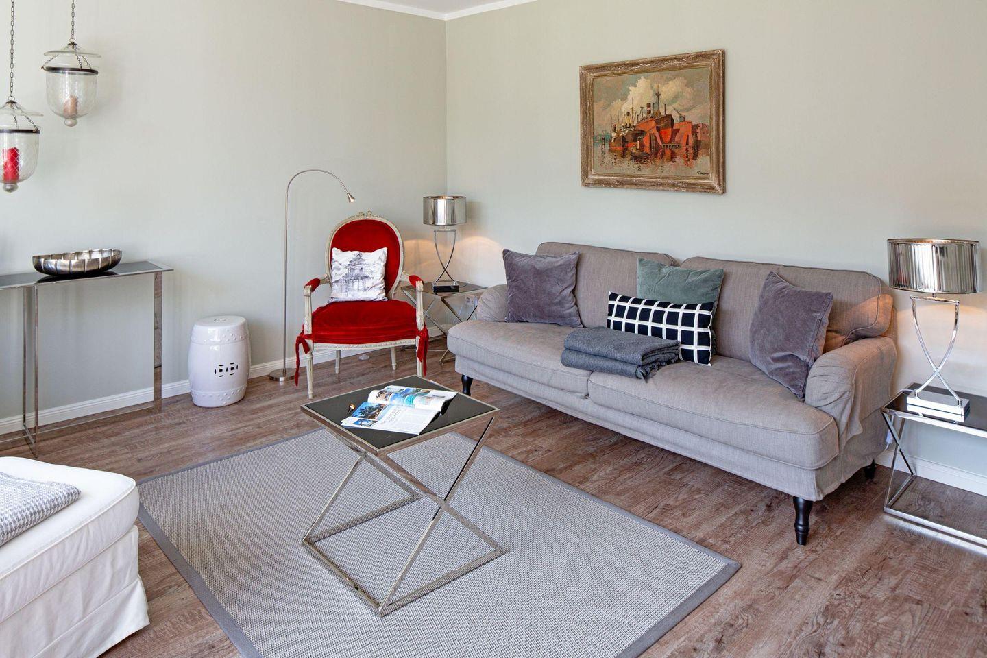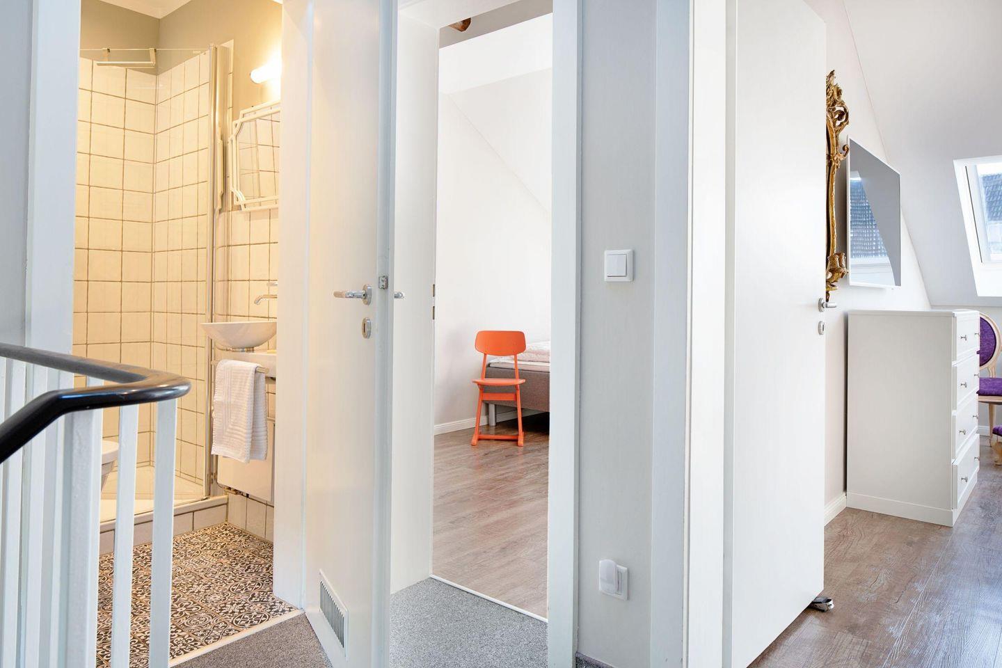 Vom Essbereich im Wohnraum erreichen Sie den Garten mit Terrasse und Gartenmöbeln. Die offene Küche bietet alles was man zum Kochen braucht. Im Hochparterre befindet sich ein Schlafzimmer mit Doppelbett und ein Bad mit Wanne. Im Dachgeschoss befindet sich ein Schlafzimmer mit Doppelbett und ein Schlafzimmer mit Einzelbetten und ein Duschbad. Im Erdgeschoss befindet sich ein kleiner Wellnessbereich mit gläserner Sauna, Duschbad und Relax-Liegen.