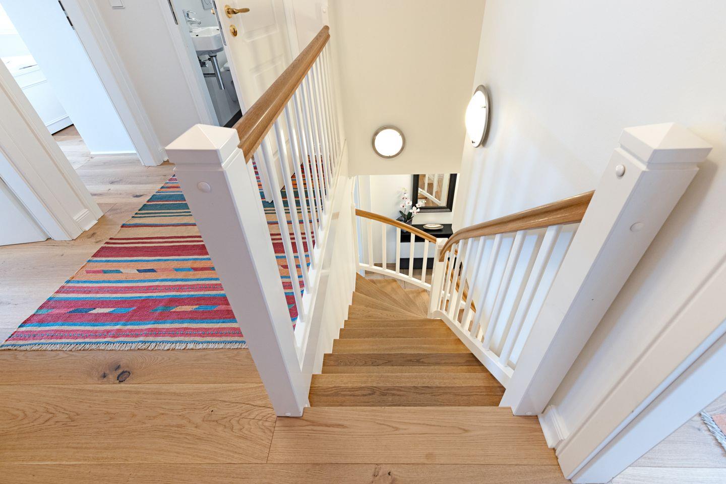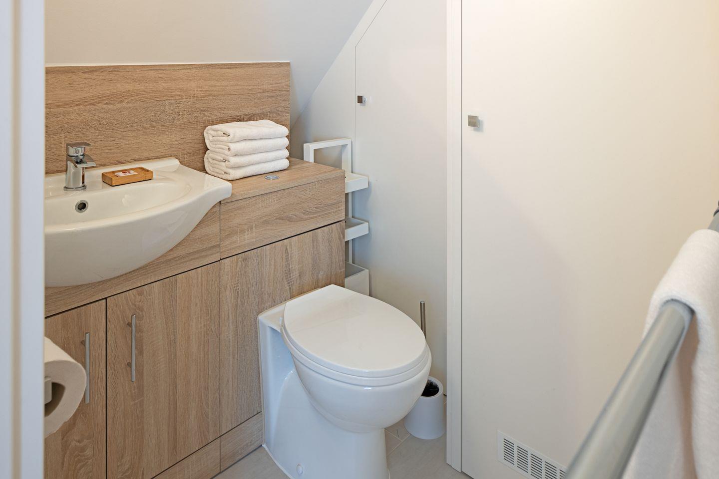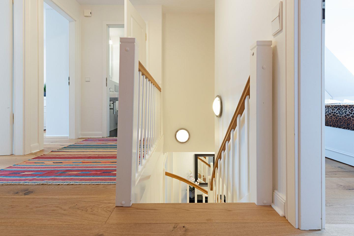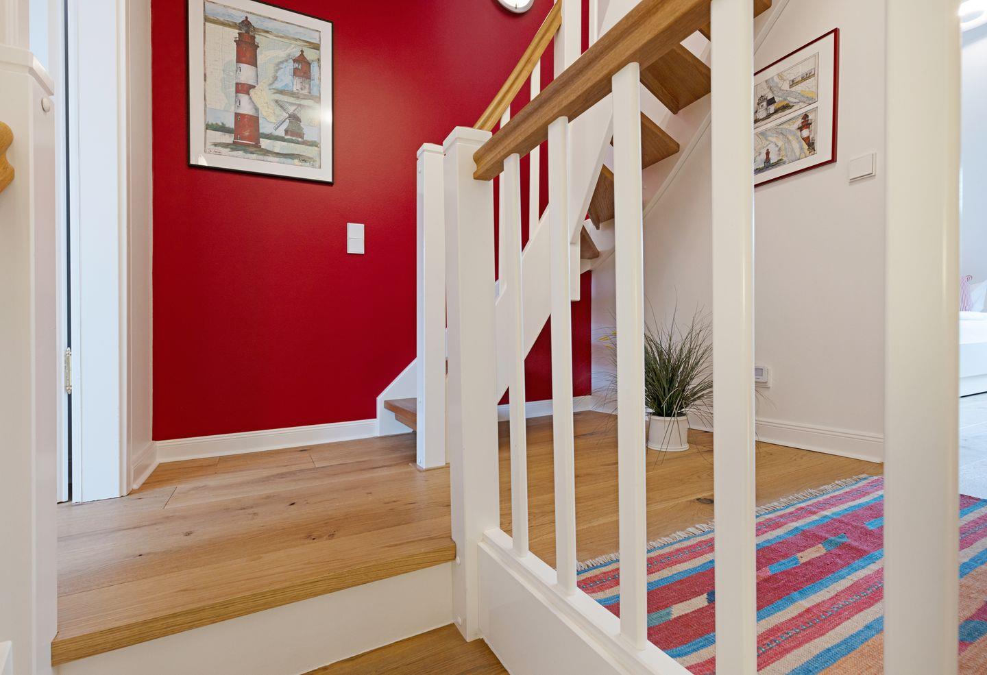 Im Dachgeschoss (stark ansteigende Treppe) befindet sich ein Schlafzimmer mit Doppelbett und ein Gäste-WC. Ein zusätzliches Bad gibt es im EG.