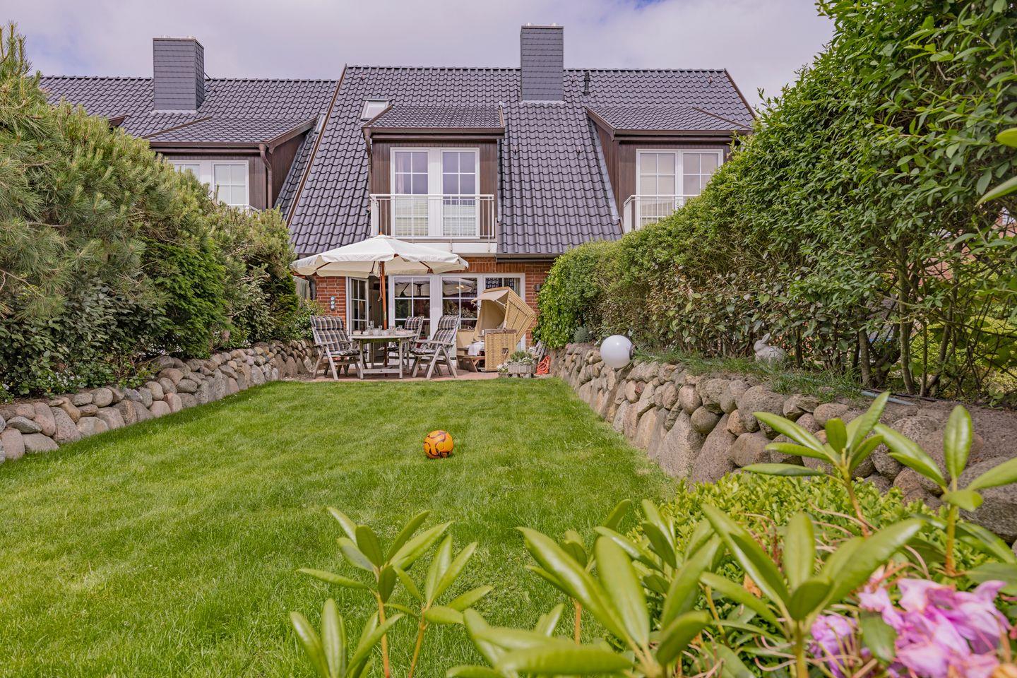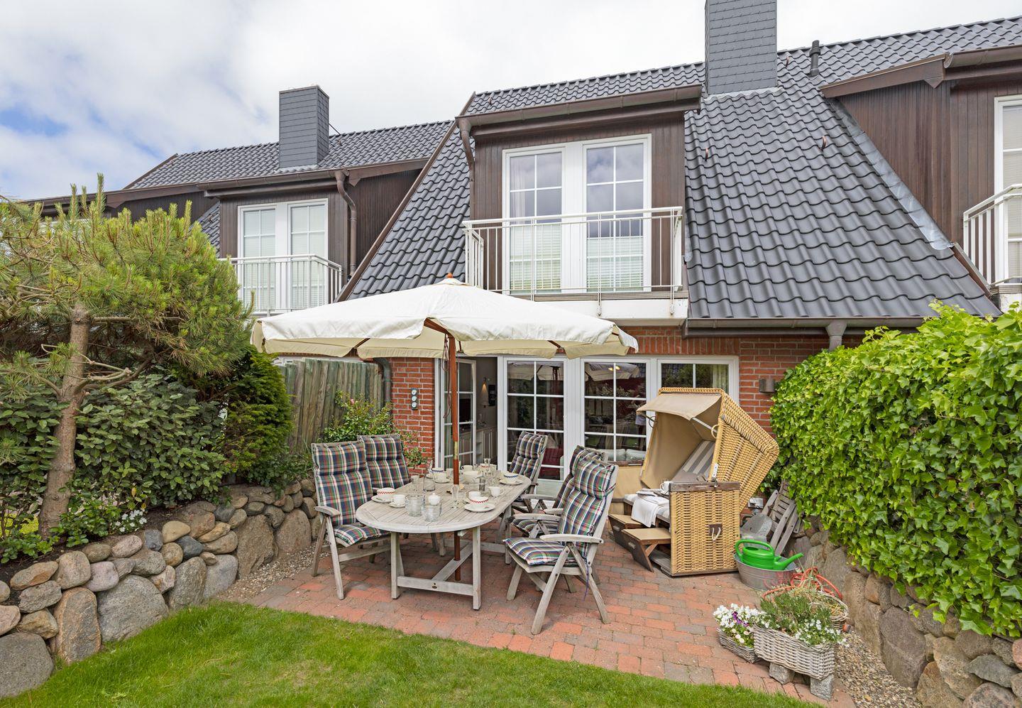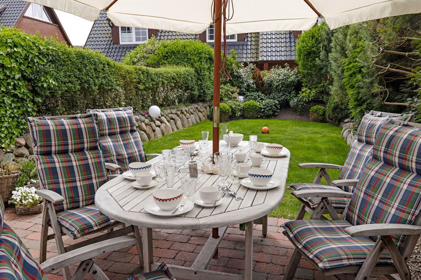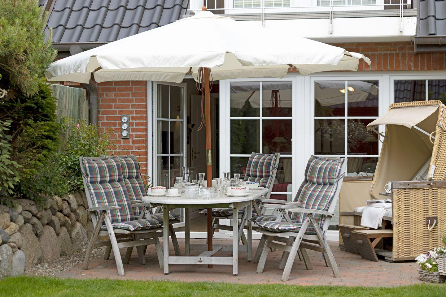 Im Garten haben Sie Gartenmöbel und zusätzlich einen eigenen Strandkorb. (Gartenmöbel und Strandkörbe stehen Ihnen saisonal begrenzt zur Verfügung.) Sie können zusätzliche Serviceleistungen buchen. Weitere Informationen dazu erhalten Sie bei uns.
