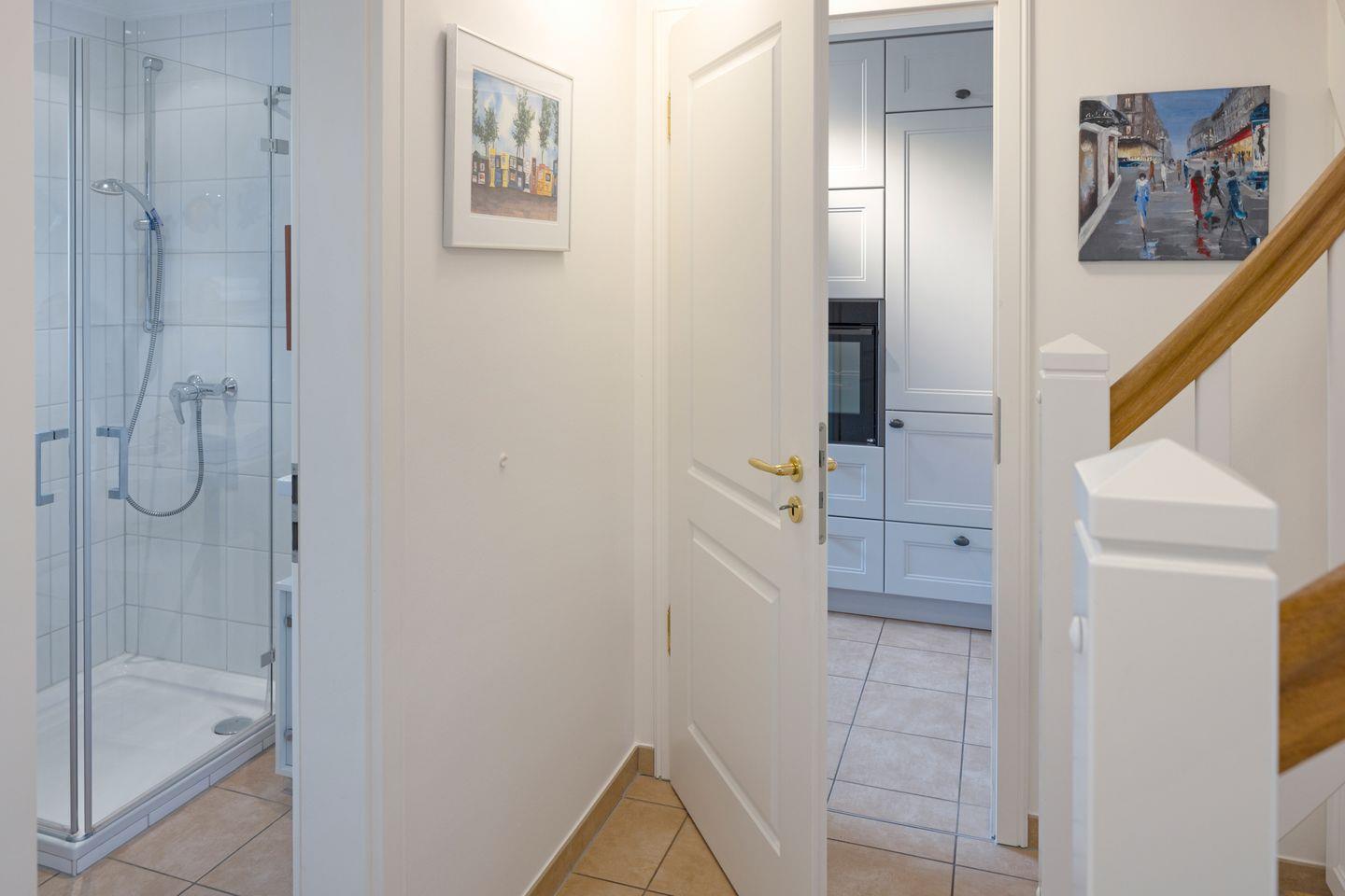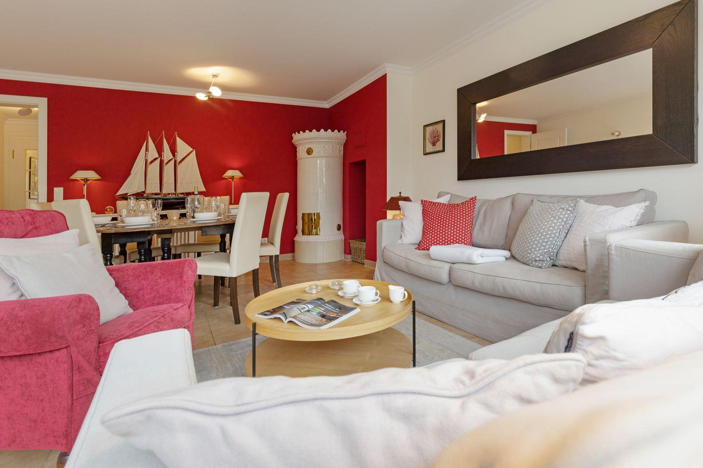 Ihr Feriendomizil ist modern, hell und freundlich eingerichtet. Die moderne und geschmackvoll aufeinander abgestimmte Einrichtung lädt Sie und Ihre Familie zum Erholen, Genießen und Verweilen ein. Das große Wohnzimmer mit Essbereich hat einen Terrassenzugang über die gesamte Breite Ihres Ferienhauses nach Süden.