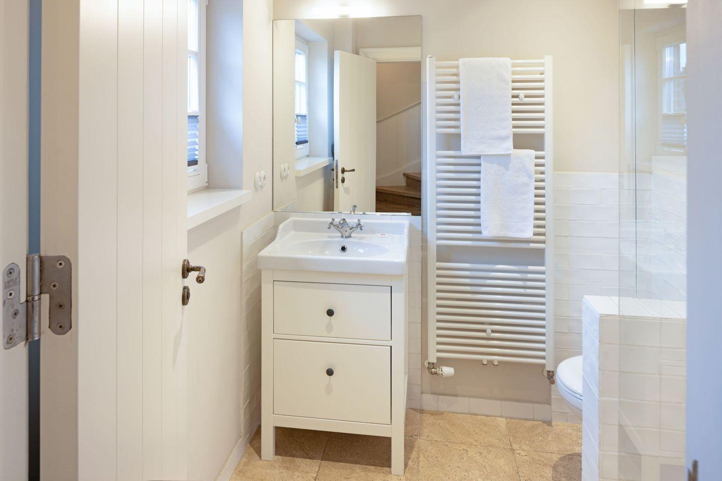 Im Erdgeschoss befindet sich der großzügige Wohn-Essbereich mit offener Küche über den Sie auf die große Sonnenterrasse und in den Garten gelangen. Im EG befindet sich auch ein Duschbad. Im 1.OG ist ein Schlafzimmer mit einem Doppelbett, ein Schlafzimmer mit zwei Einzelbetten und ein großes Wannen/Duschbad mit Sauna. Ein drittes Schlafzimmer mit Doppelbett befindet sich im Dachgeschoss.