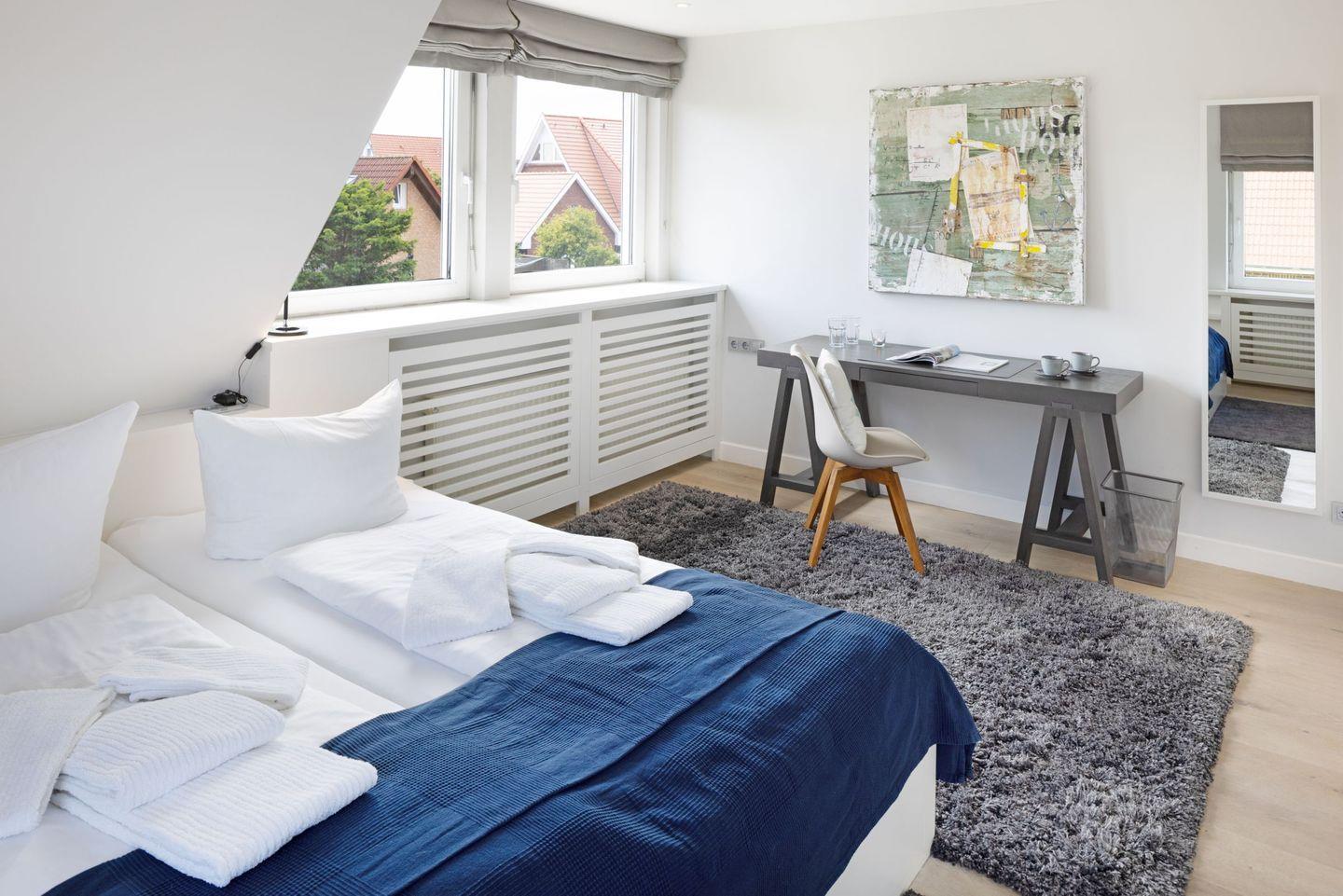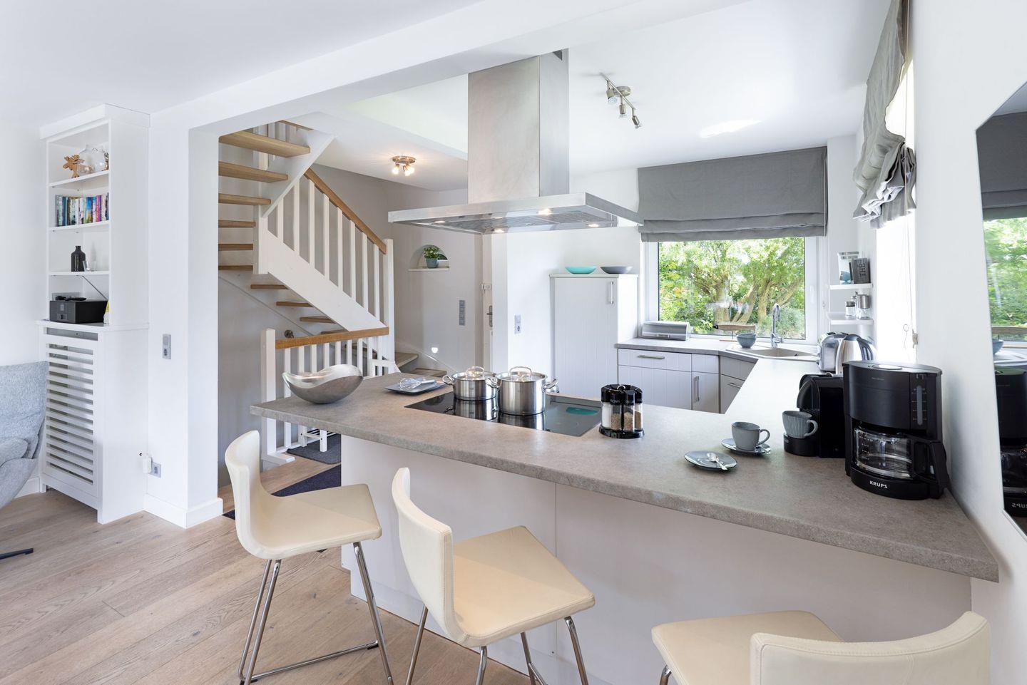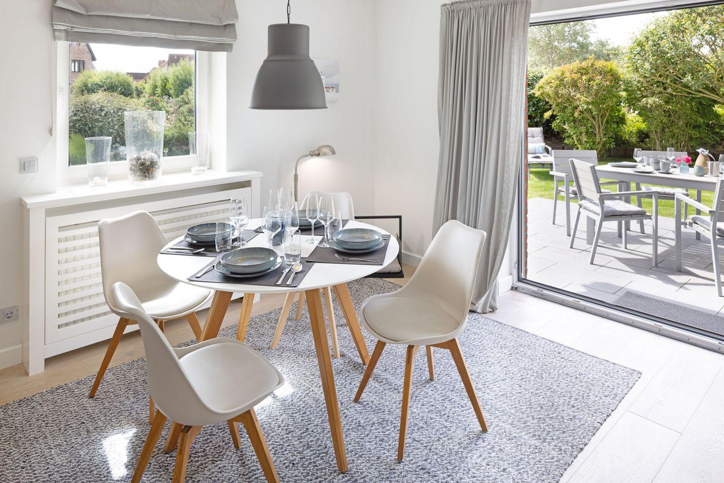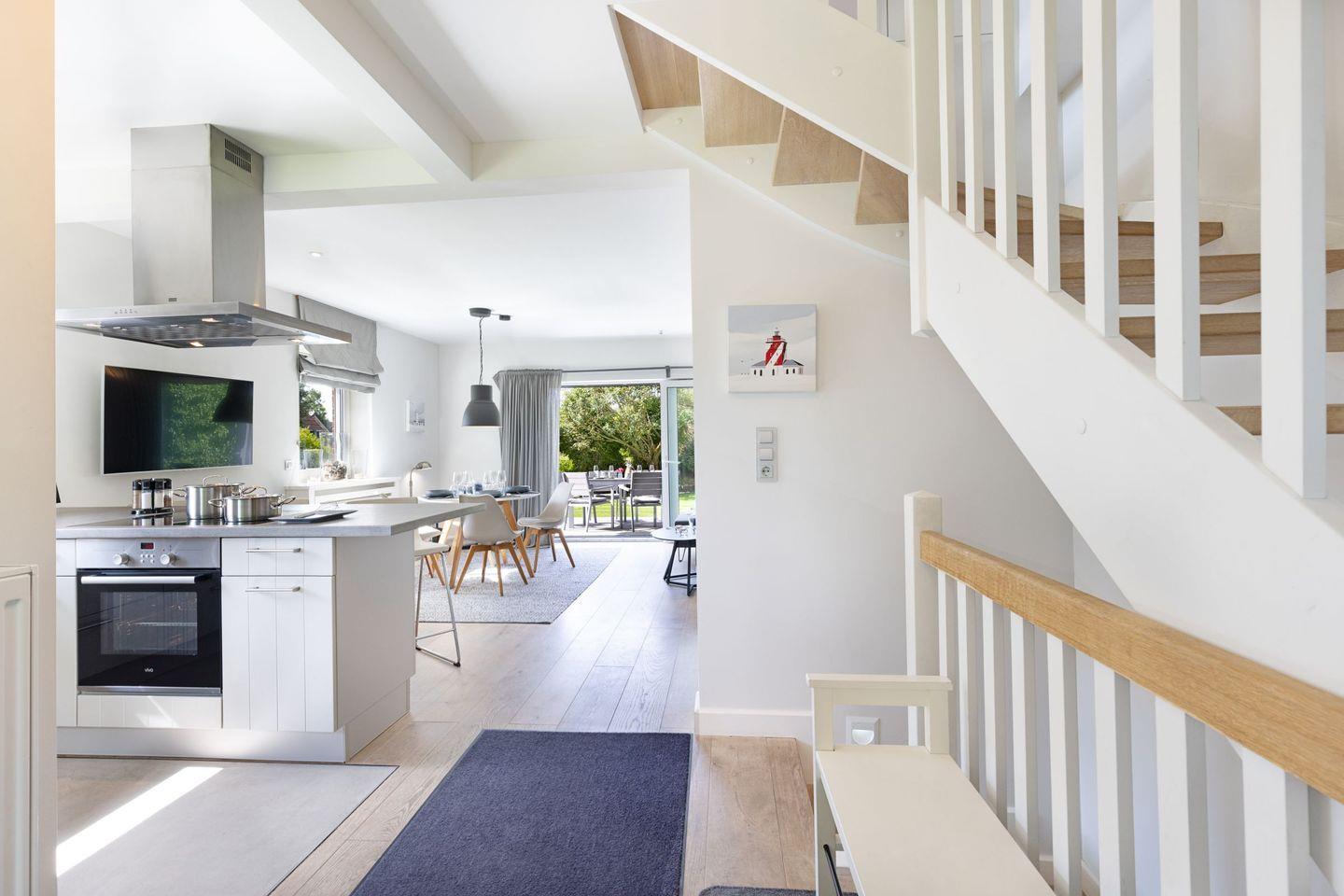Willkommen in unserem hellen, modern/gemütlich eingerichteten Feriendomizil. Das Ferienhaus Landsend bietet mit zwei gemütlichen Schlafzimmern ( eins mit Doppelbett, eins mit einem Einzelbett, welches ausziehbar auch für 2 Personen geeignet ist) im 1. OG, der offenen Küche und einem großzügigen Saunabereich mit Dusche Platz für bis zu vier Personen. Ebenfalls im 1. Stock befindet sich das Duschbad. Nicht nur das Dachgeschoss bietet einen wunderschönen Blick in die Wattenmeer- Landschaft. Der Garten mit Südterrasse, Sylter Strandkorb und Gartenmöbeln ist über das Wohnzimmer direkt erreichbar und lädt zum Verweilen ein.