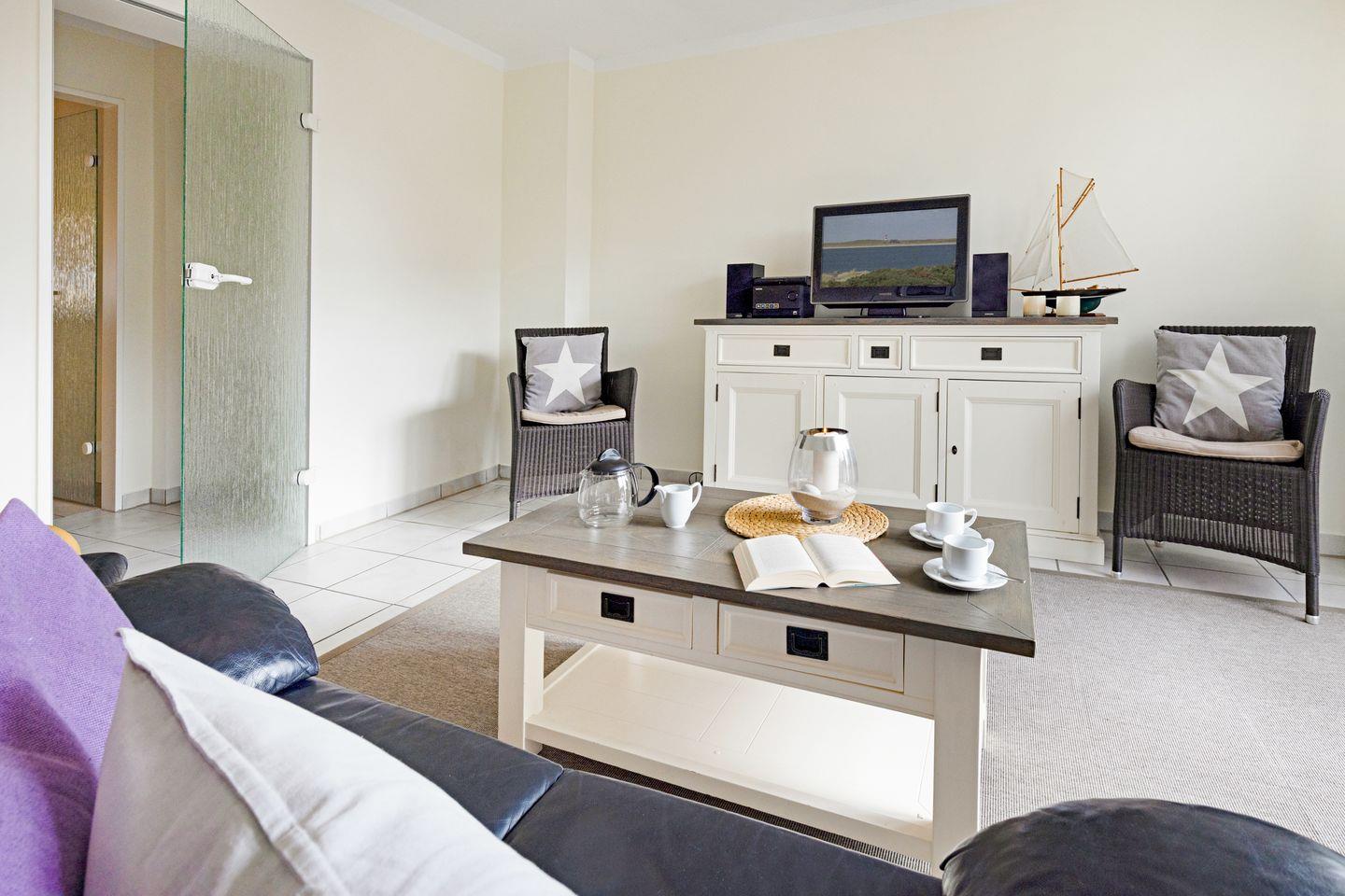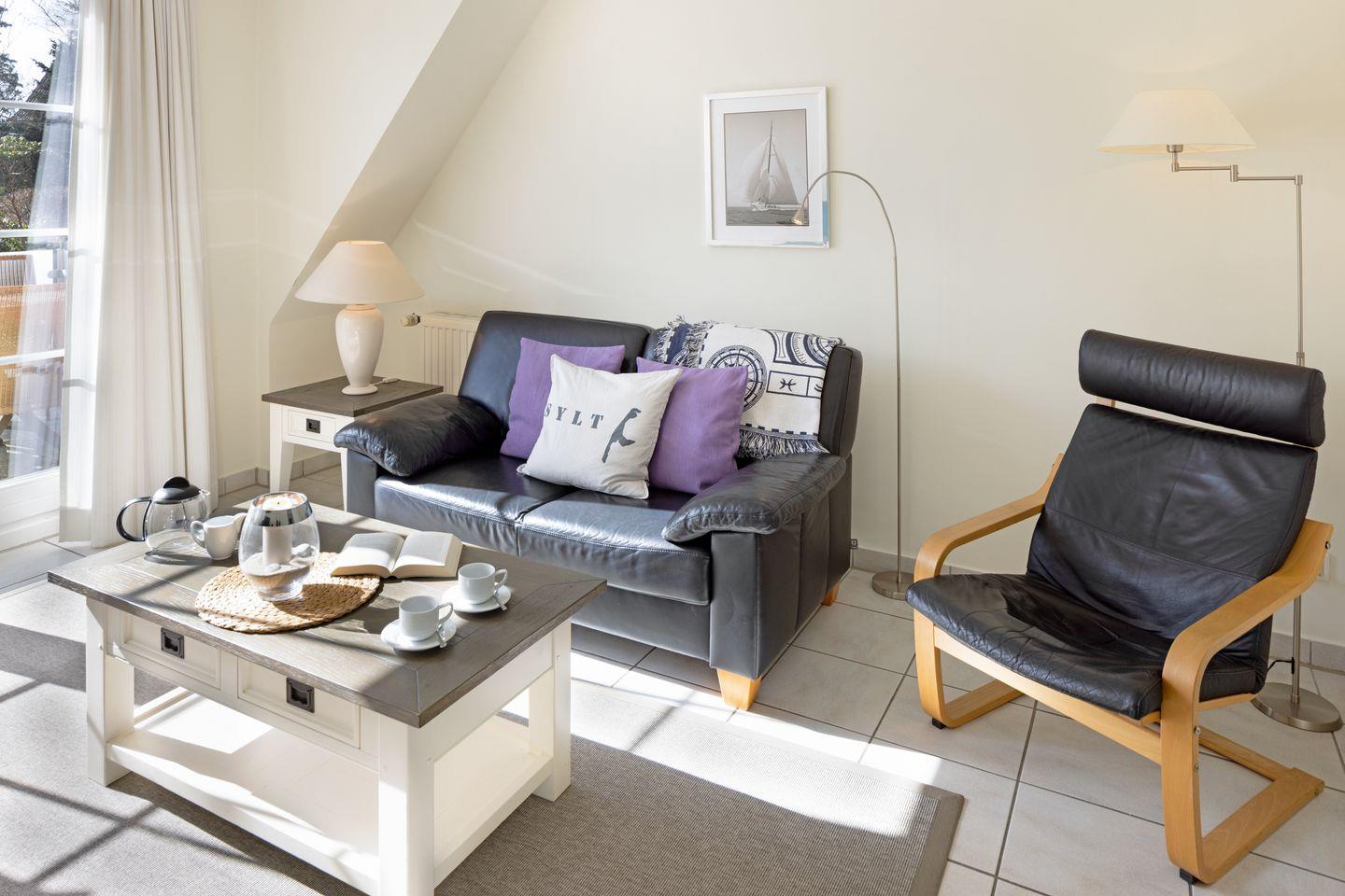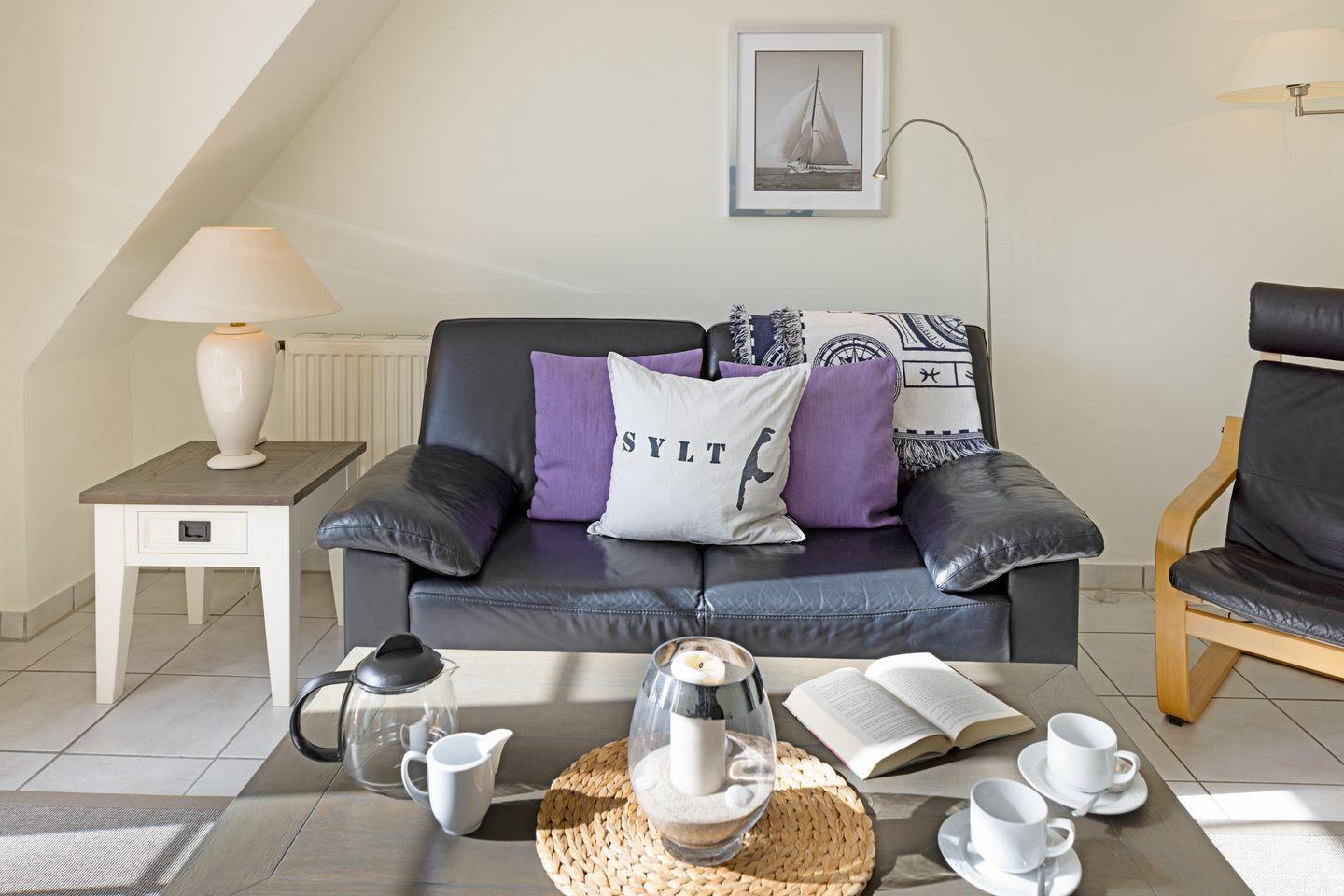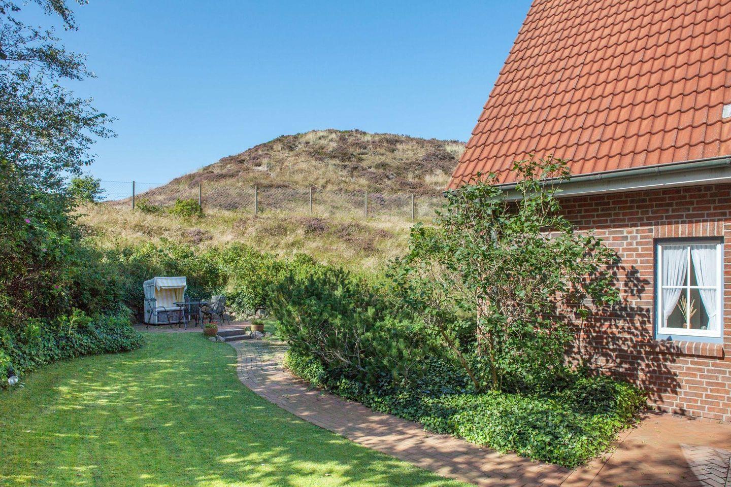Familienfreundliches Apartment im Dachgeschoß für bis zu vier Personen mit großem Balkon mit Strandkorb sowie Garten direkt an der Lister Dünenlandschaft.