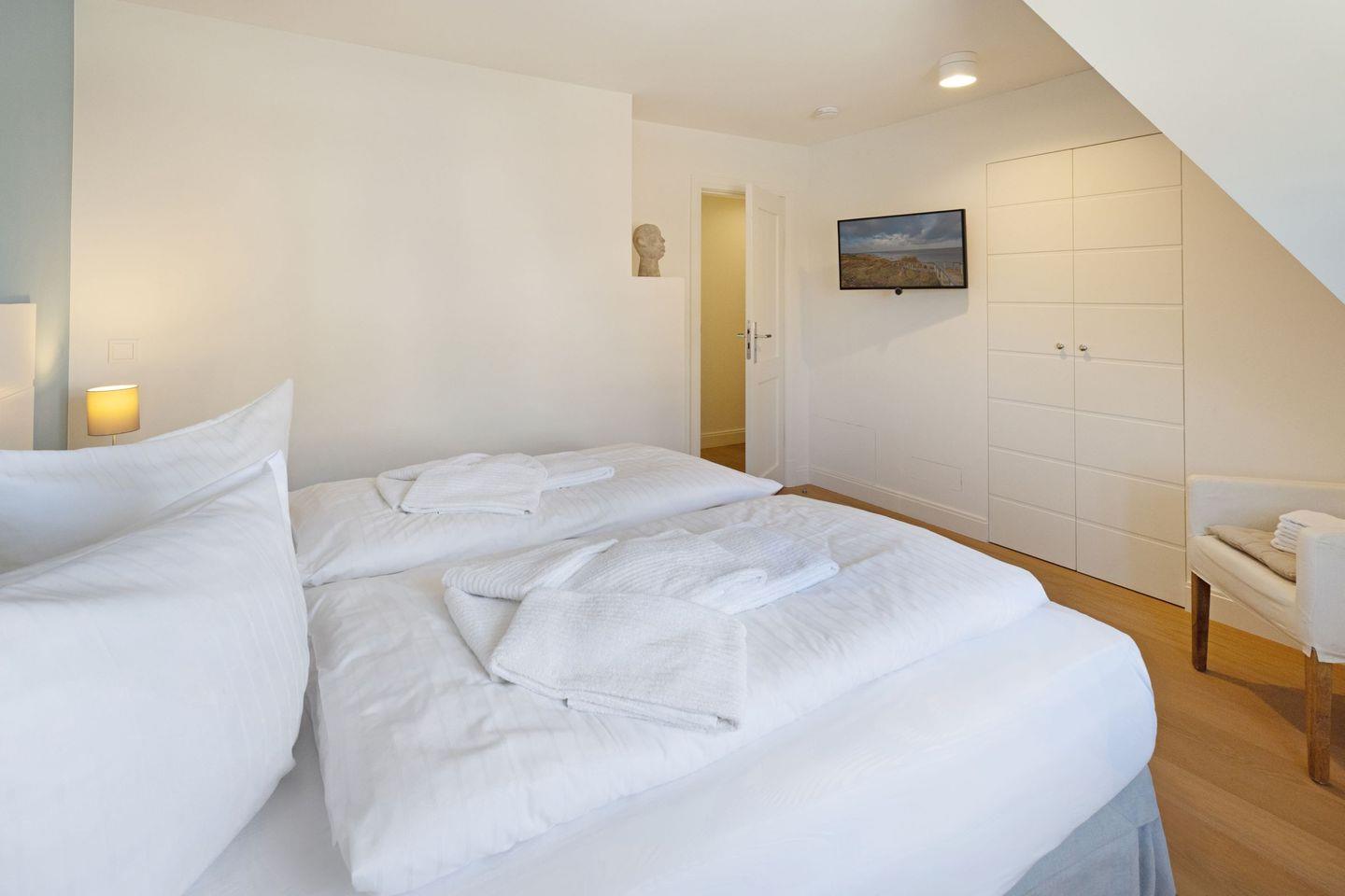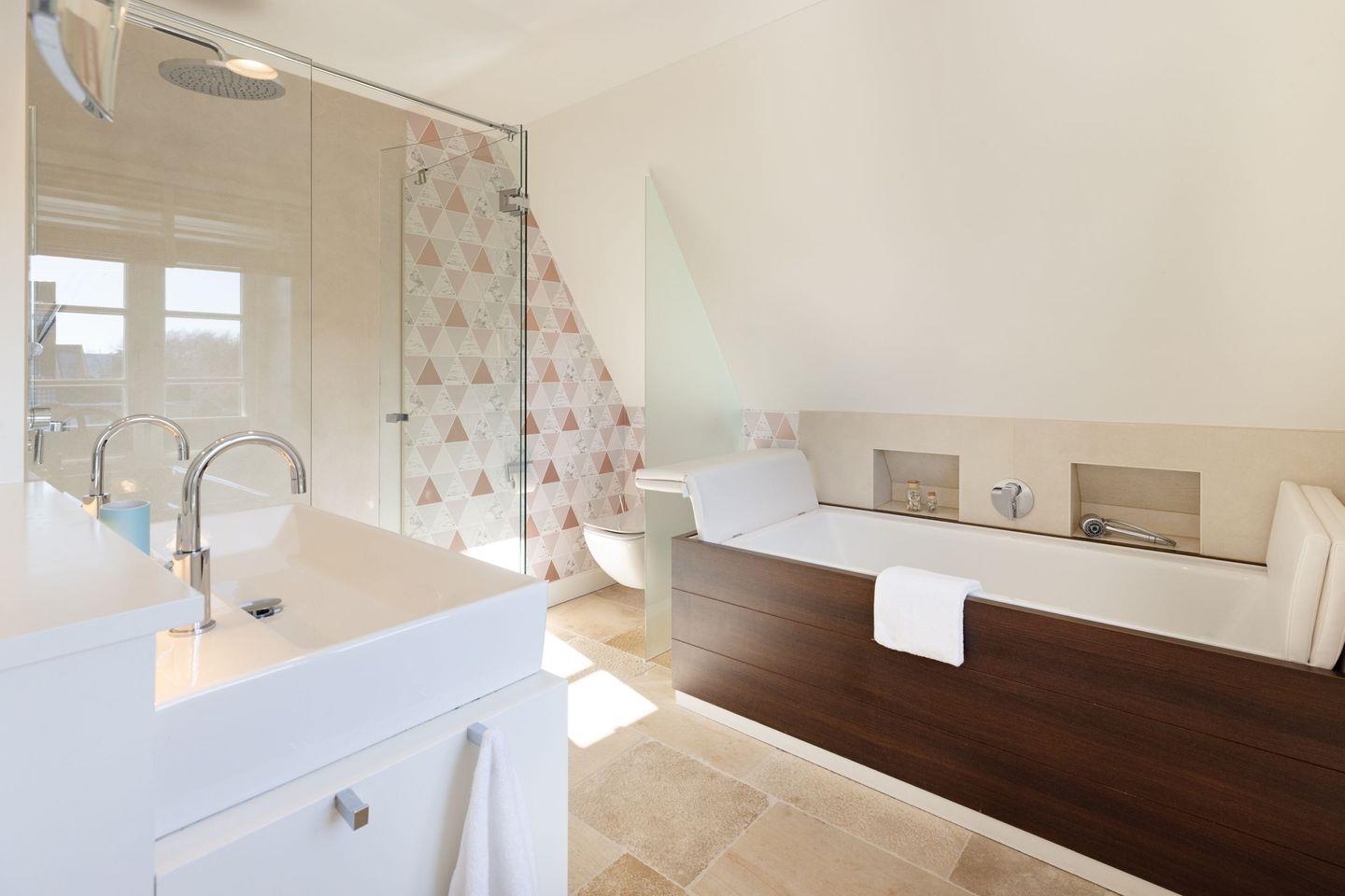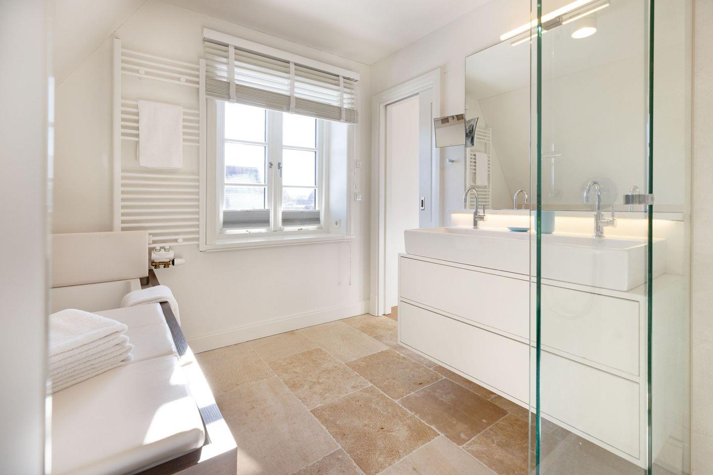 Im Obergeschoss erwarten Sie zwei komfortable Schlafzimmer mit Doppelbetten, die Ruhe und Erholung versprechen. Ergänzt wird diese Etage durch zwei stilvolle Badezimmer: ein modernes Duschbad sowie ein weiteres Badezimmer mit Dusche und freistehender Badewanne, das zum Entspannen einlädt.