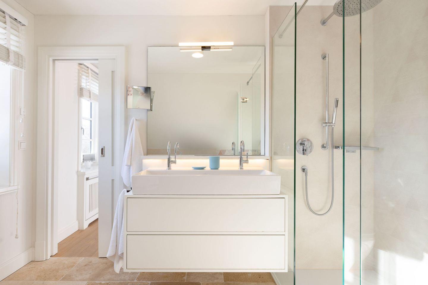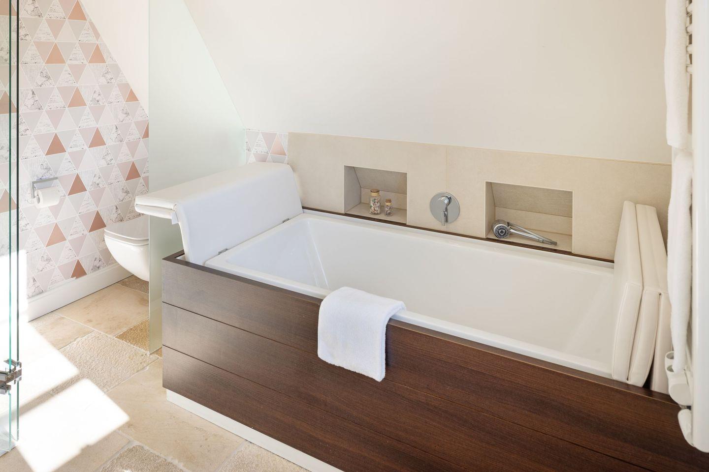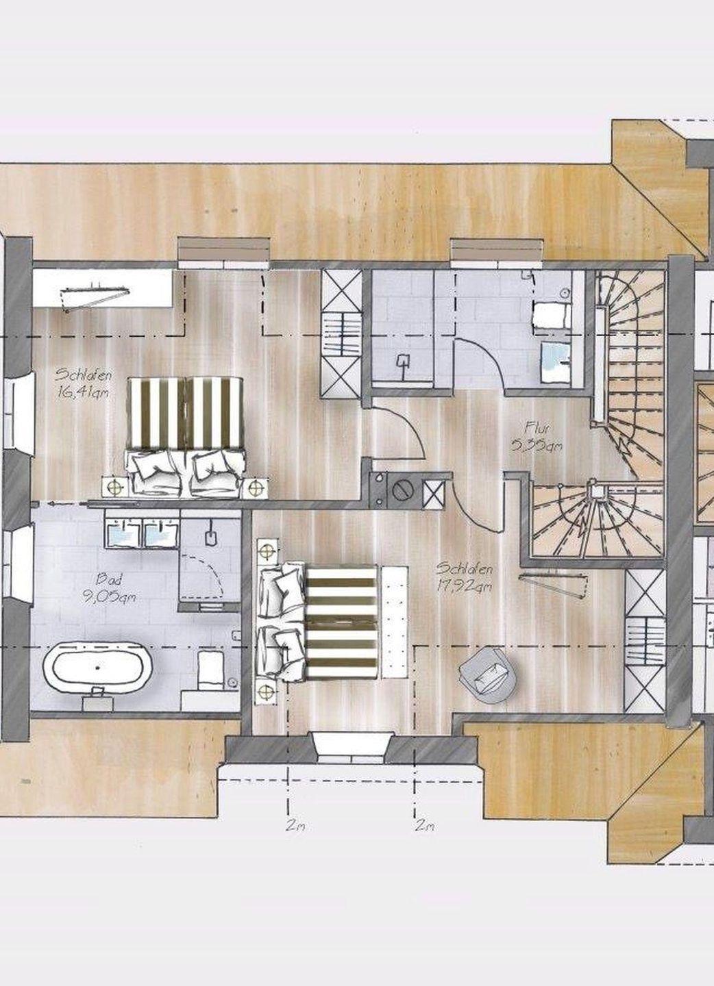Im Obergeschoss erwarten Sie zwei komfortable Schlafzimmer mit Doppelbetten, die Ruhe und Erholung versprechen. Ergänzt wird diese Etage durch zwei stilvolle Badezimmer: ein modernes Duschbad sowie ein weiteres Badezimmer mit Dusche und freistehender Badewanne, das zum Entspannen einlädt.